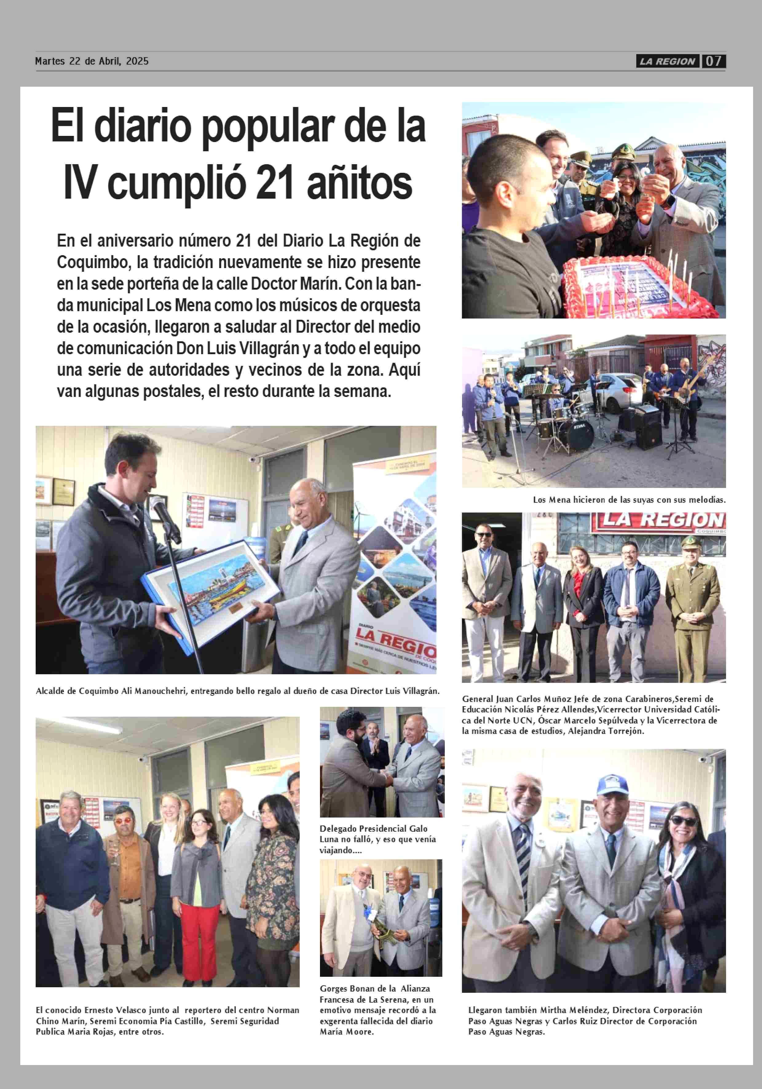 El diario popular de la IV cumplió 21 añitos 22-04-2025 Diario la Región |