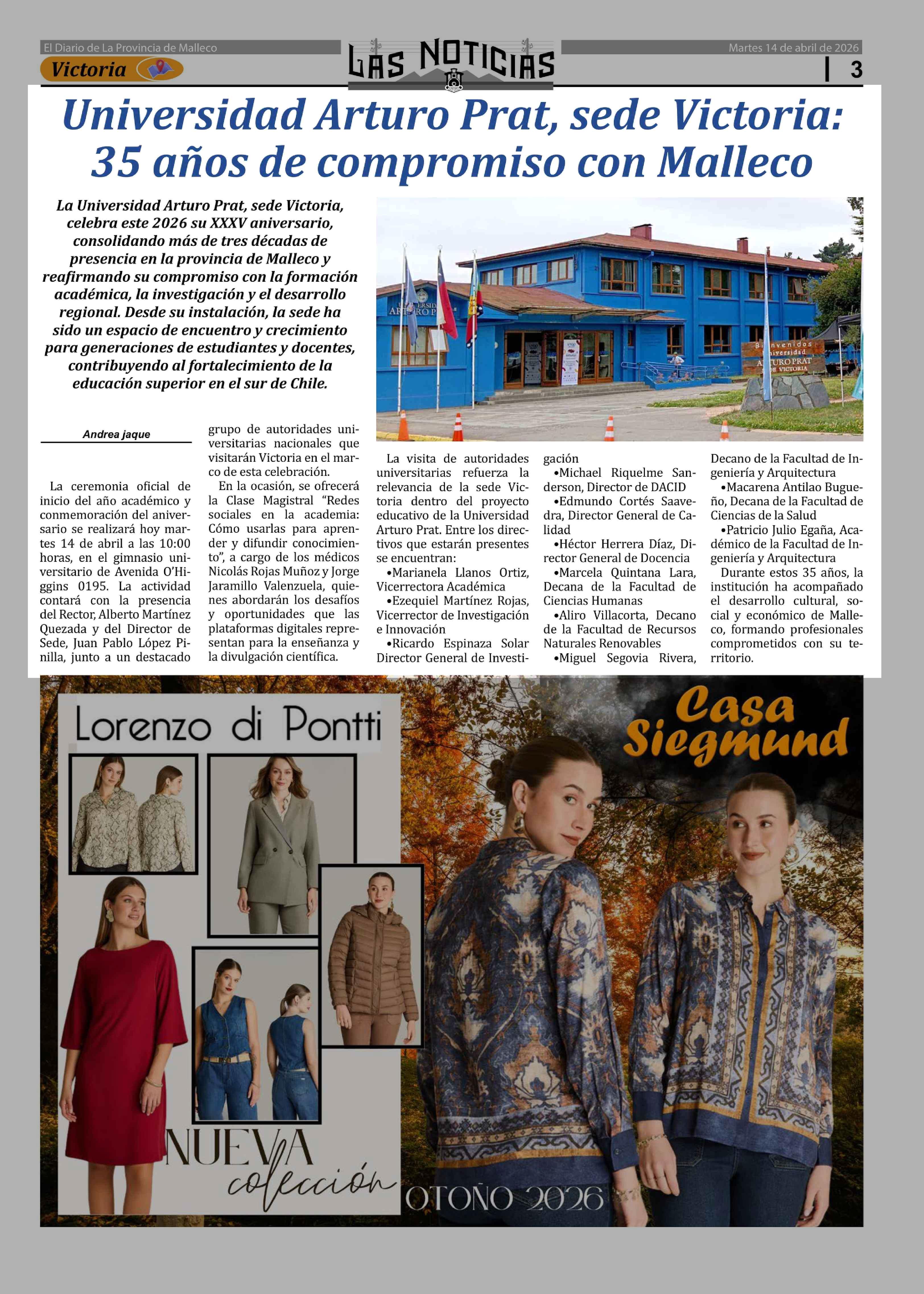 Título: Universidad Arturo Prat, sede Victoria: 35 años de compromiso con Malleco