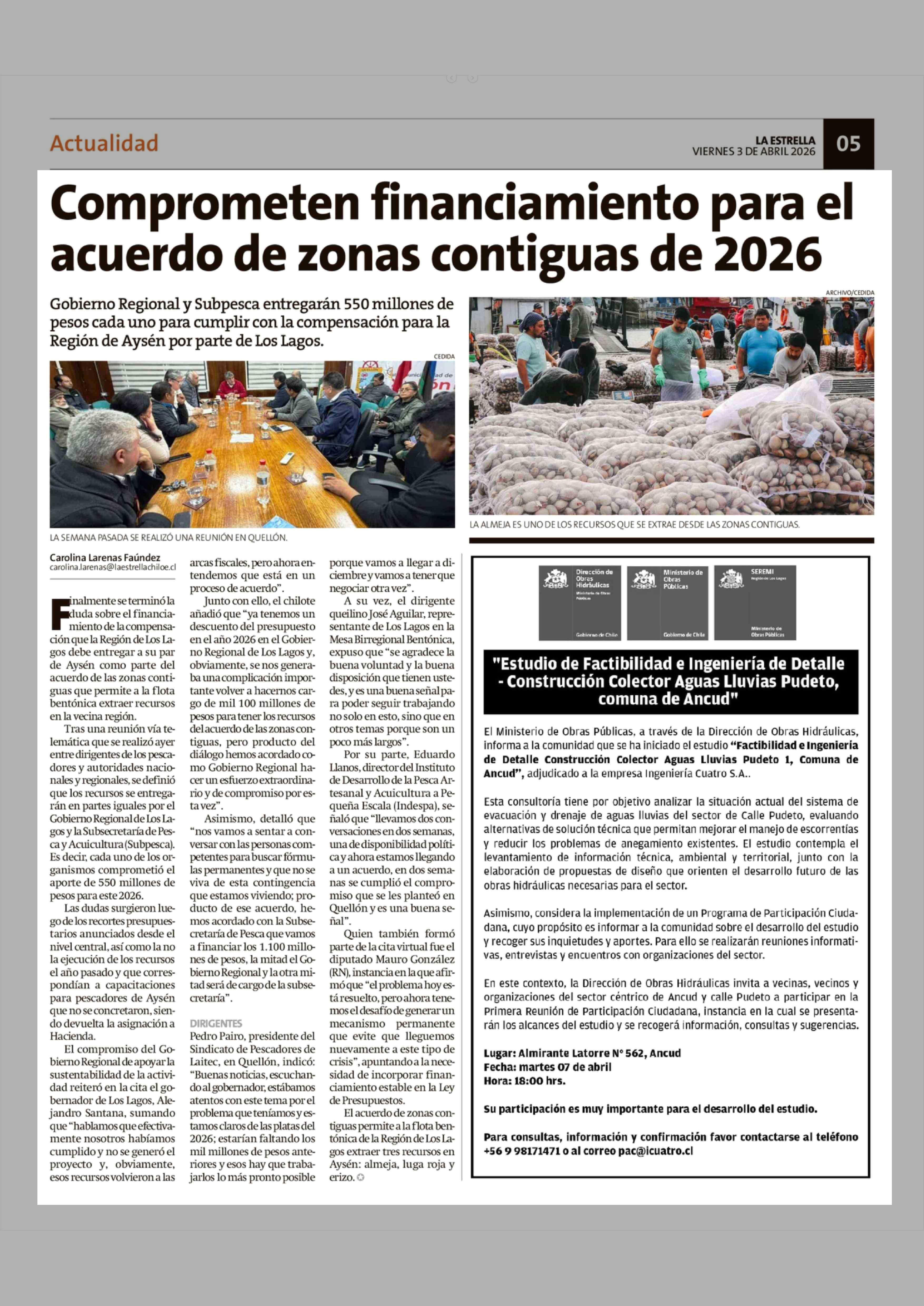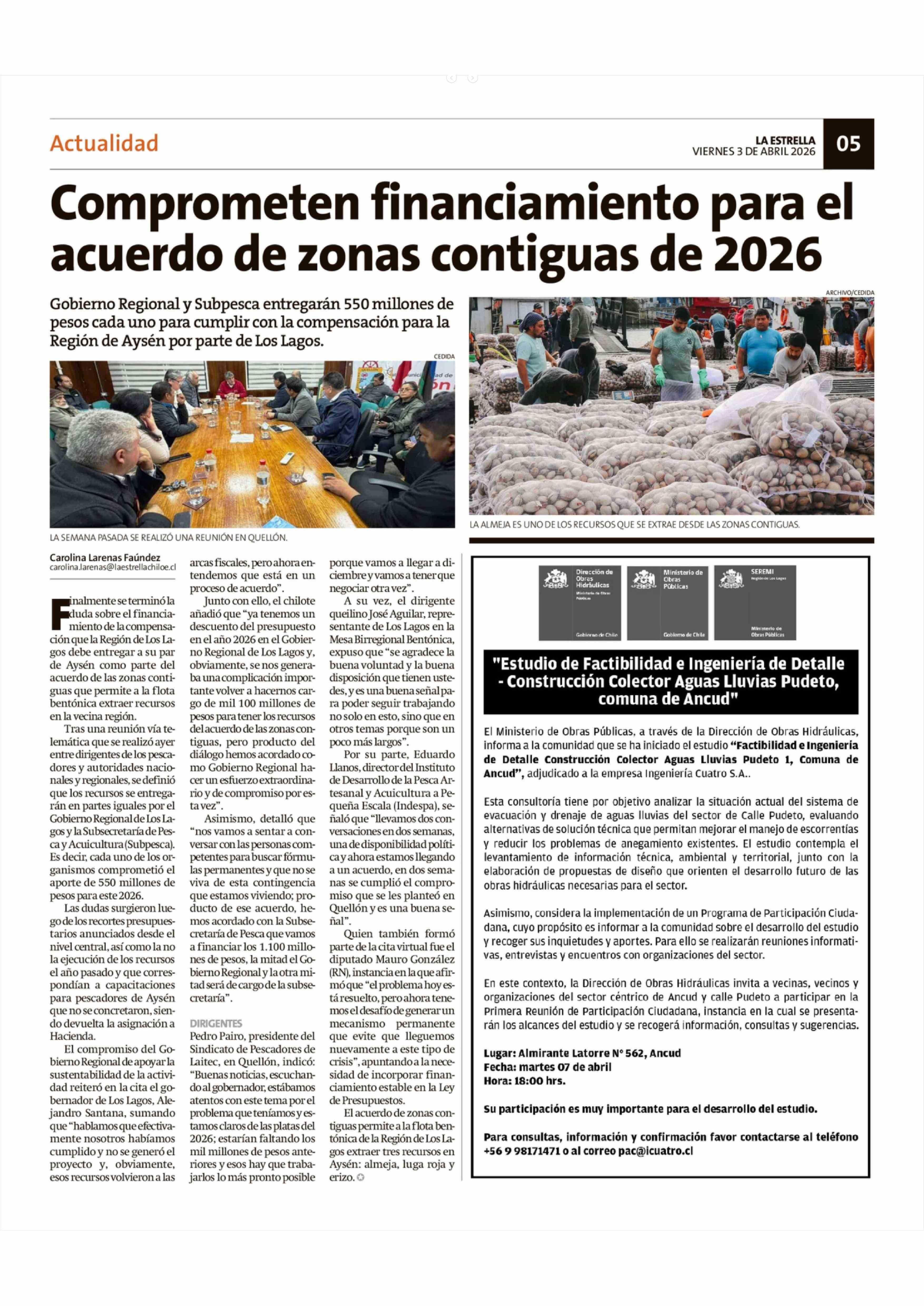 Comprometen financiamiento para el acuerdo de zonas contiguas de 2026 03-04-2026 La Estrella de Chiloé |