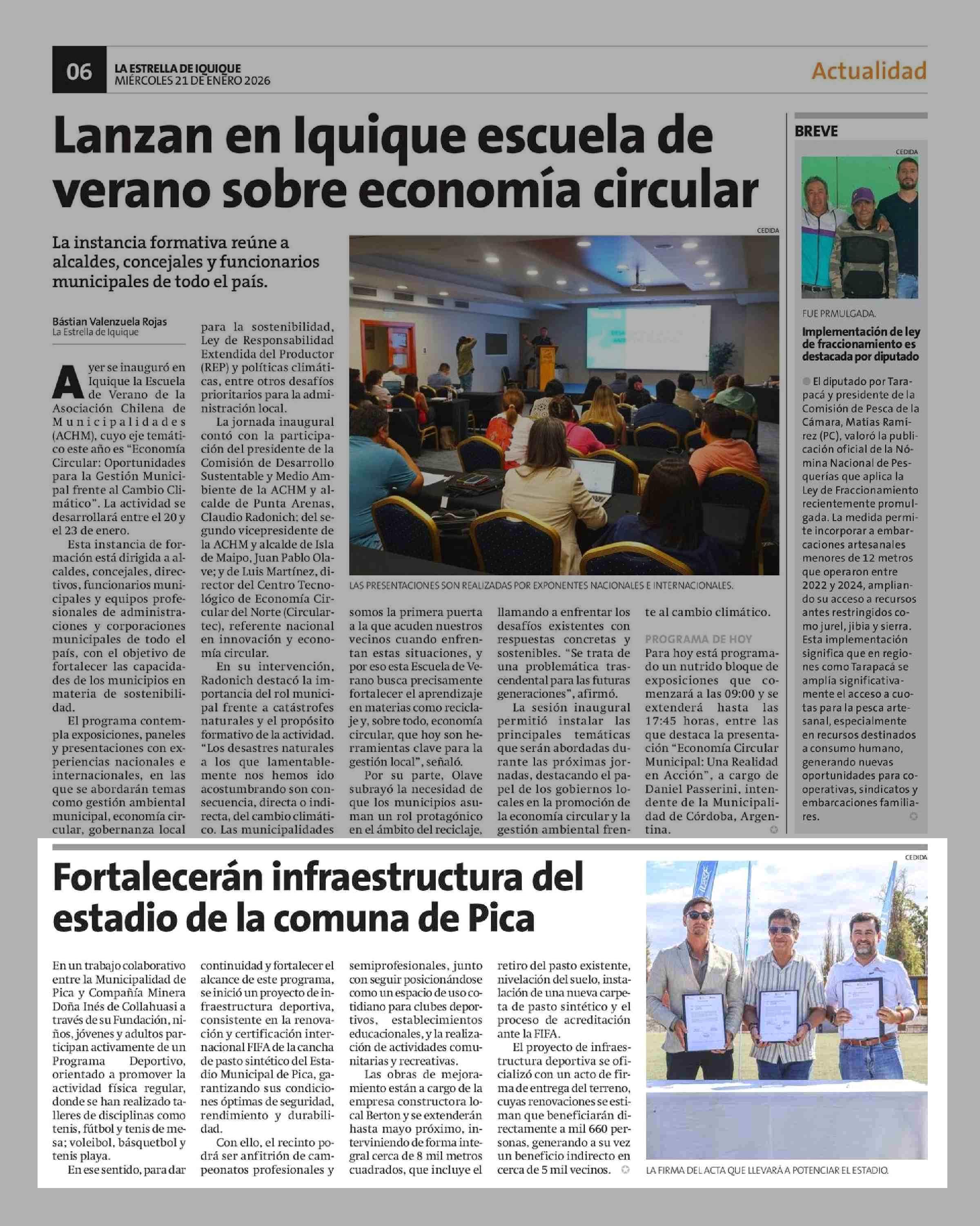 Fortalecerán infraestructura del estadio de la comuna de Pica 21-01-2026 La Estrella de Iquique |