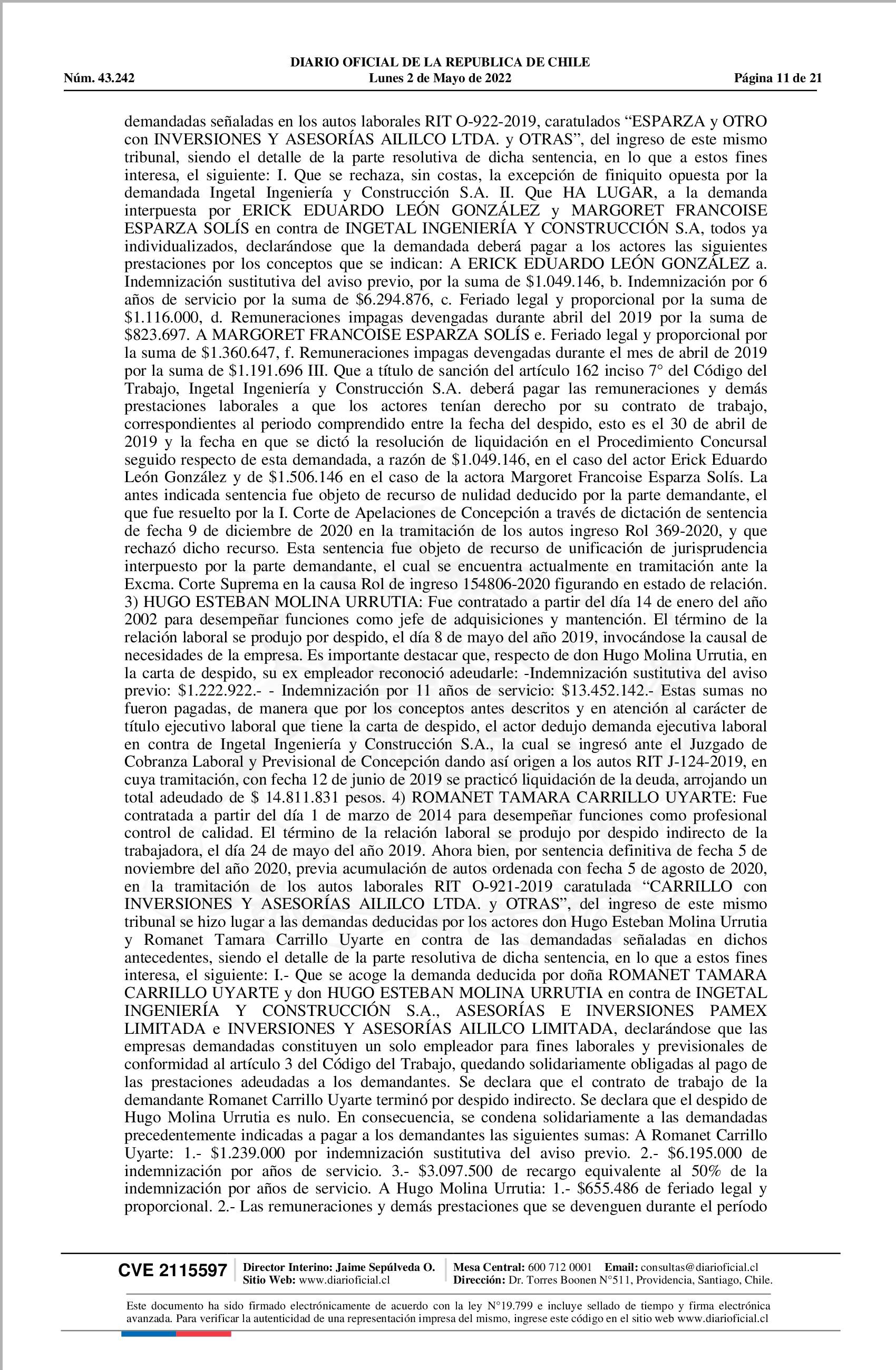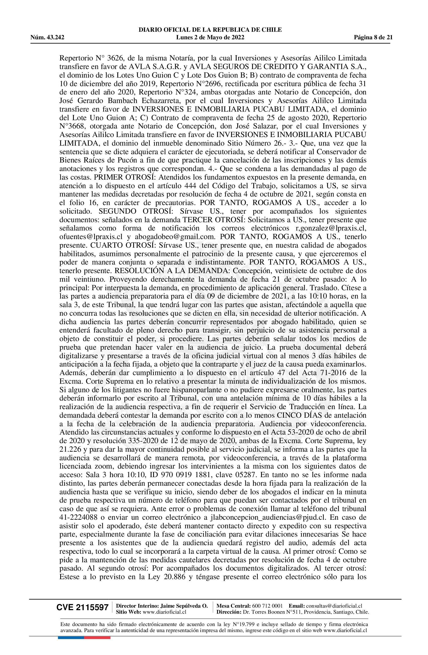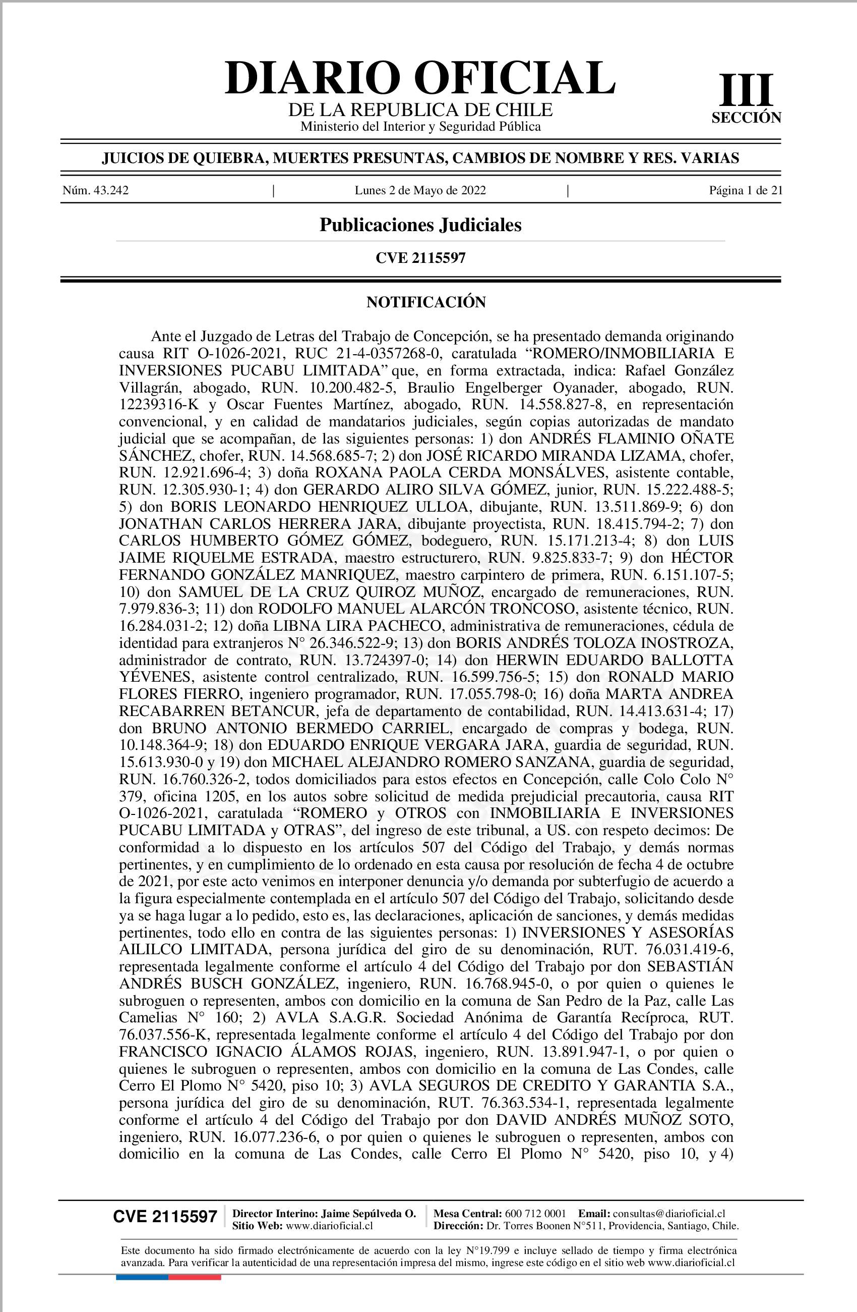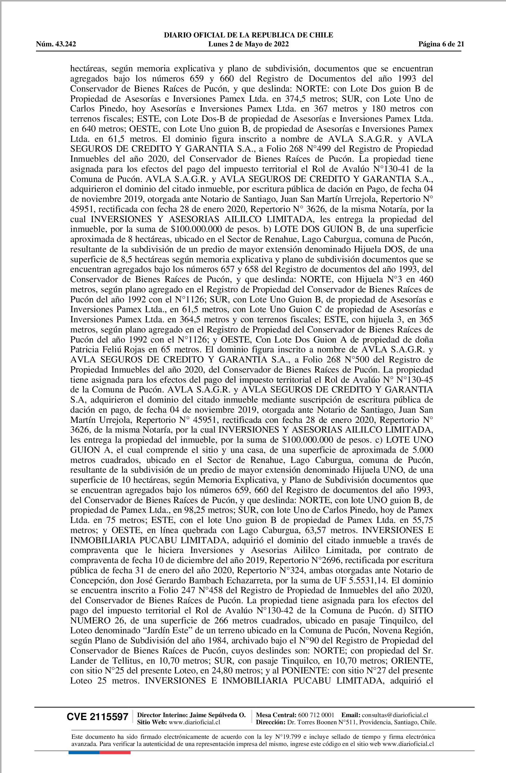 Fuente: Diario Oficial Edición Electrónica (Diario Oficial de Chile - 3 Public. Judiciales) Página(s): 968-988