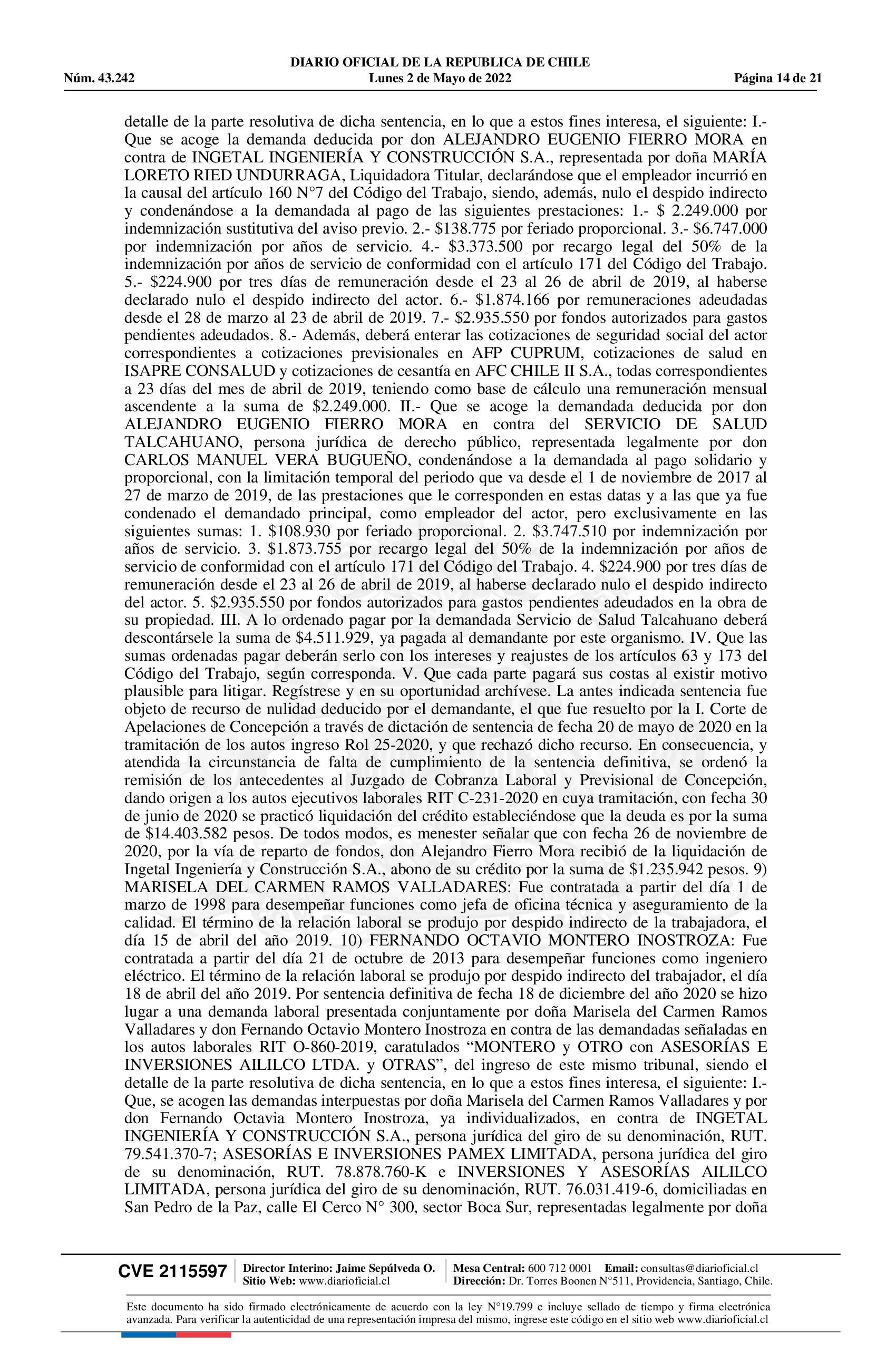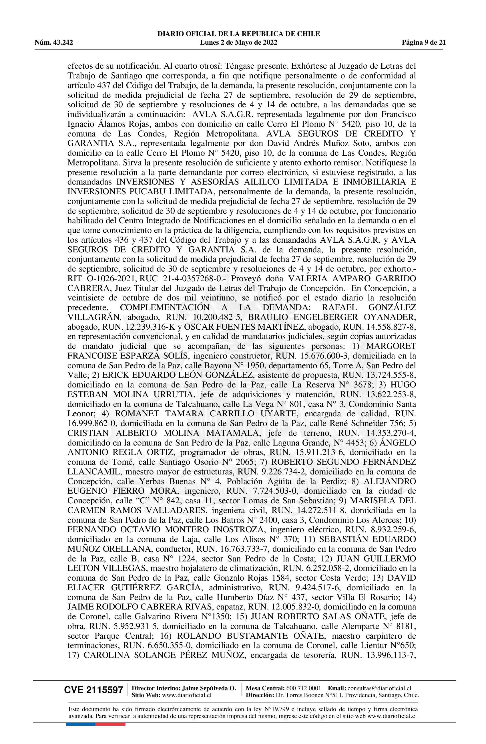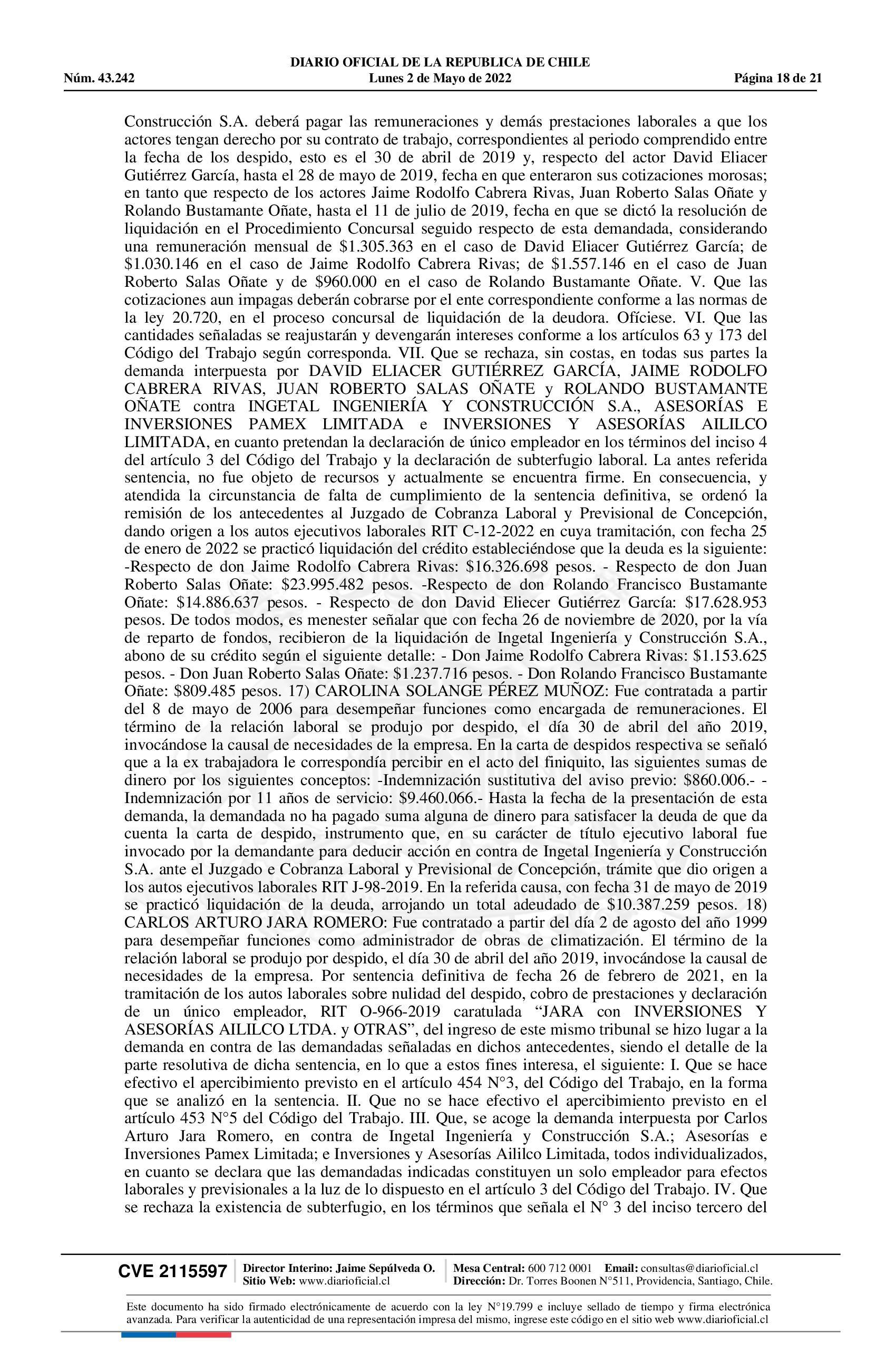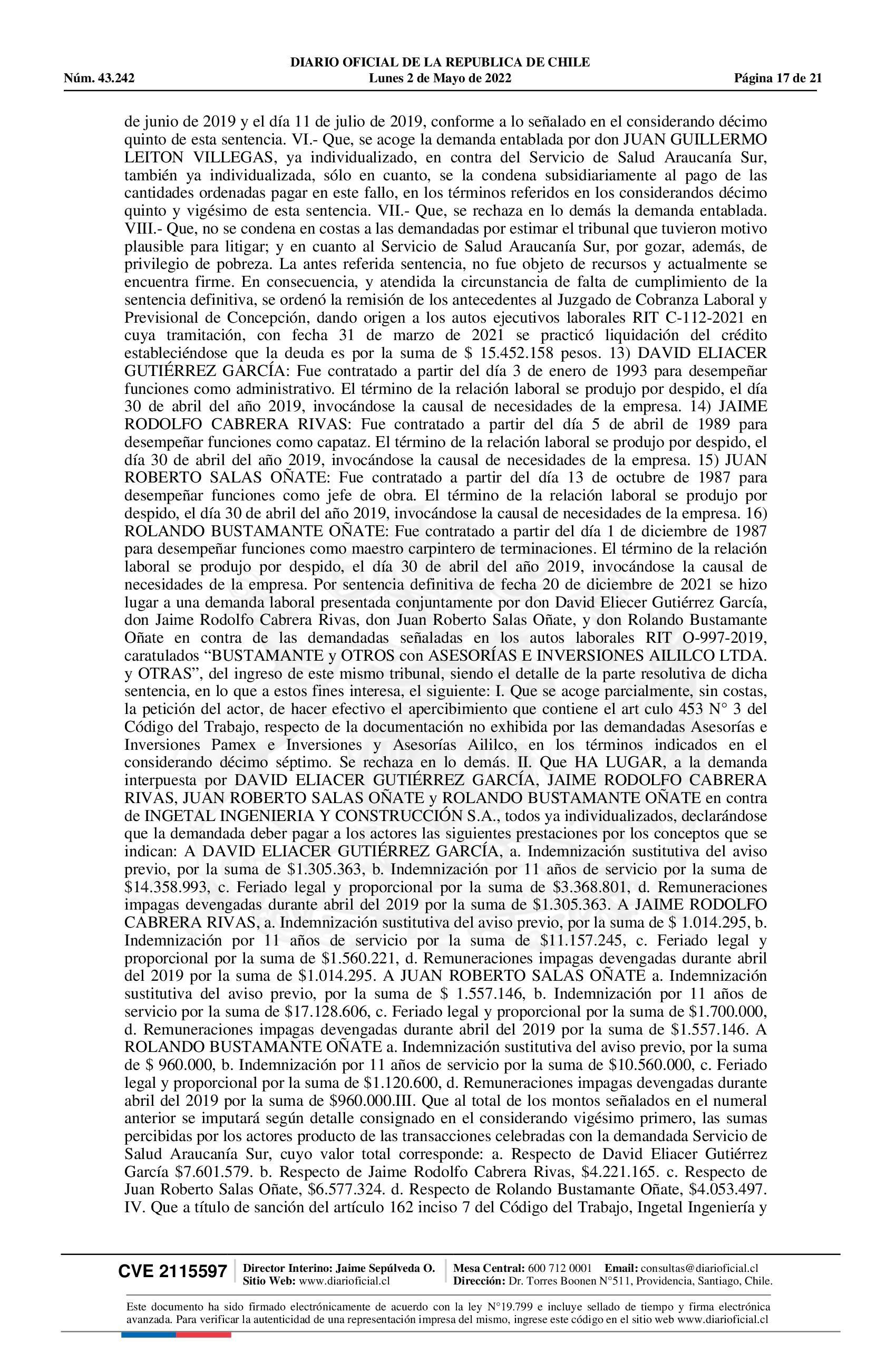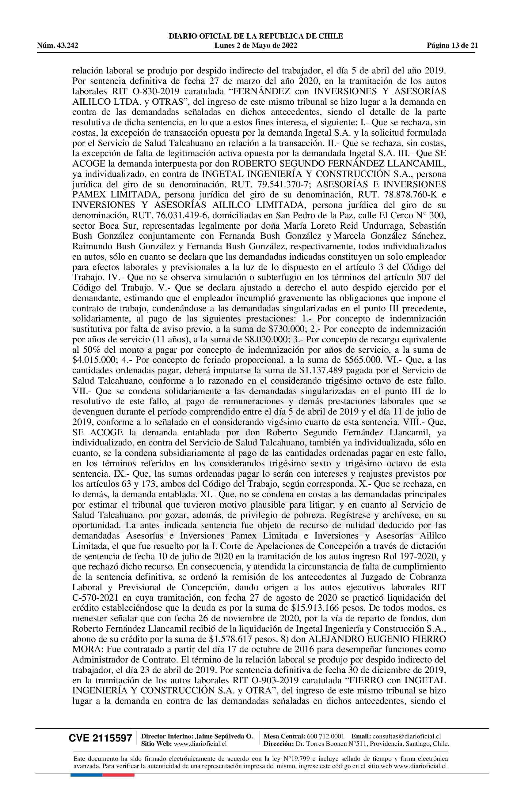 Fuente: Diario Oficial Edición Electrónica (Diario Oficial de Chile - 3 Public. Judiciales) Página(s): 968-988