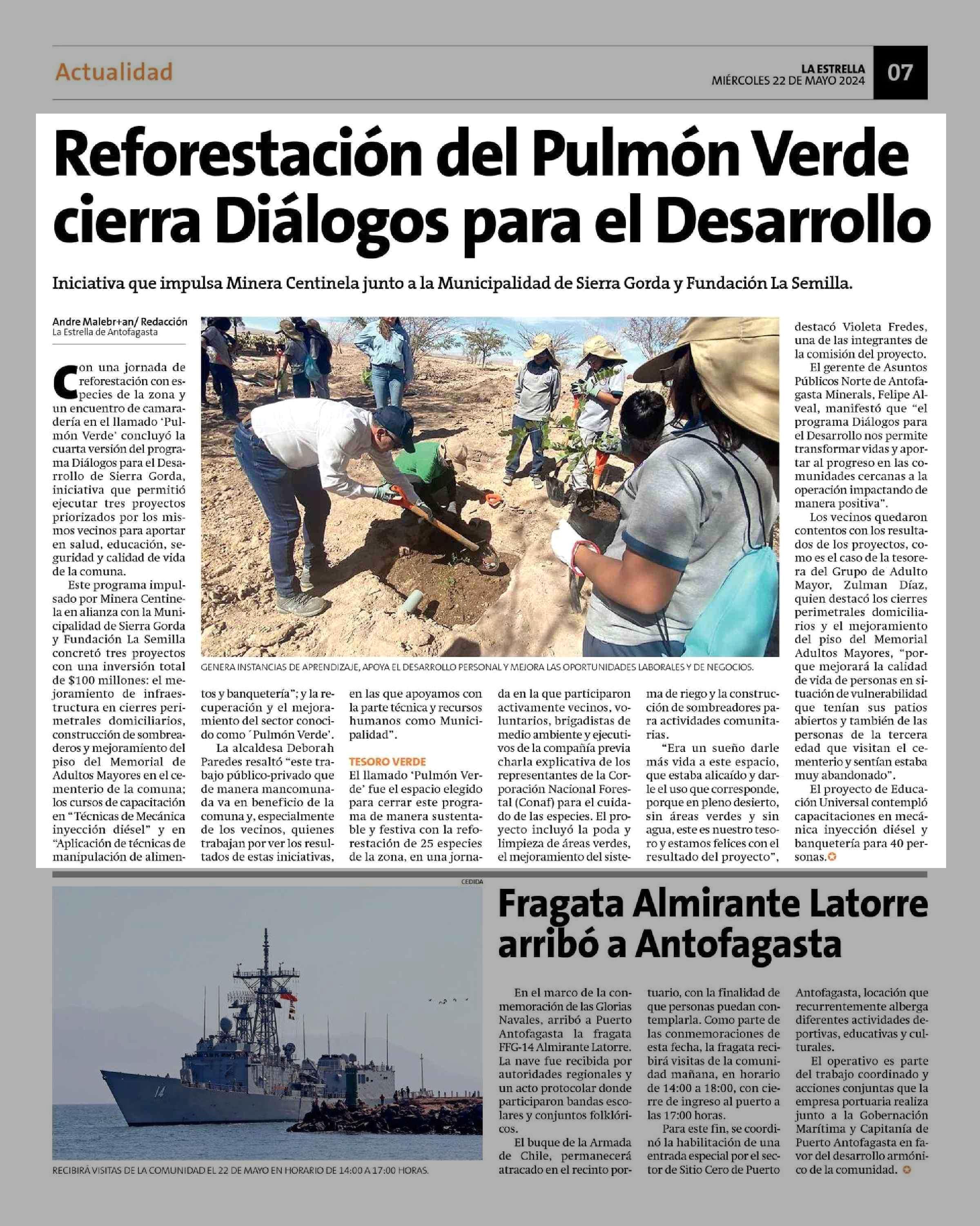 Reforestación del Pulmón Verde cierra Diálogos para el Desarrollo 22-05-2024 La Estrella de Tocopilla |