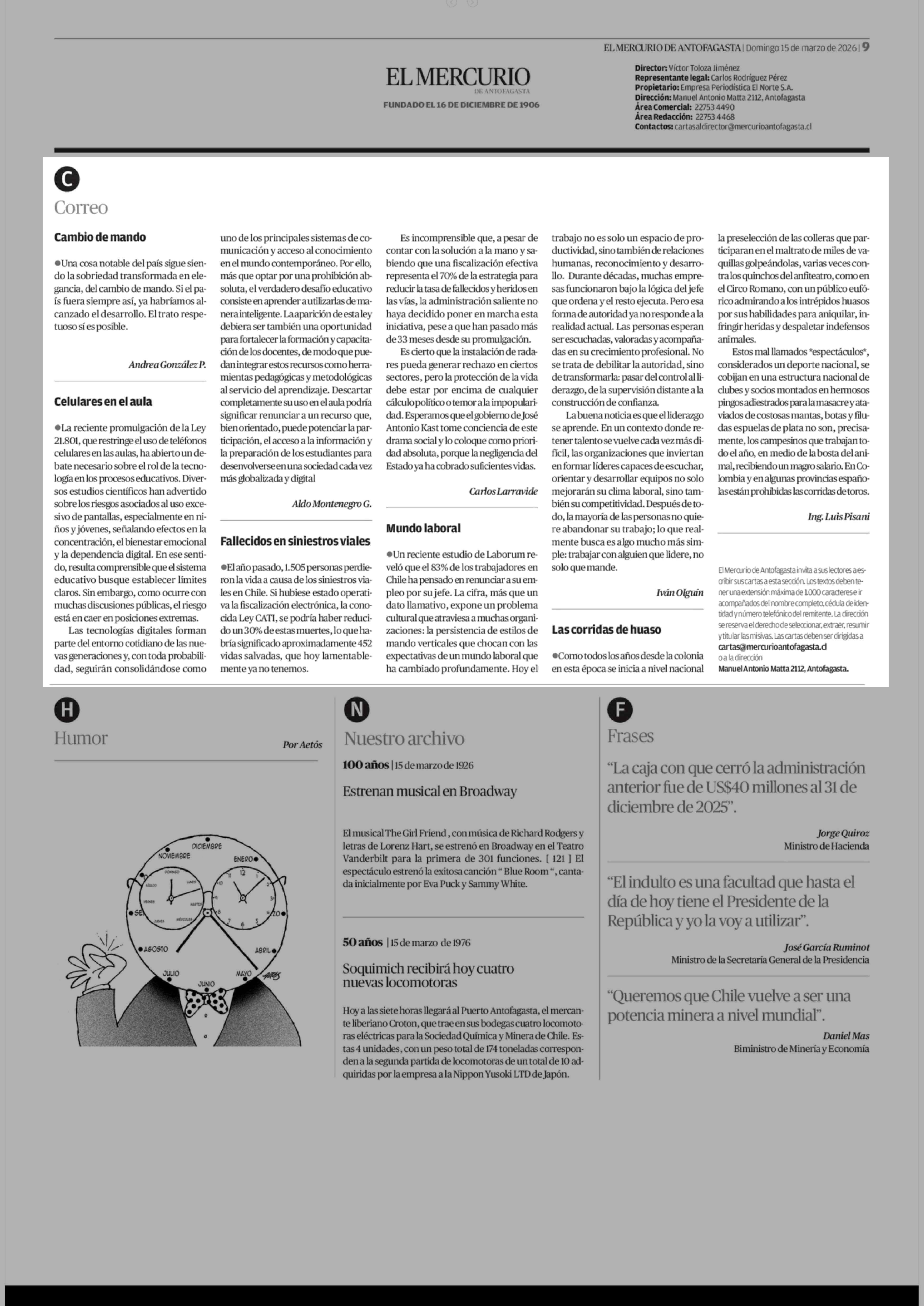 | Fuente: | El Mercurio de Antofagasta (El Mercurio de Antofagasta) | Página(s): | 9 |