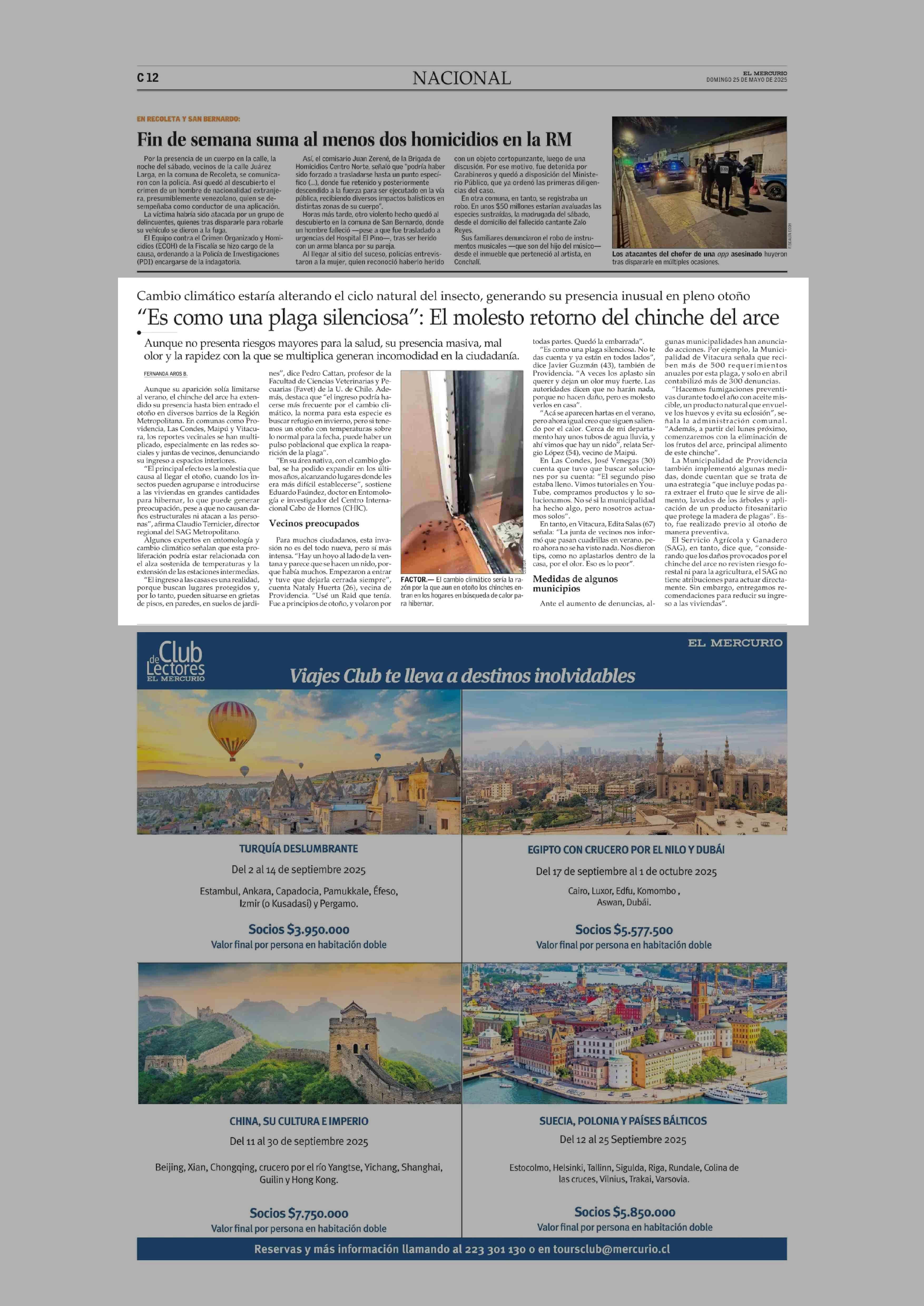 "Es como una plaga silenciosa": El molesto retorno del chinche del arce 25-05-2025 El Mercurio |