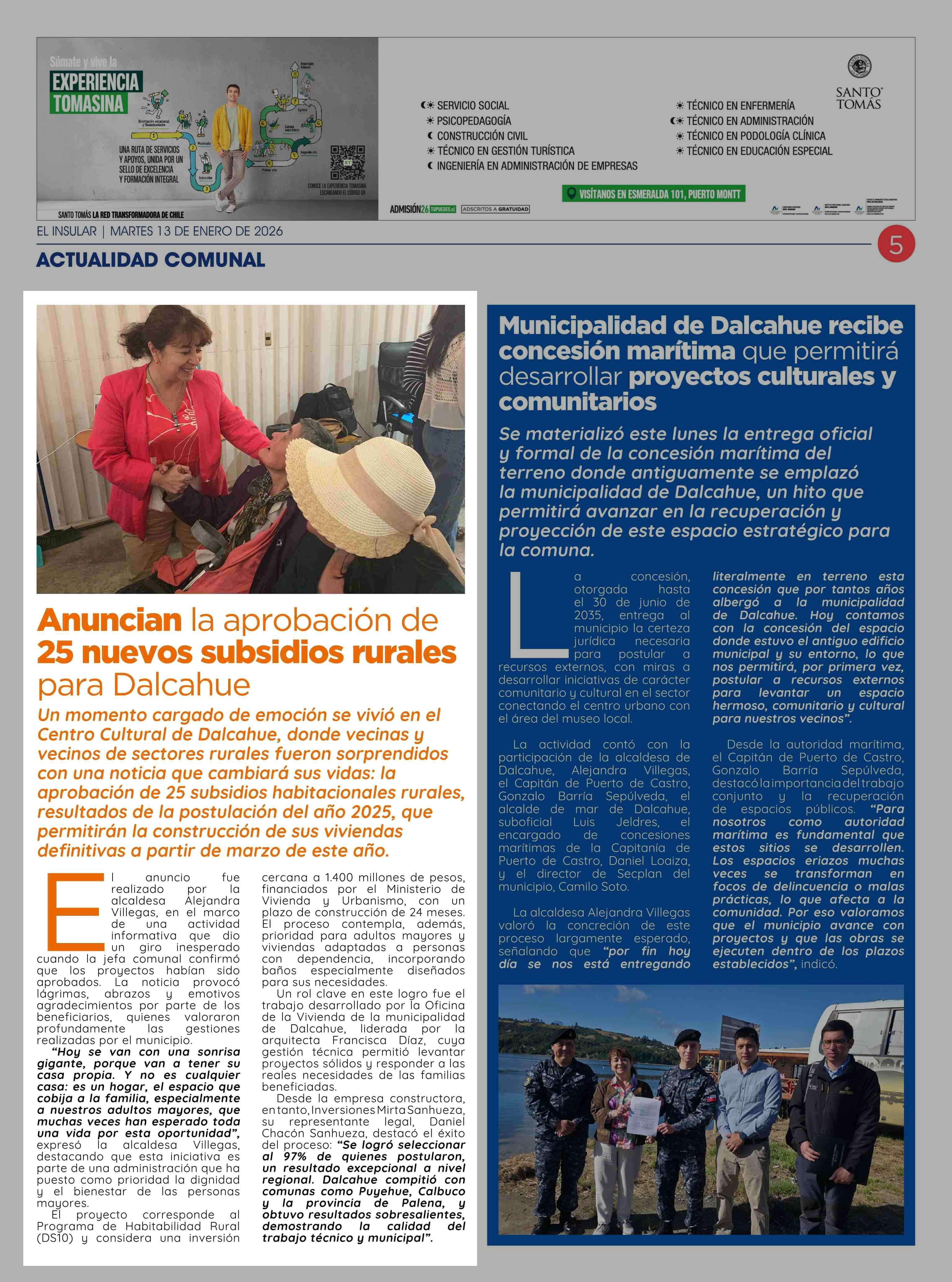 Anuncian la aprobación de 25 nuevos subsidios rurales para Dalcahue 13-01-2026 El Insular |
