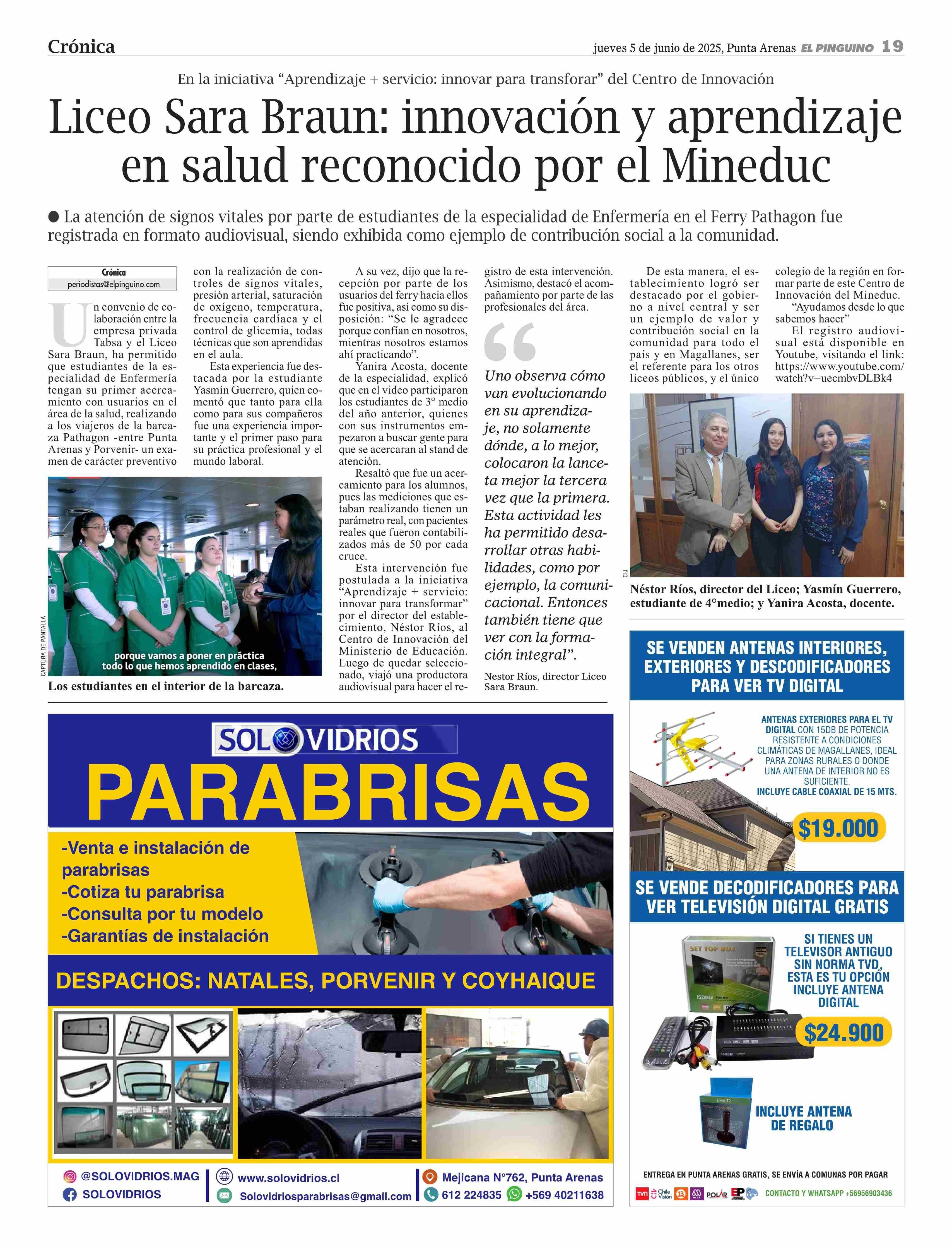Liceo Sara Braun: innovación y aprendizaje en salud reconocido por el Mineduc 05-06-2025 El Pingüino |
