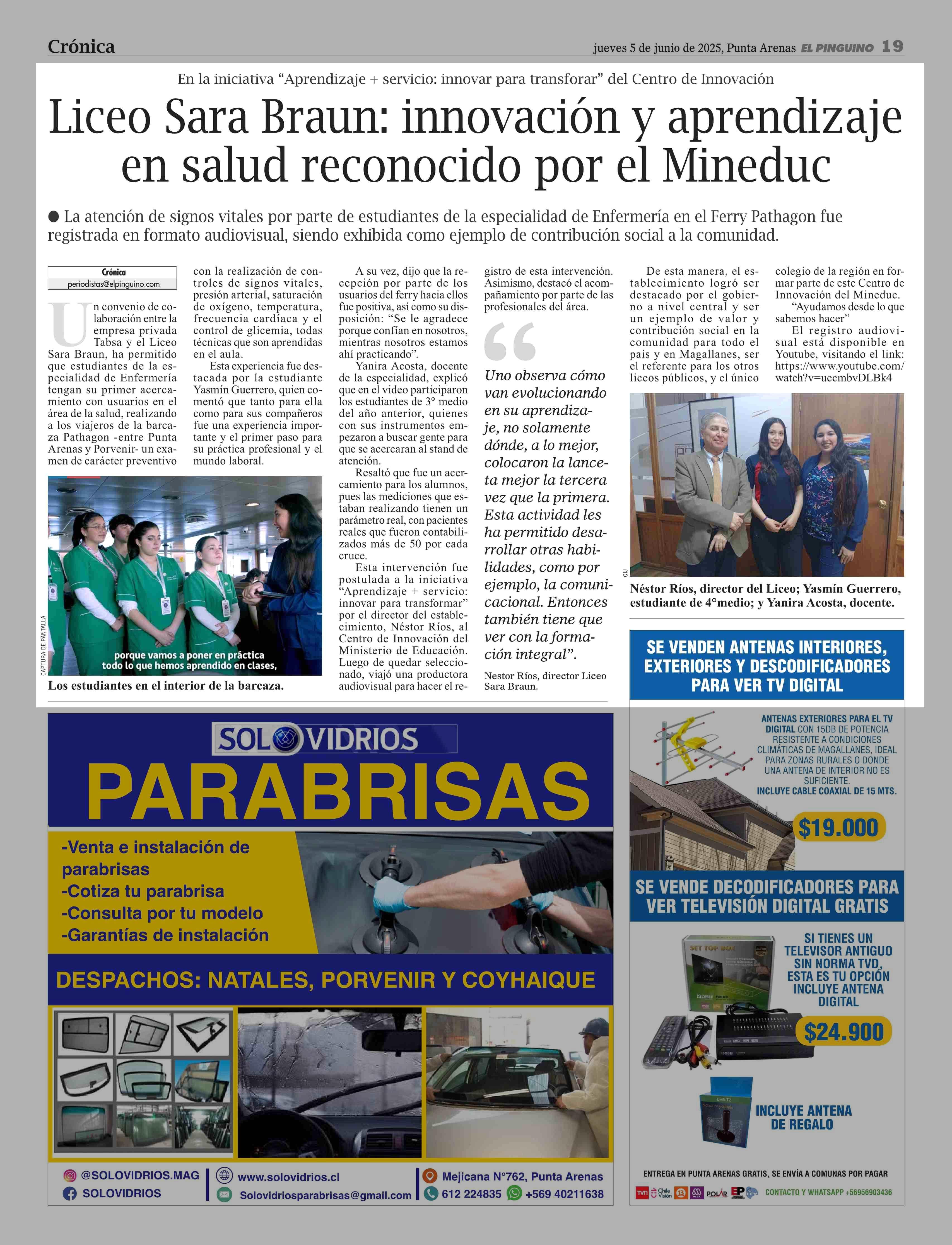 Título: Liceo Sara Braun: innovación y aprendizaje en salud reconocido por el Mineduc