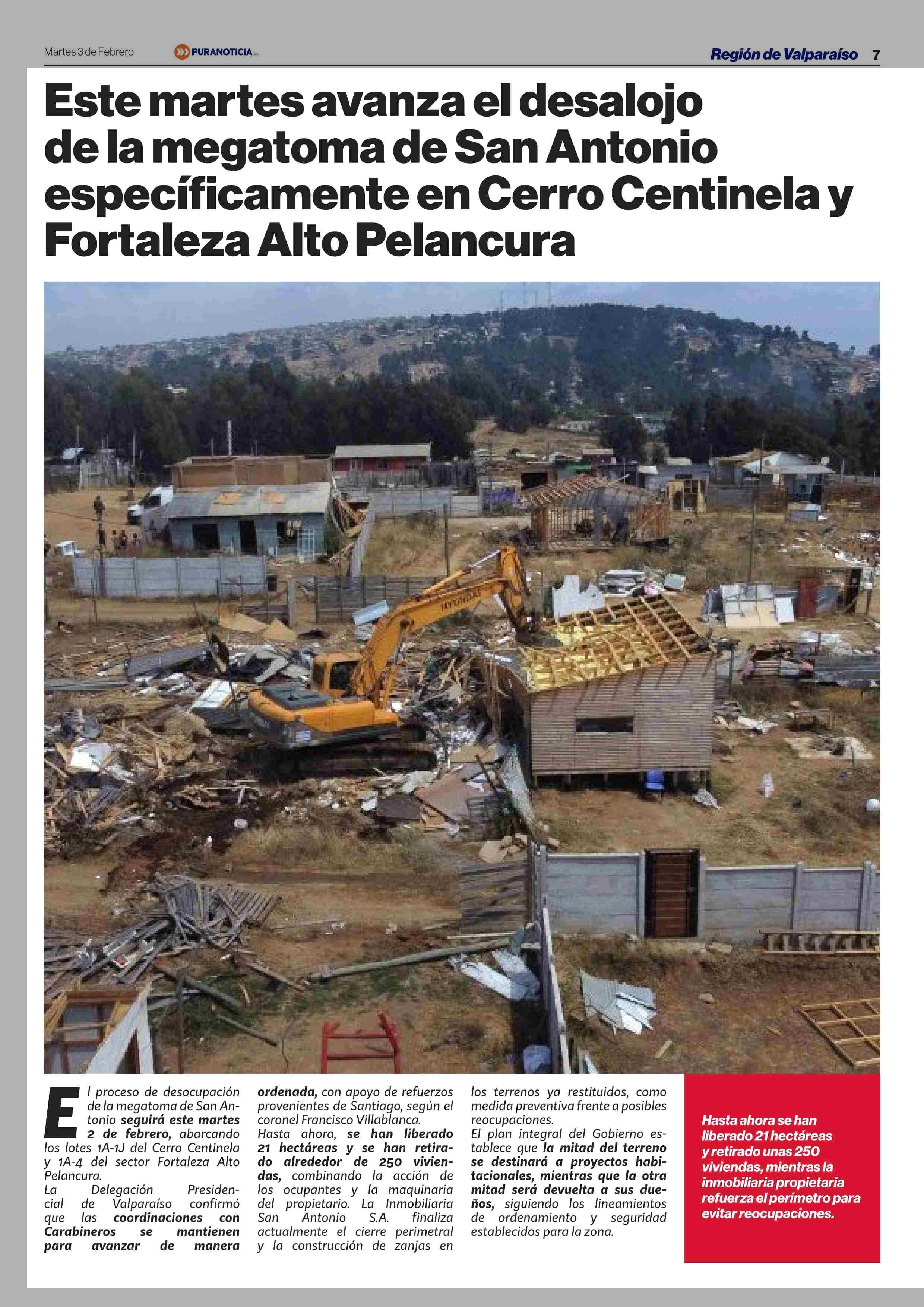 Este martes avanza el desalojo de la megatoma de San Antonio específicamente en Cerro Centinela y Fortaleza Alto Pelancura 03-02-2026 Puranoticia.cl |