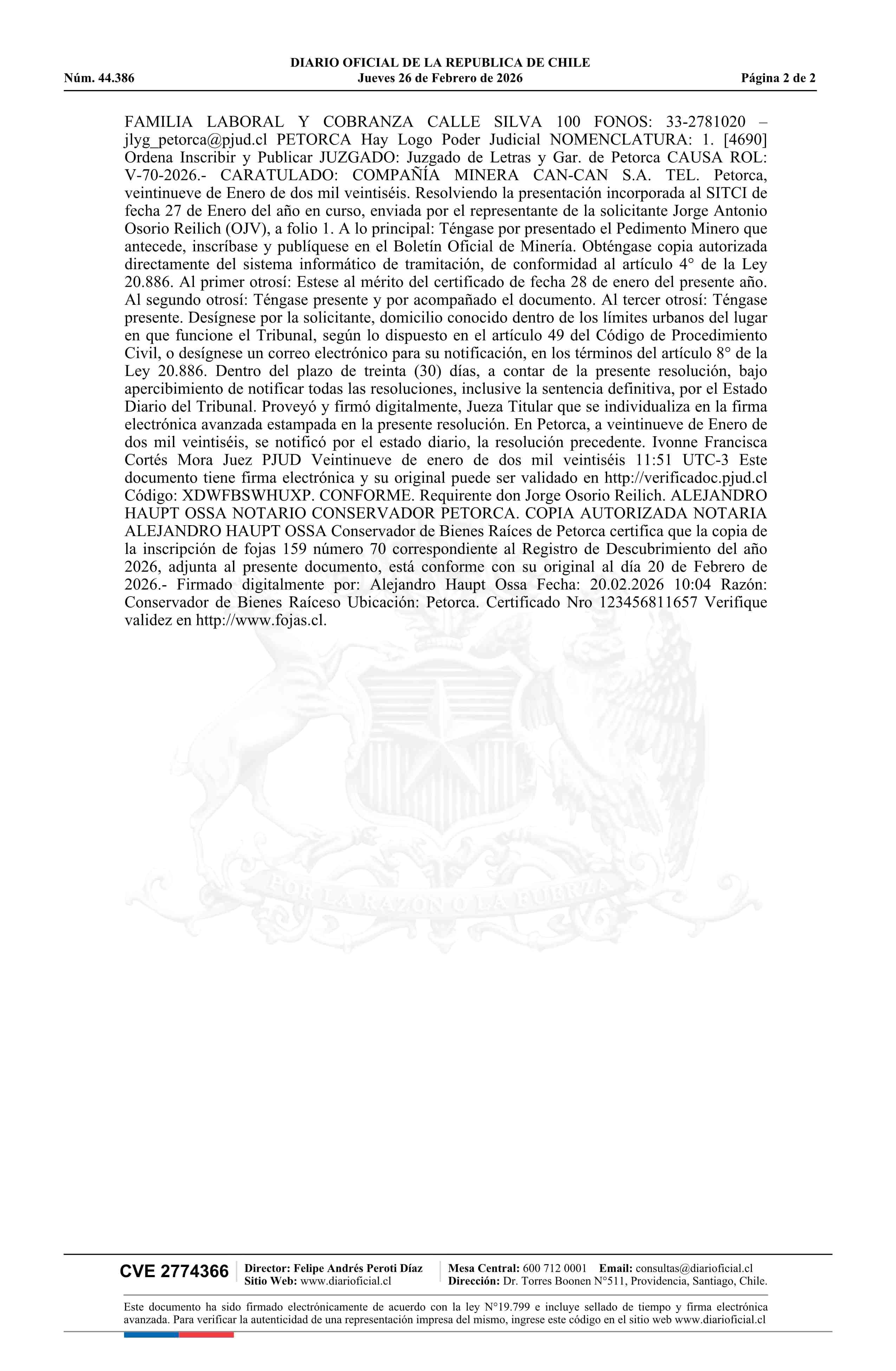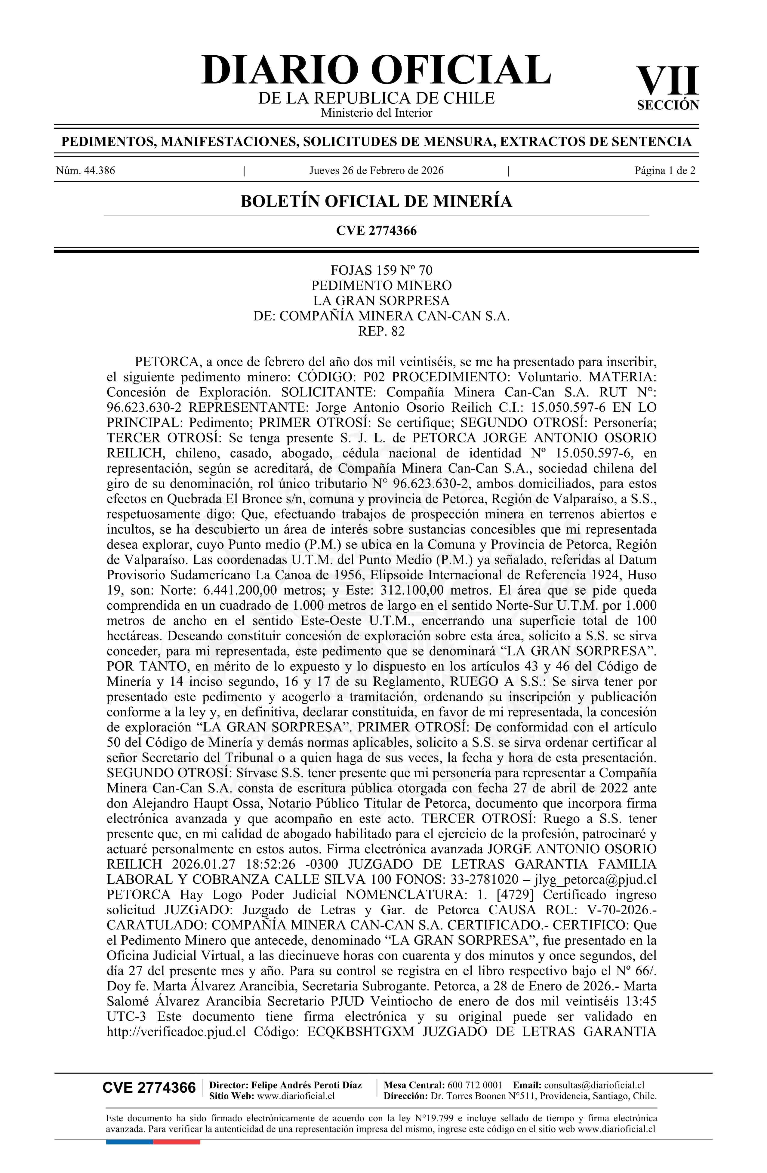 26-02-2026 DIARIO OFICIAL CHILE - BOLETÍN OFICIAL DE MINERÍA