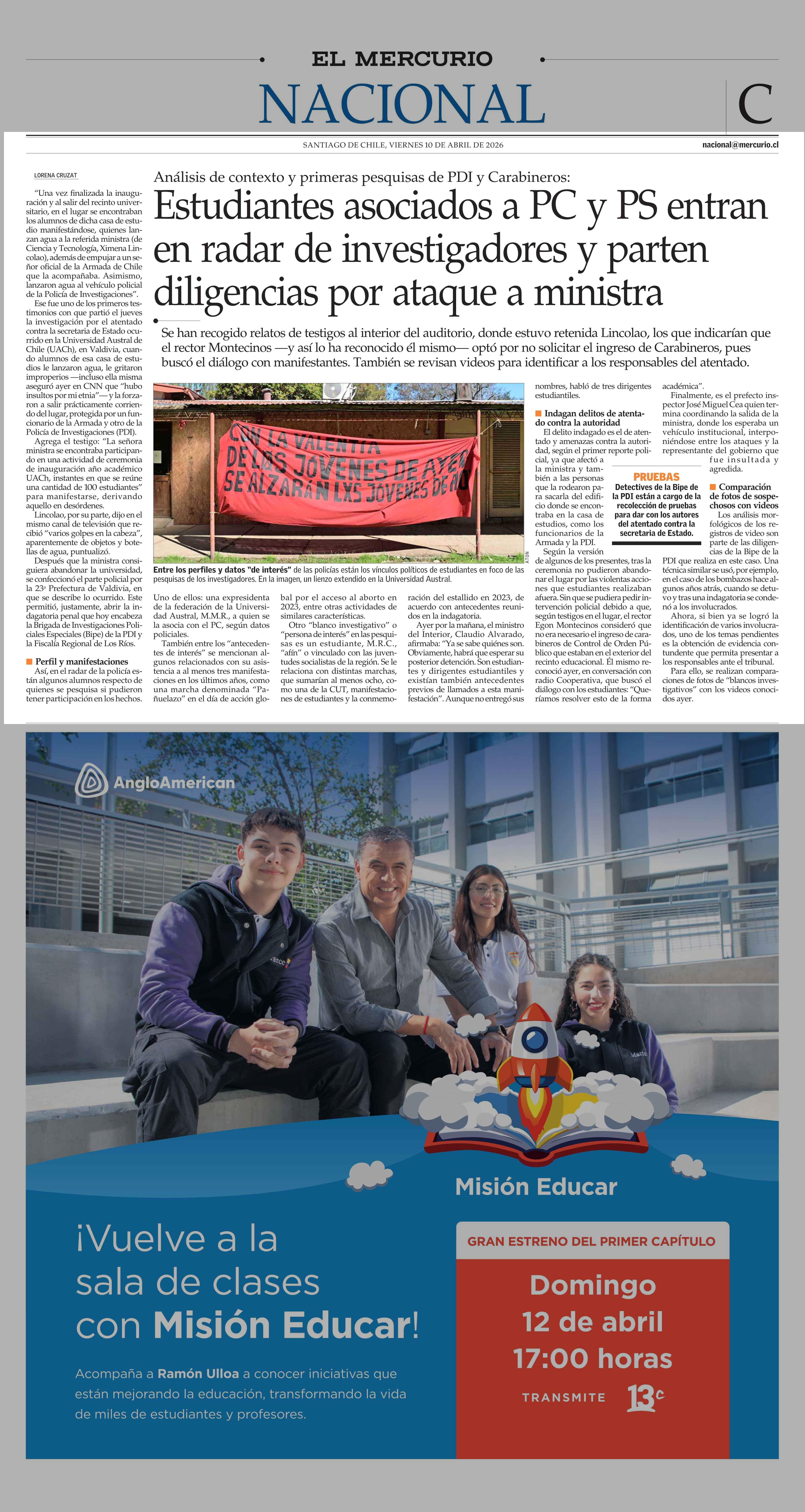 Fecha: 10-04-2026 Sector: Noticia general Región: Región Metropolitana de Santiago