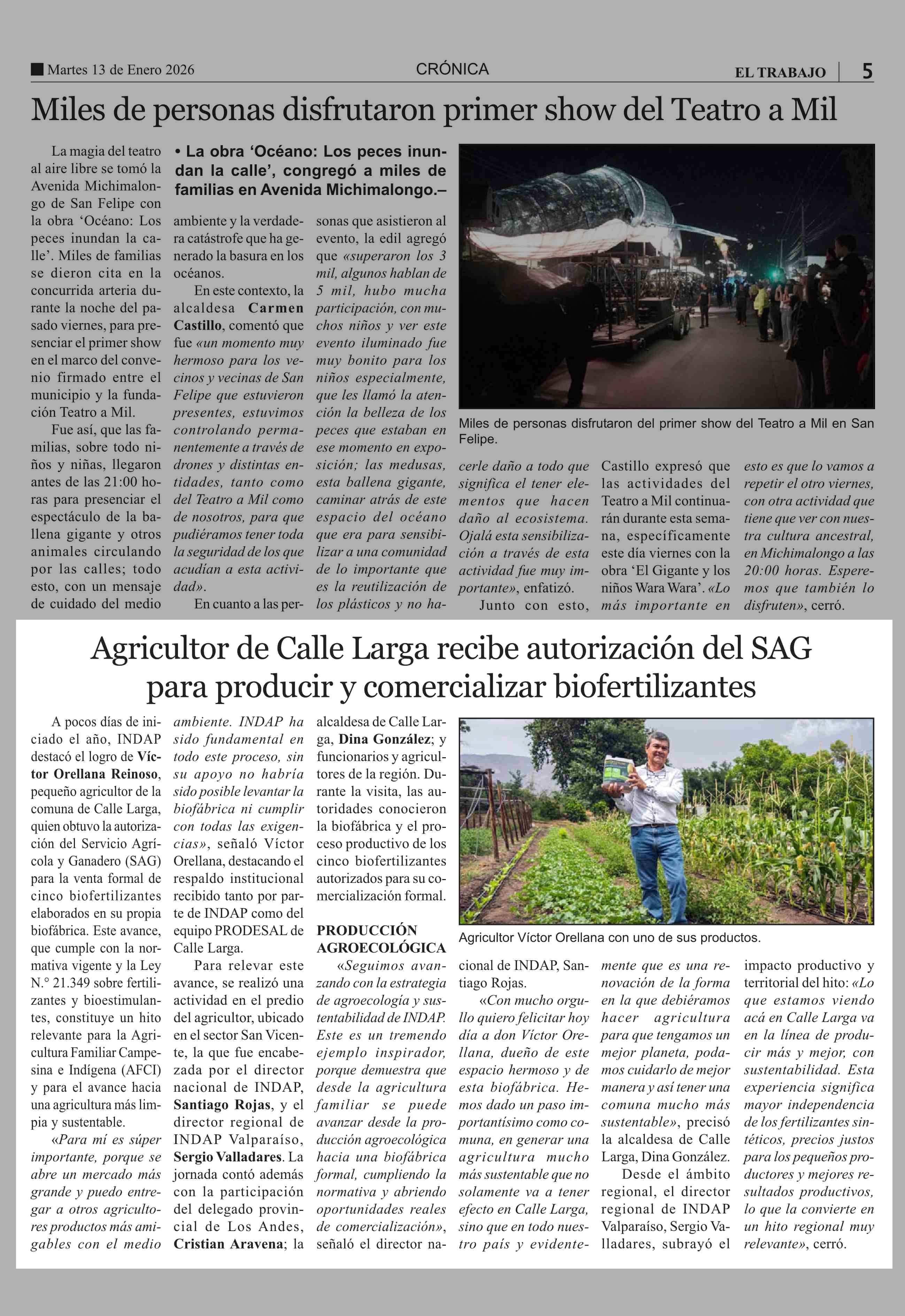 Agricultor de Calle Larga recibe autorización del SAG para producir y comercializar biofertilizantes 13-01-2026 El Trabajo |