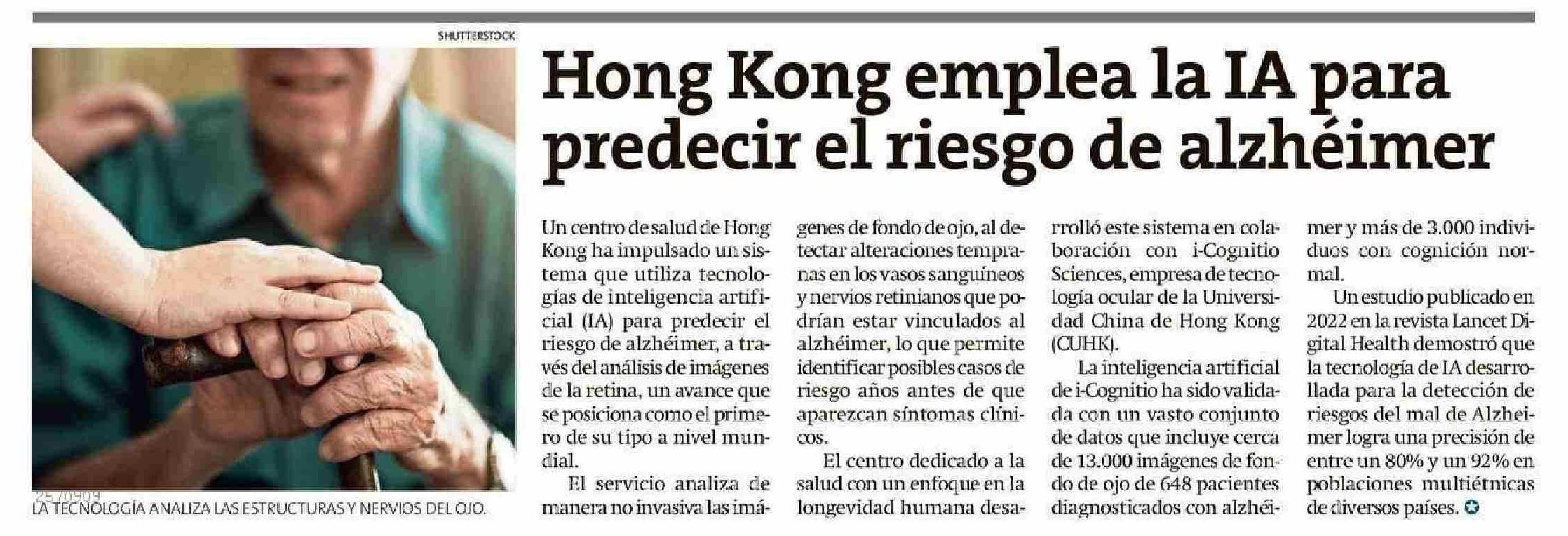 | Título: | Hong Kong emplea la IA para predecir el riesgo de alzheimer |