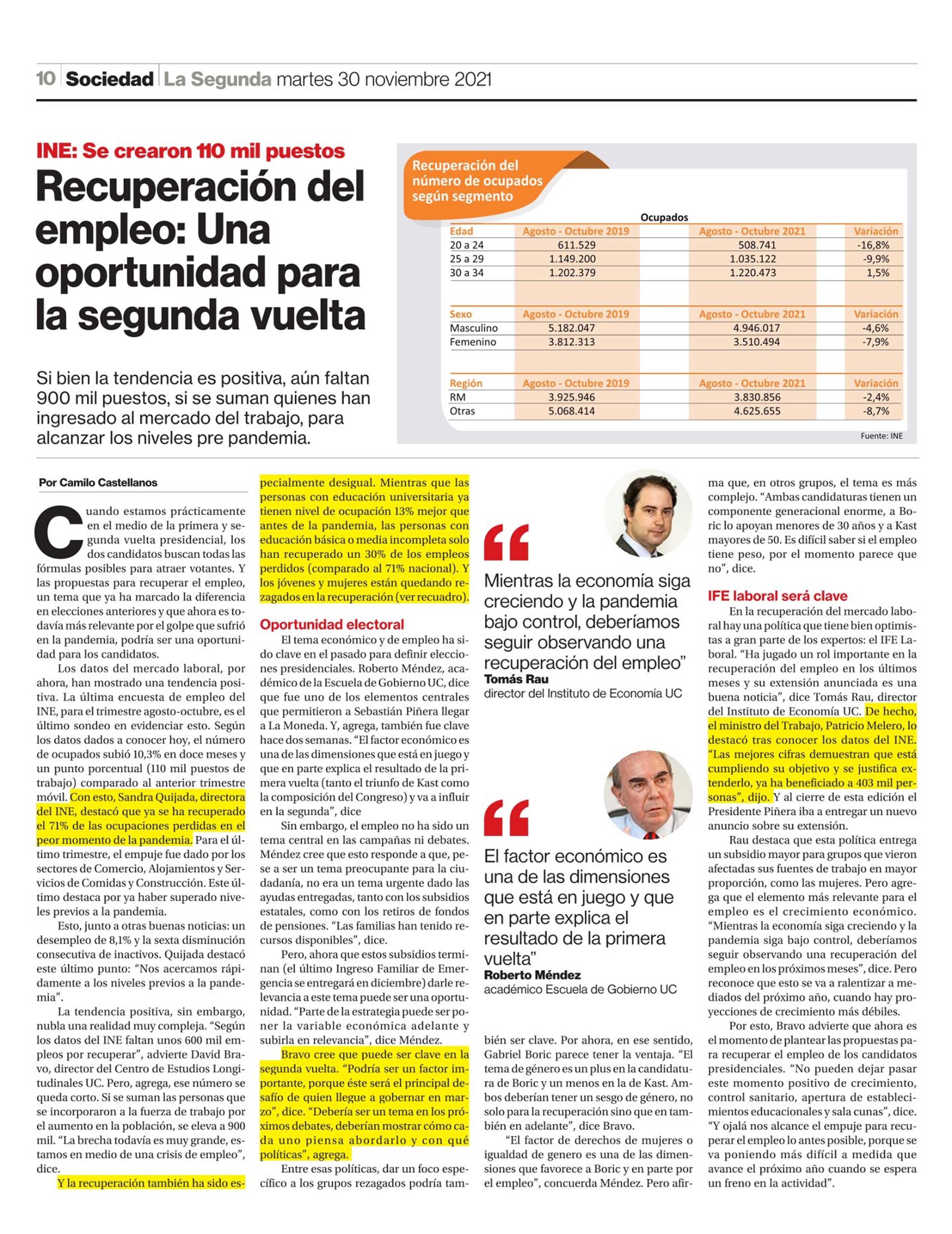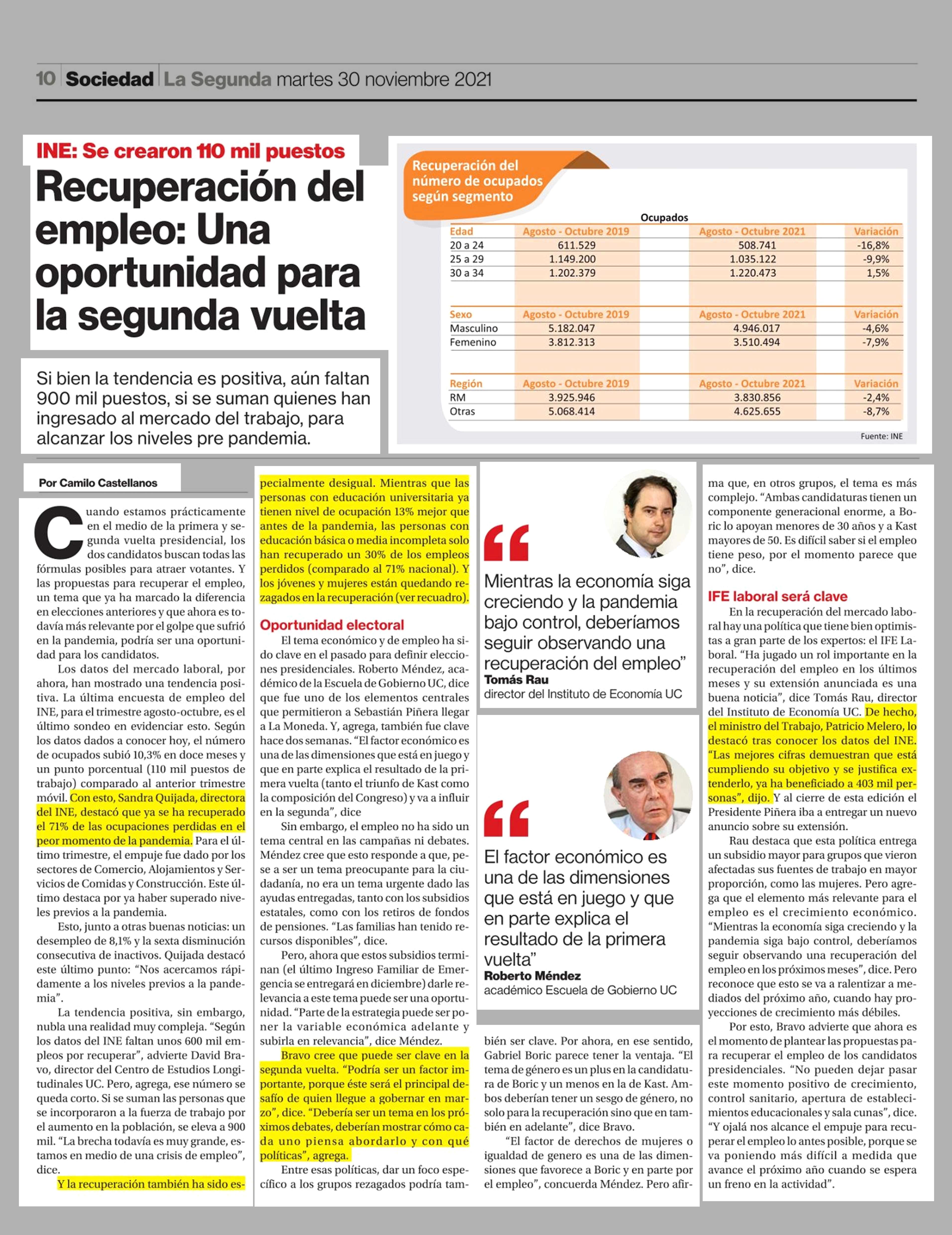 Recuperación del empleo: Una oportunidad para la segunda vuelta 30-11-2021 La Segunda |