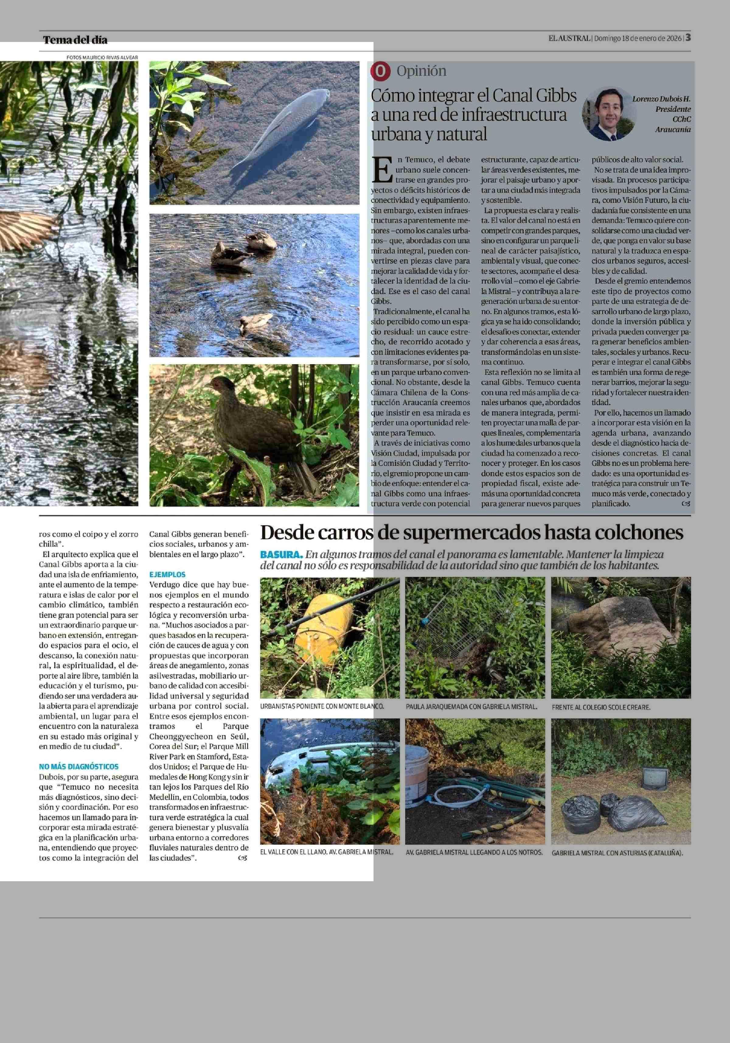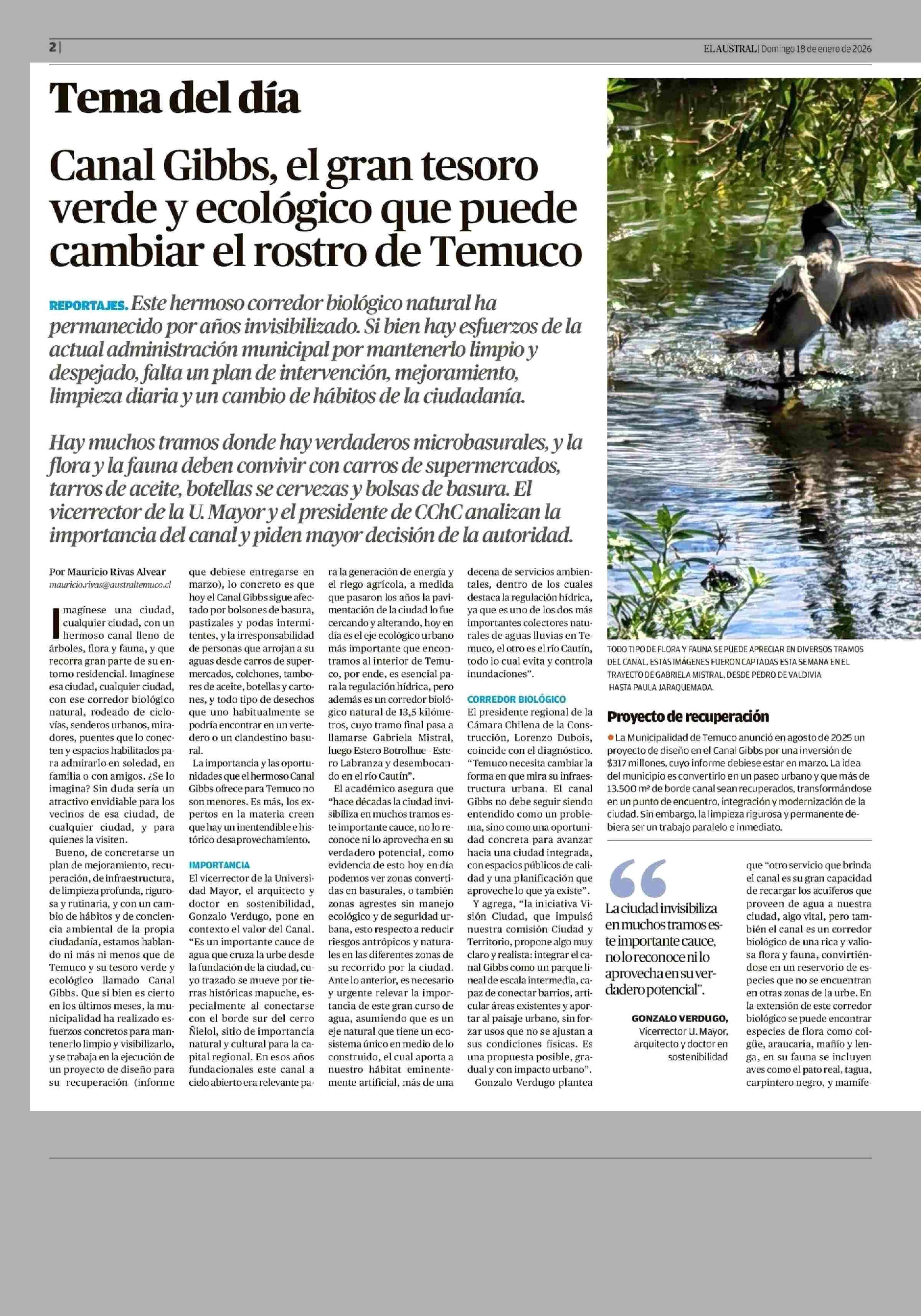 Canal Gibbs, el gran tesoro verde y ecológico que puede cambiar el rostro de Temuco 18-01-2026 El Austral de la Araucanía |