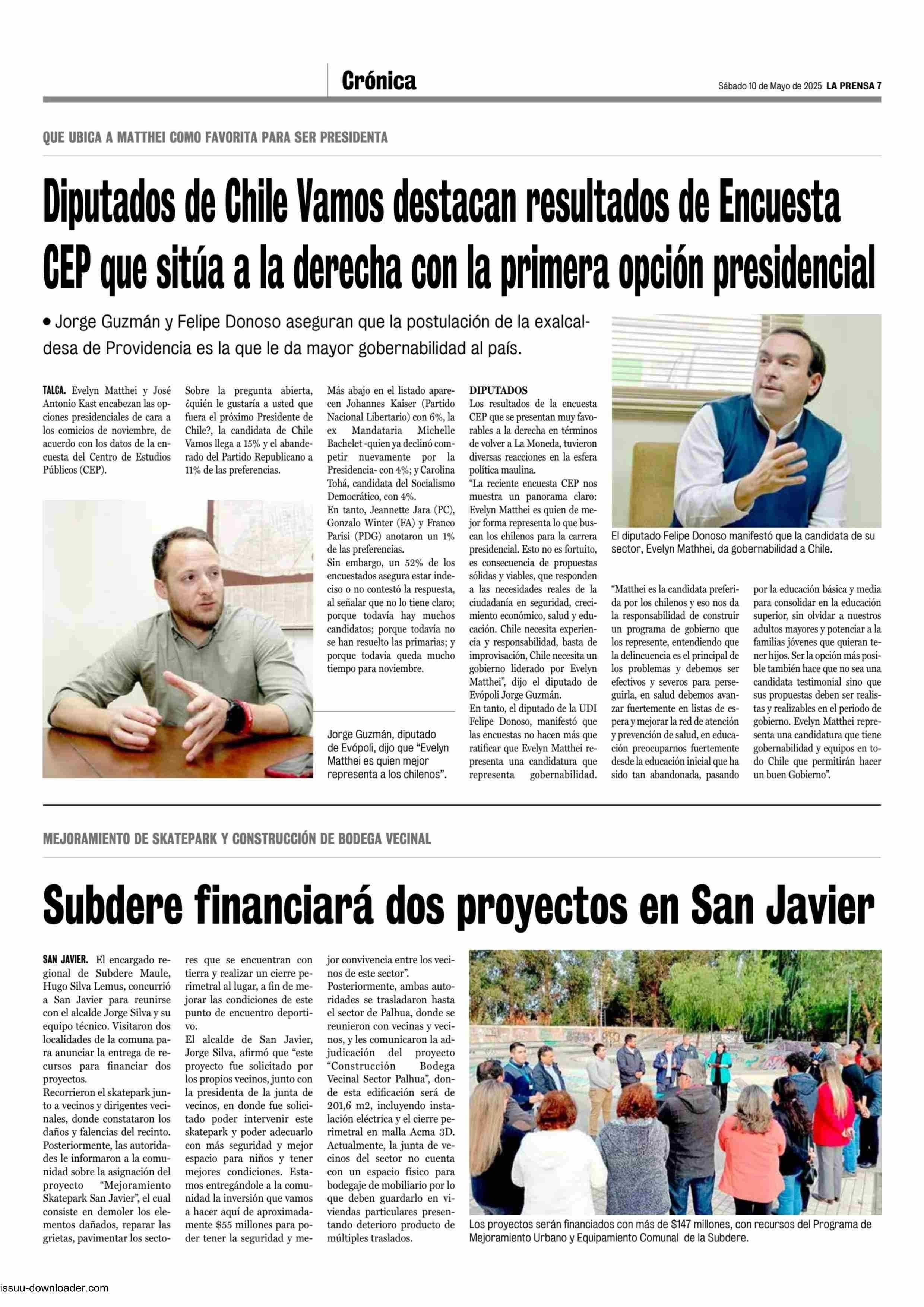 Diputados de Chile Vamos destacan resultados de Encuesta CEP que sitúa a la derecha con la primera opción presidencial 10-05-2025 La Prensa de Curicó |