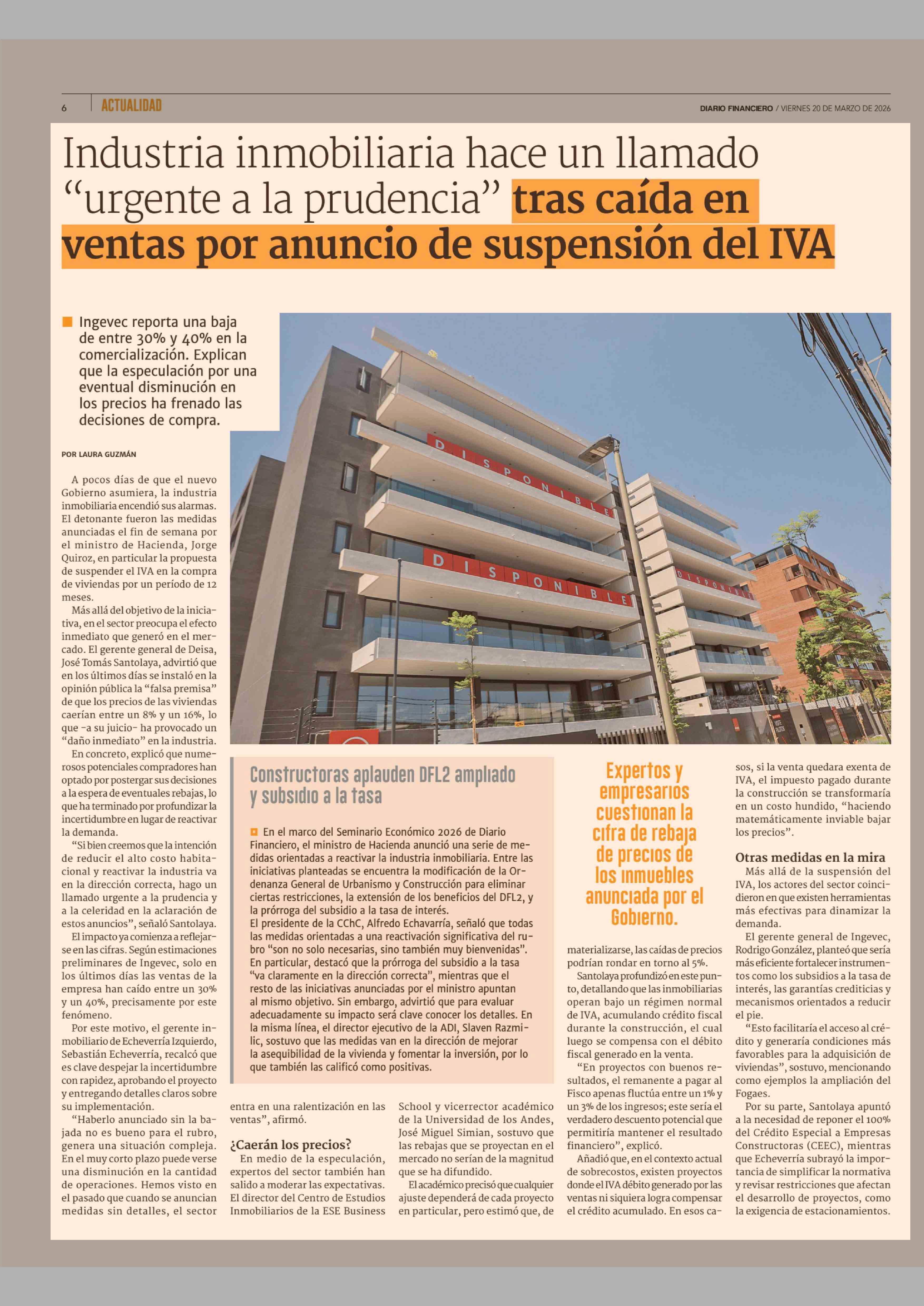 Título: Industria inmobiliaria hace un llamado "urgente a la prudencia" tras caída en ventas por anuncio de suspensión del IVA