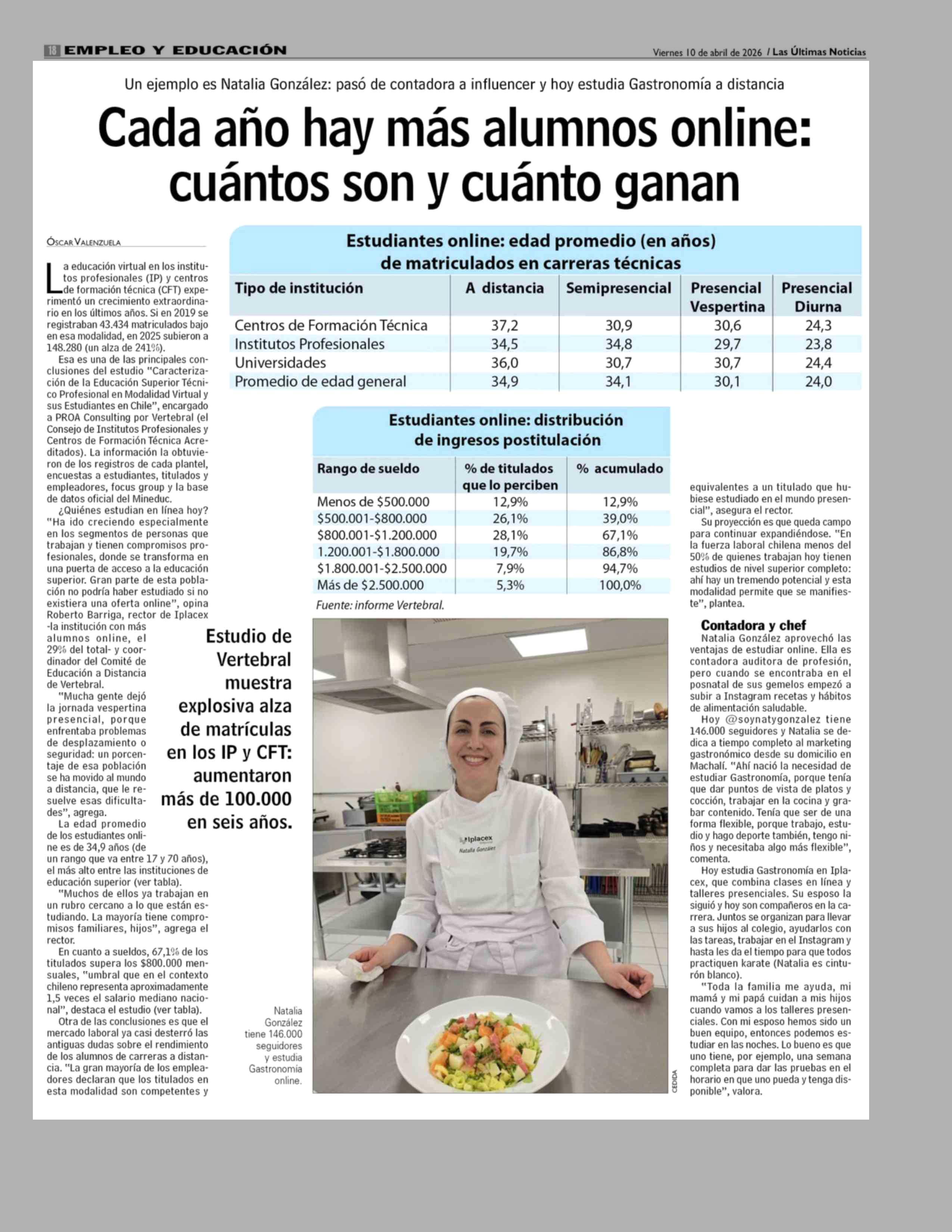 Cada año hay más alumnos online: cuántos son y cuanto ganan 10-04-2026 Las Últimas Noticias |