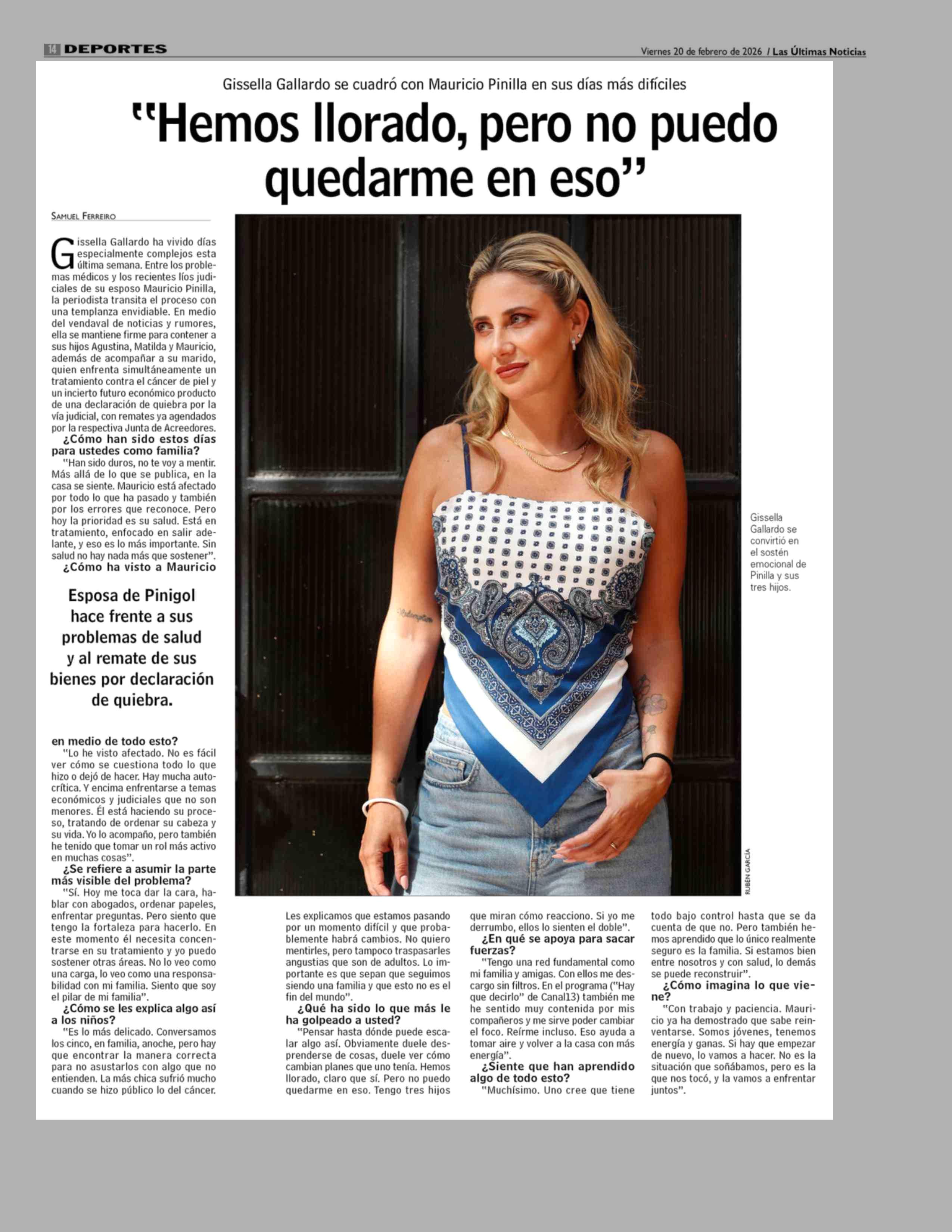 "Hemos llorado, pero no puedo quedarme en eso" 20-02-2026 Las Últimas Noticias |