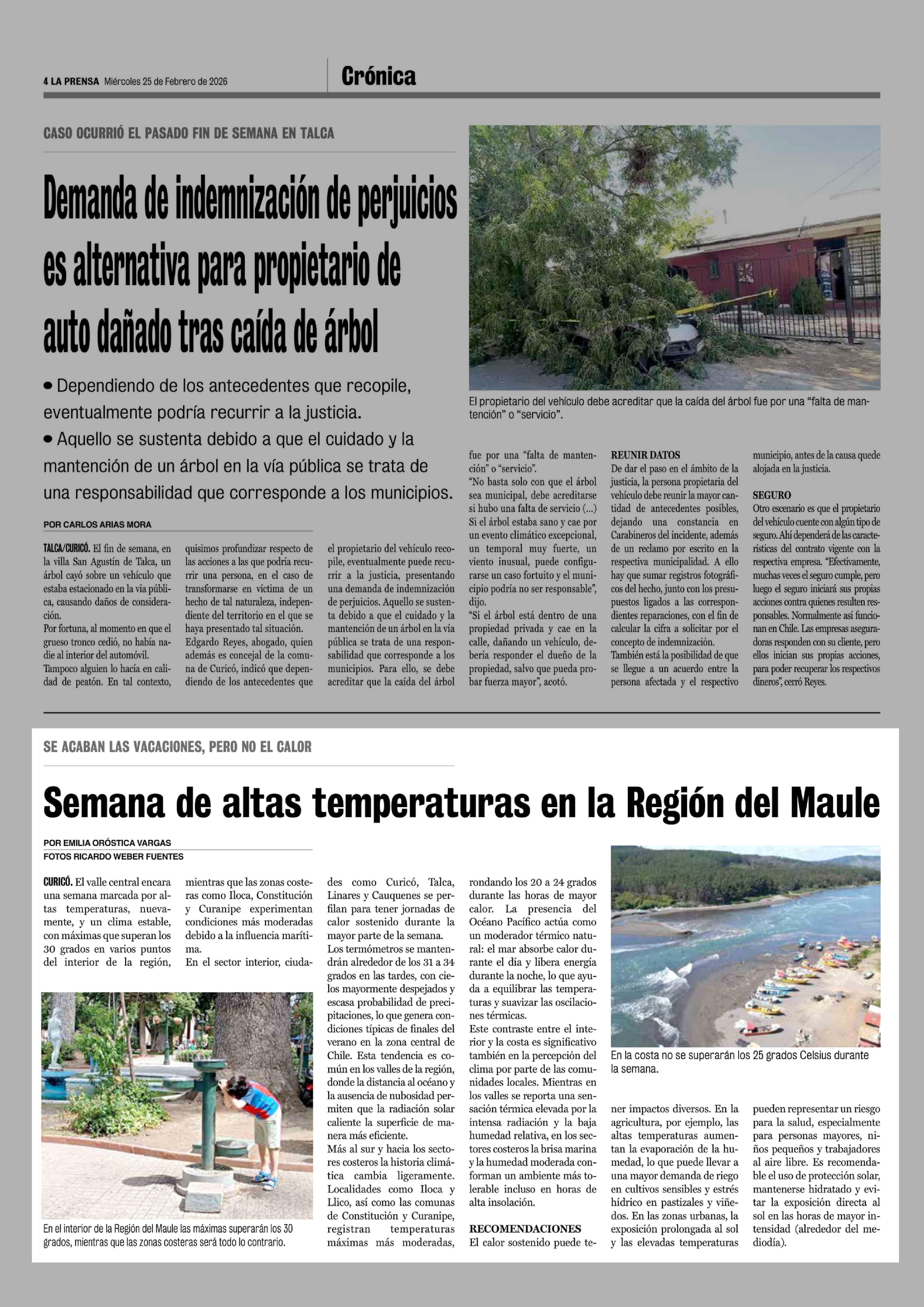 Semana de altas temperaturas en la Región del Maule 25-02-2026 La Prensa de Curicó |