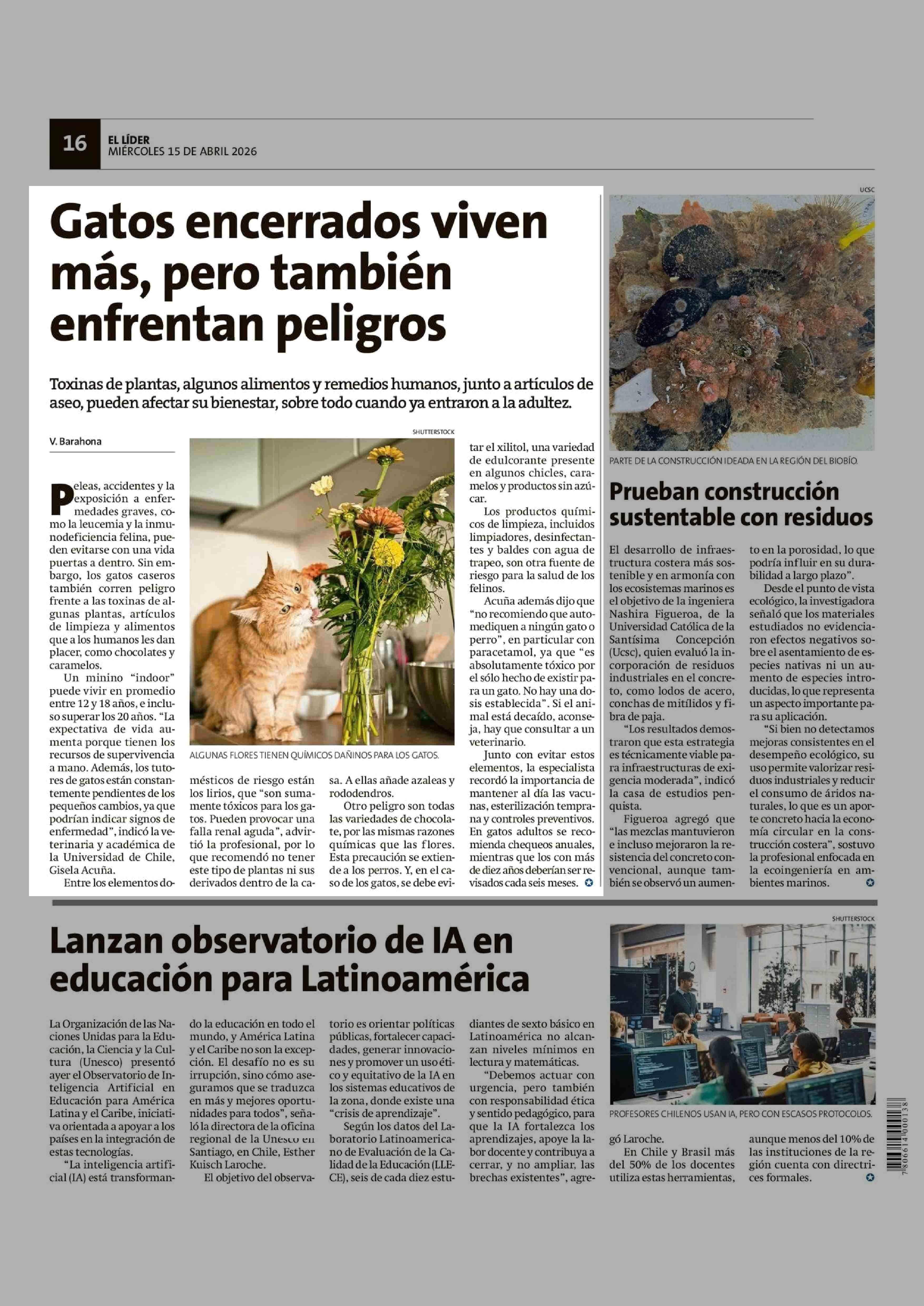 Gatos encerrados viven más, pero también enfrentan ¡gros 15-04-2026 El Líder |