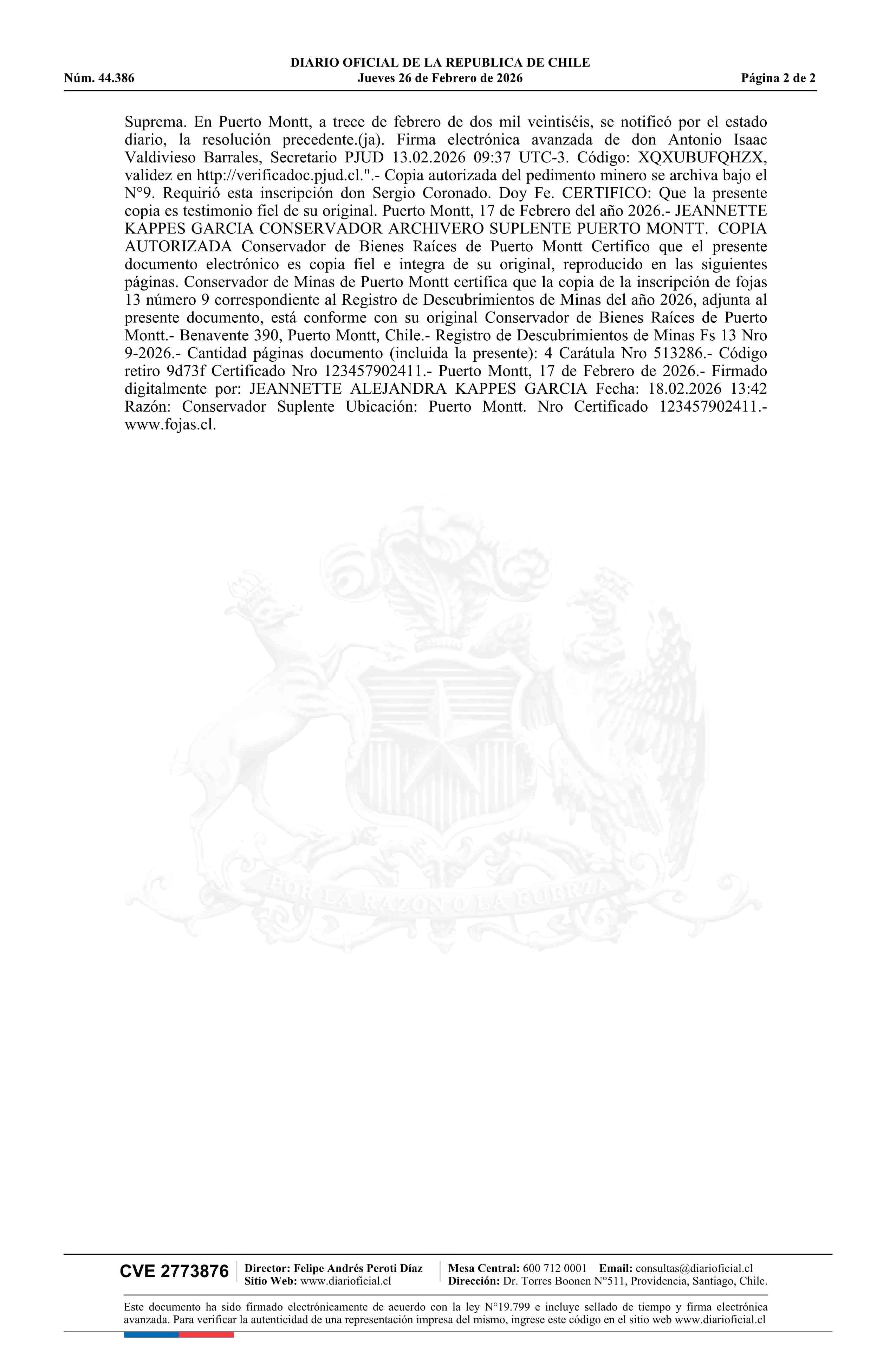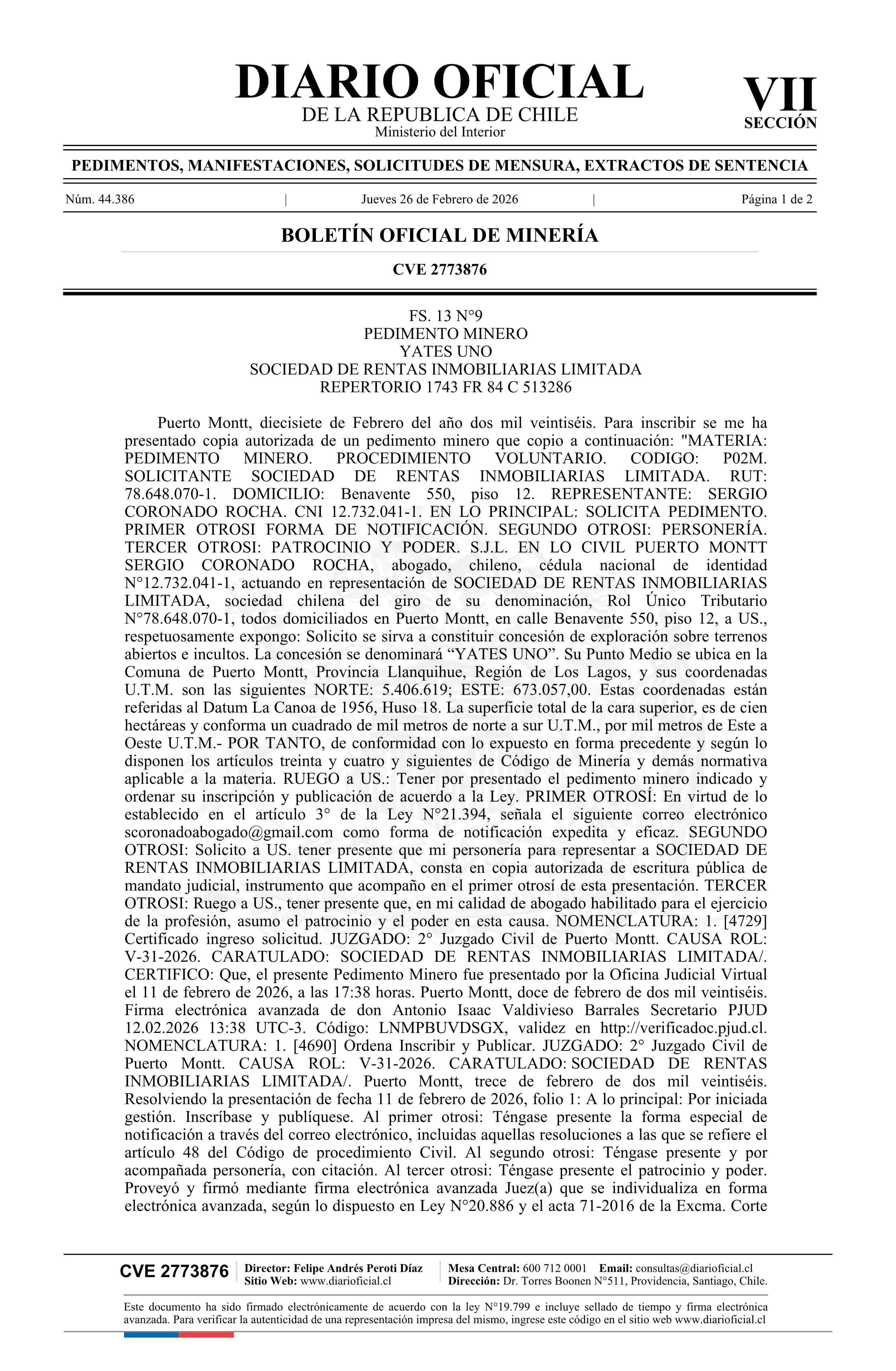26-02-2026 DIARIO OFICIAL CHILE - BOLETÍN OFICIAL DE MINERÍA