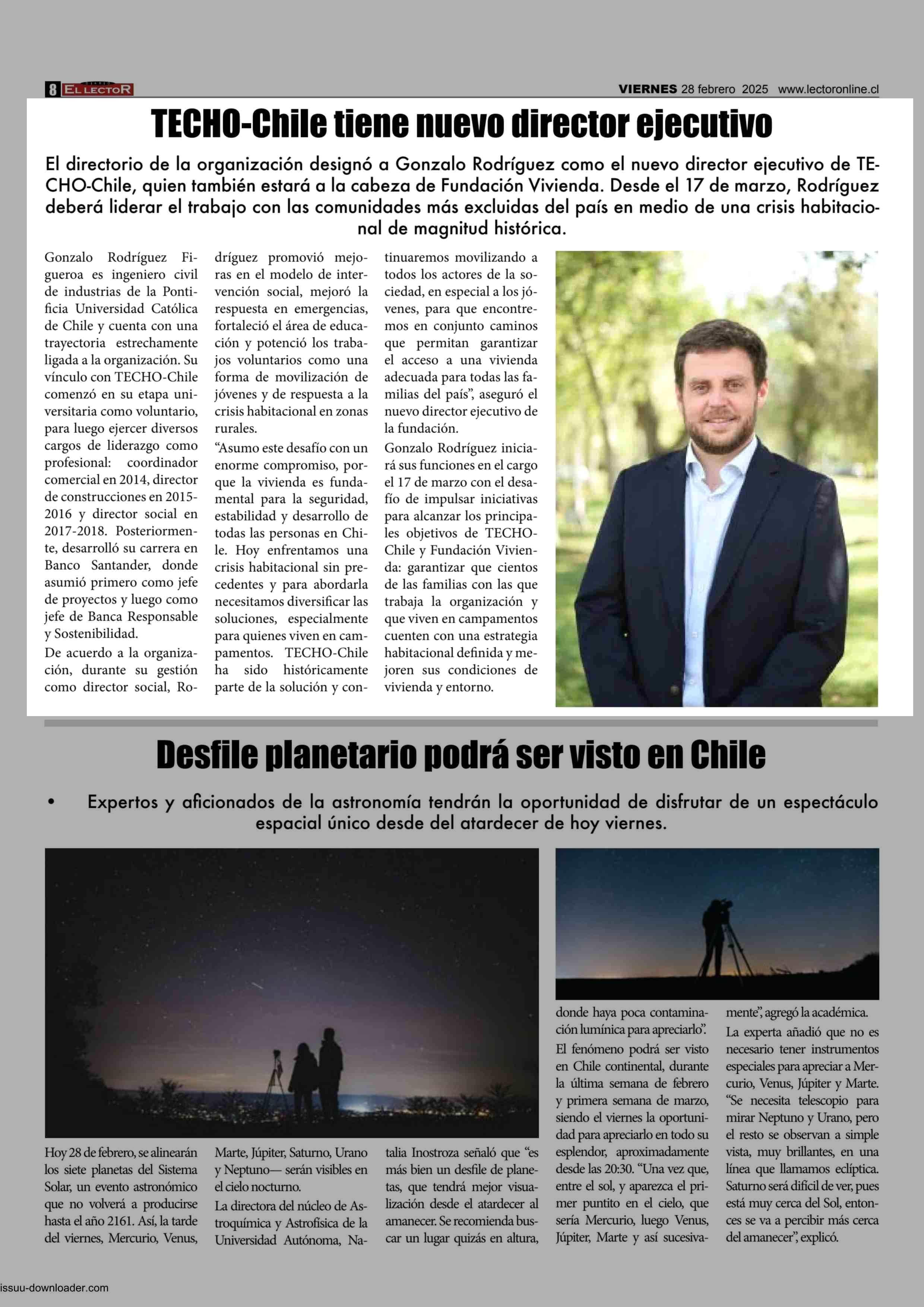 TECHO-Chile tiene nuevo director ejecutivo 28-02-2025 El Lector |
