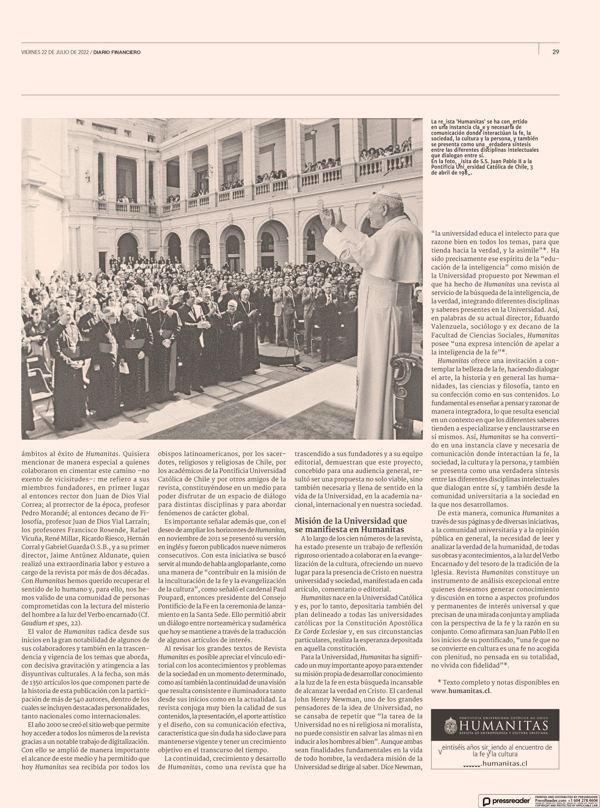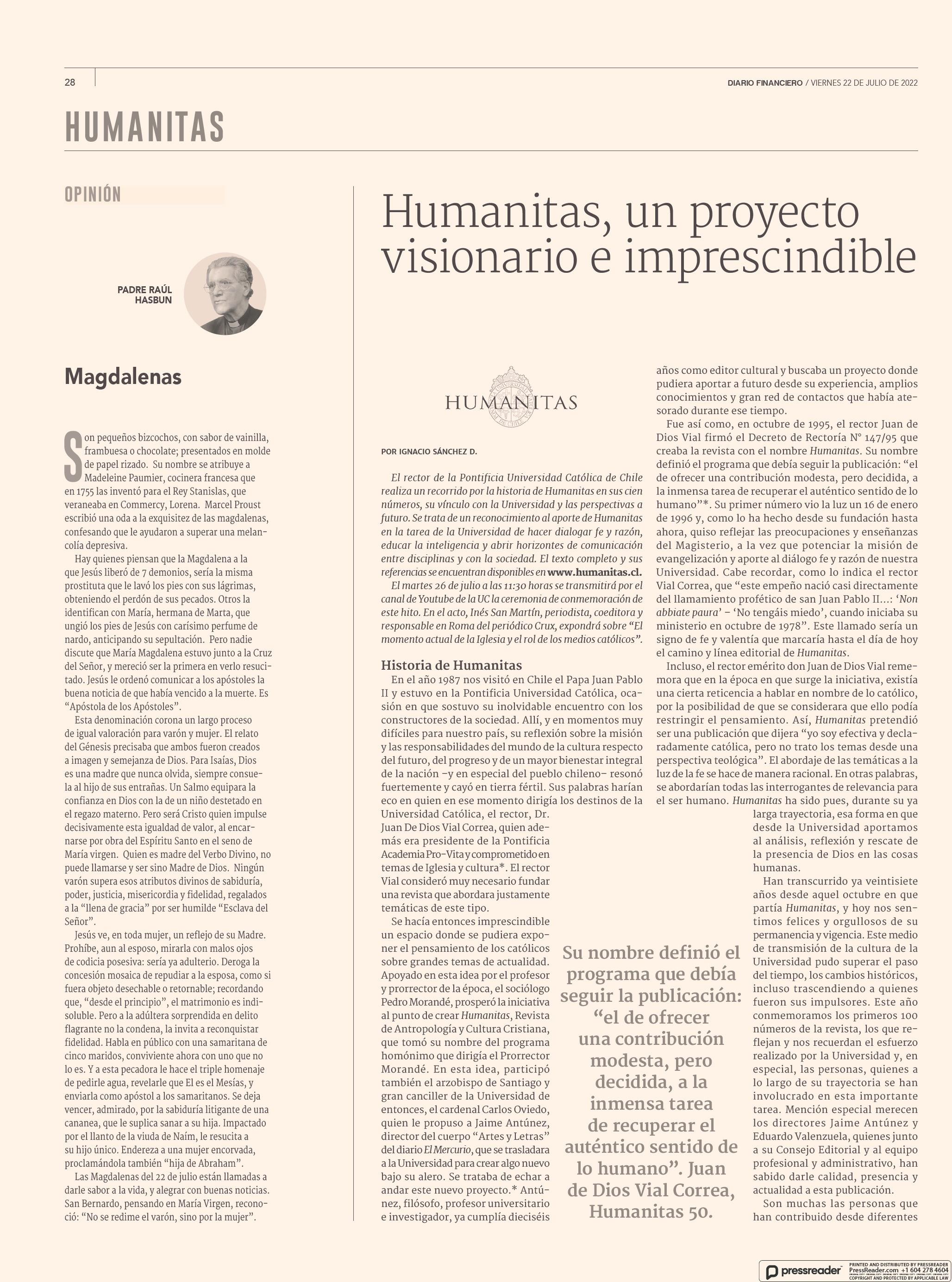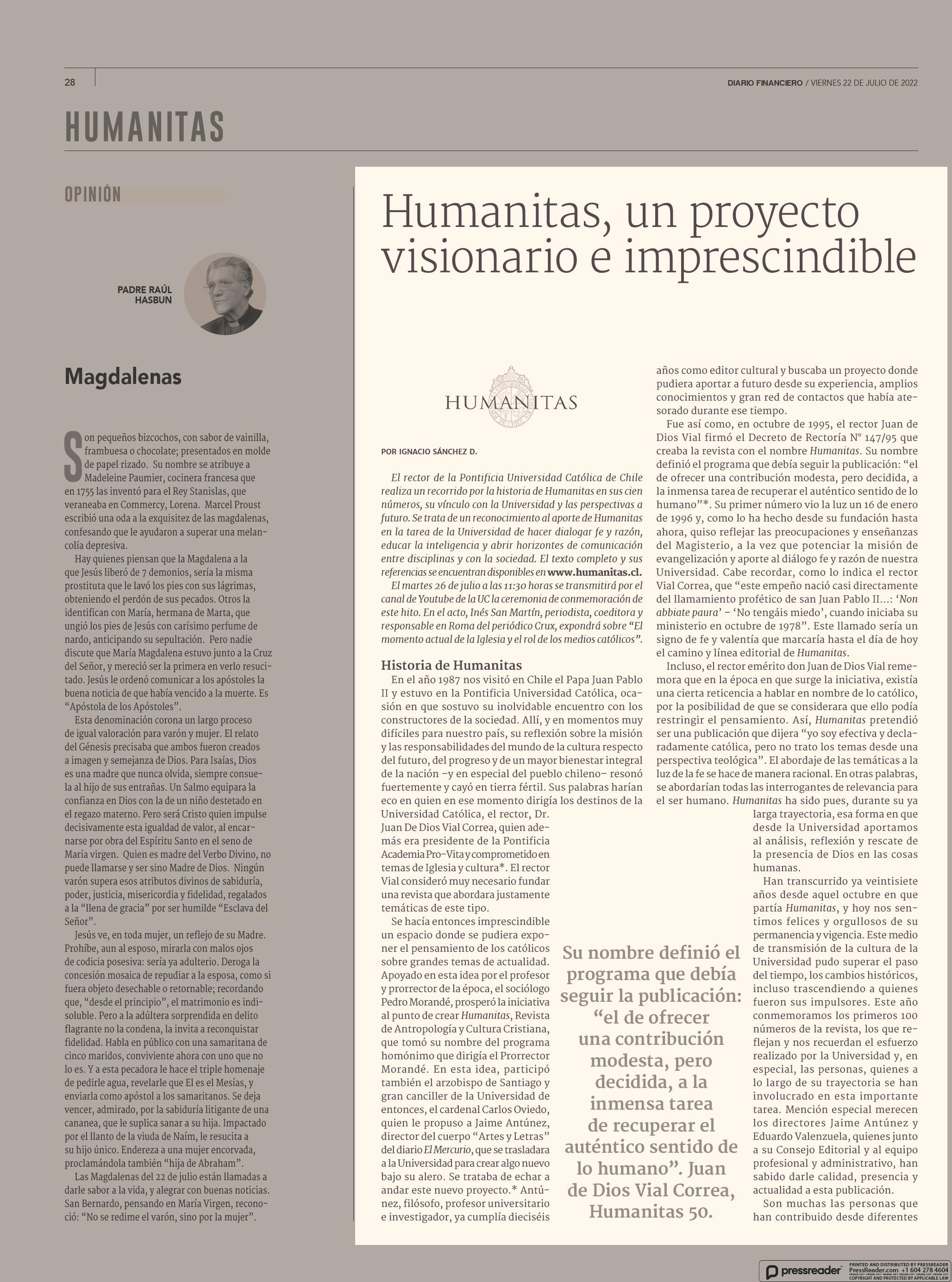 Humanitas, un proyecto visionario e imprescindible 22-07-2022 Diario Financiero |