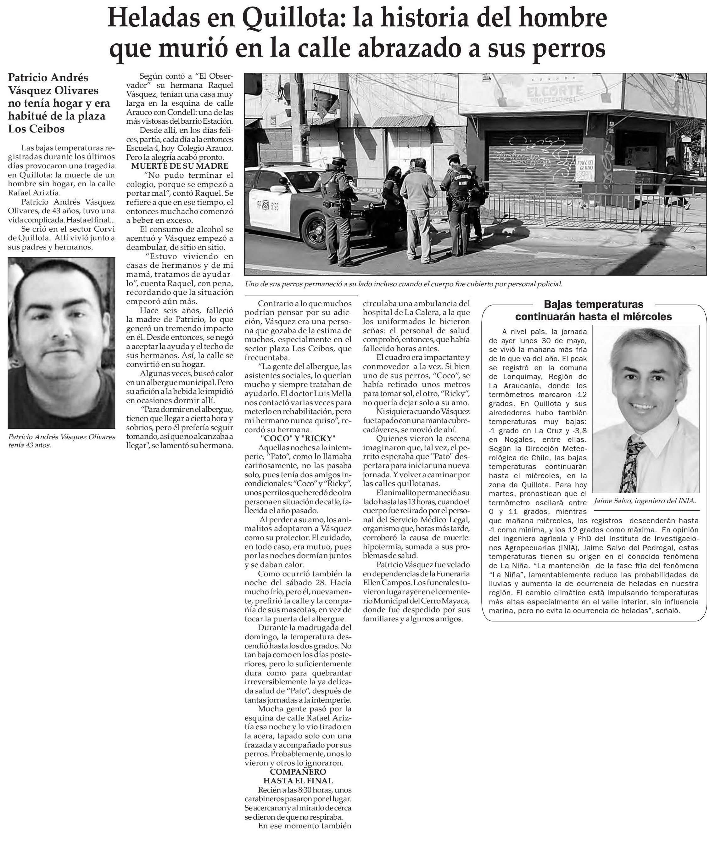 | Título: | Heladas en Quillota: la historia del hombre que murió en la calle abrazado a sus perros |