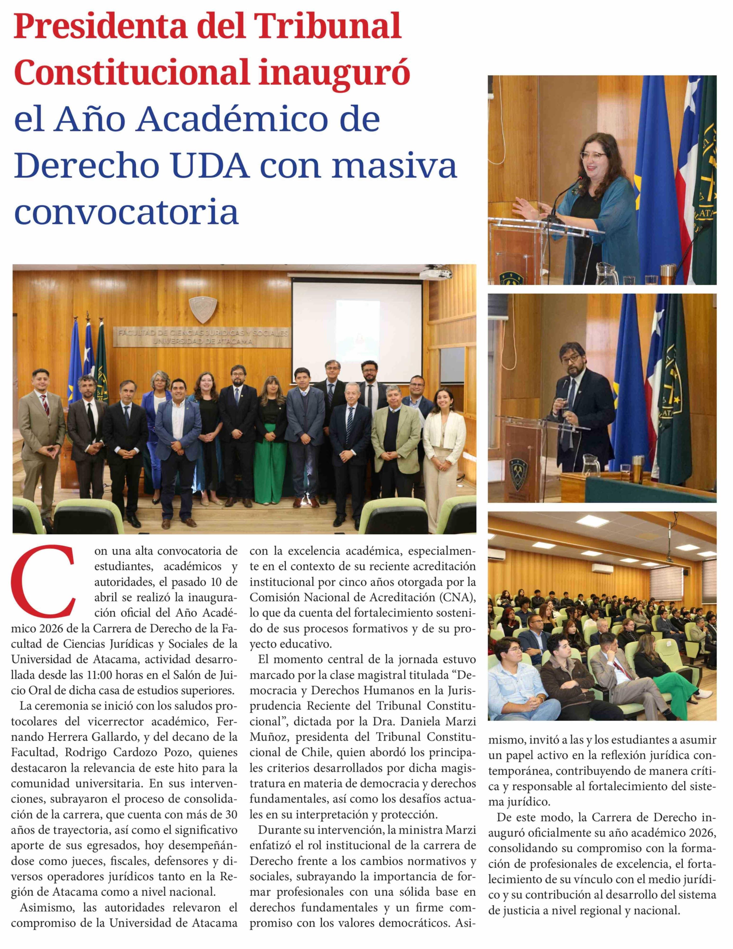 Presidenta del Tribunal Constitucional inauguró el Año Académico de Derecho UDA con masiva convocatoria 16-04-2026 Diario Chañarcillo |
