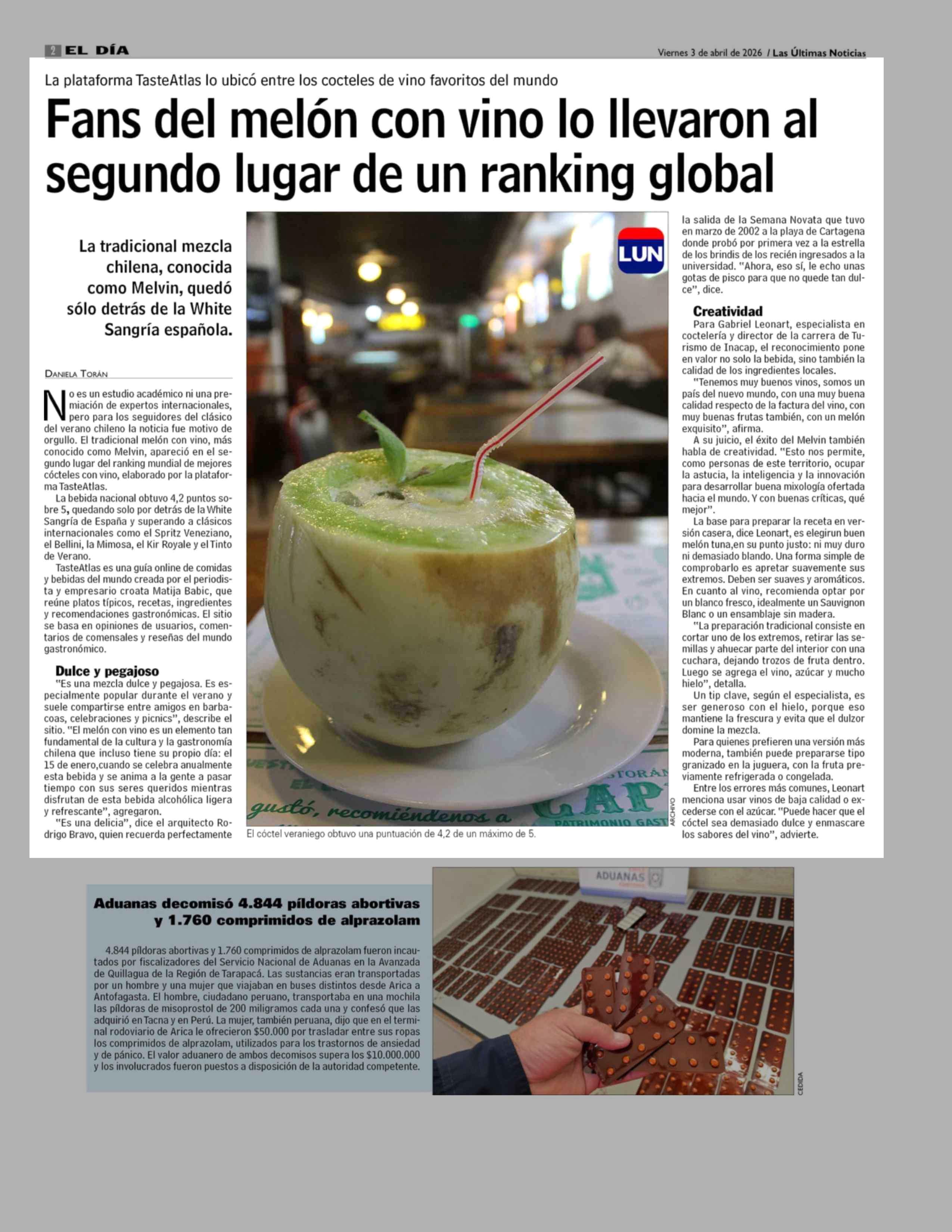 Título: Fans del melón con vino lo llevaron al segundo lugar de un ranking global