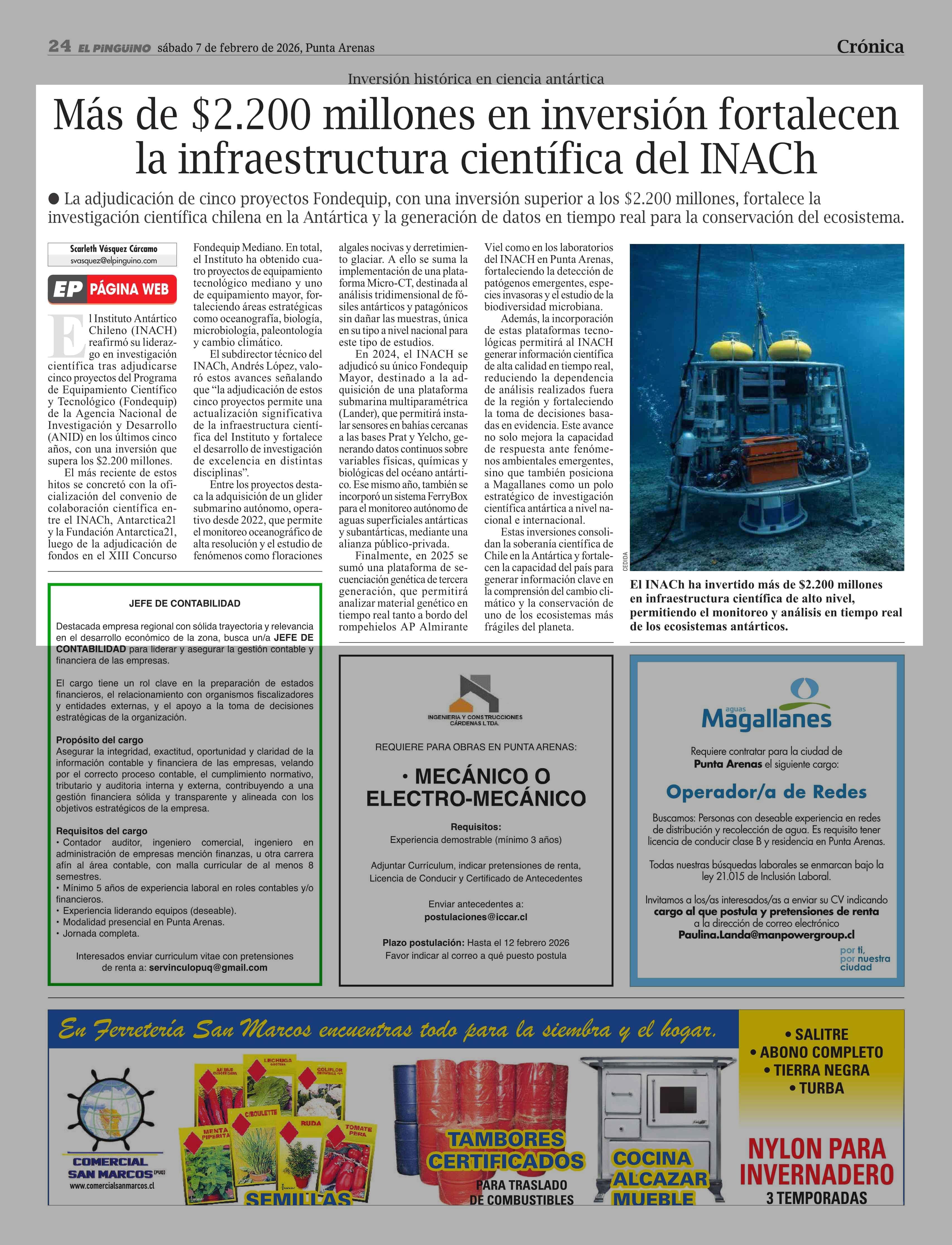 Más de $2.200 millones en inversión fortalecen la infraestructura científica del INACh 07-02-2026 El Pingüino |