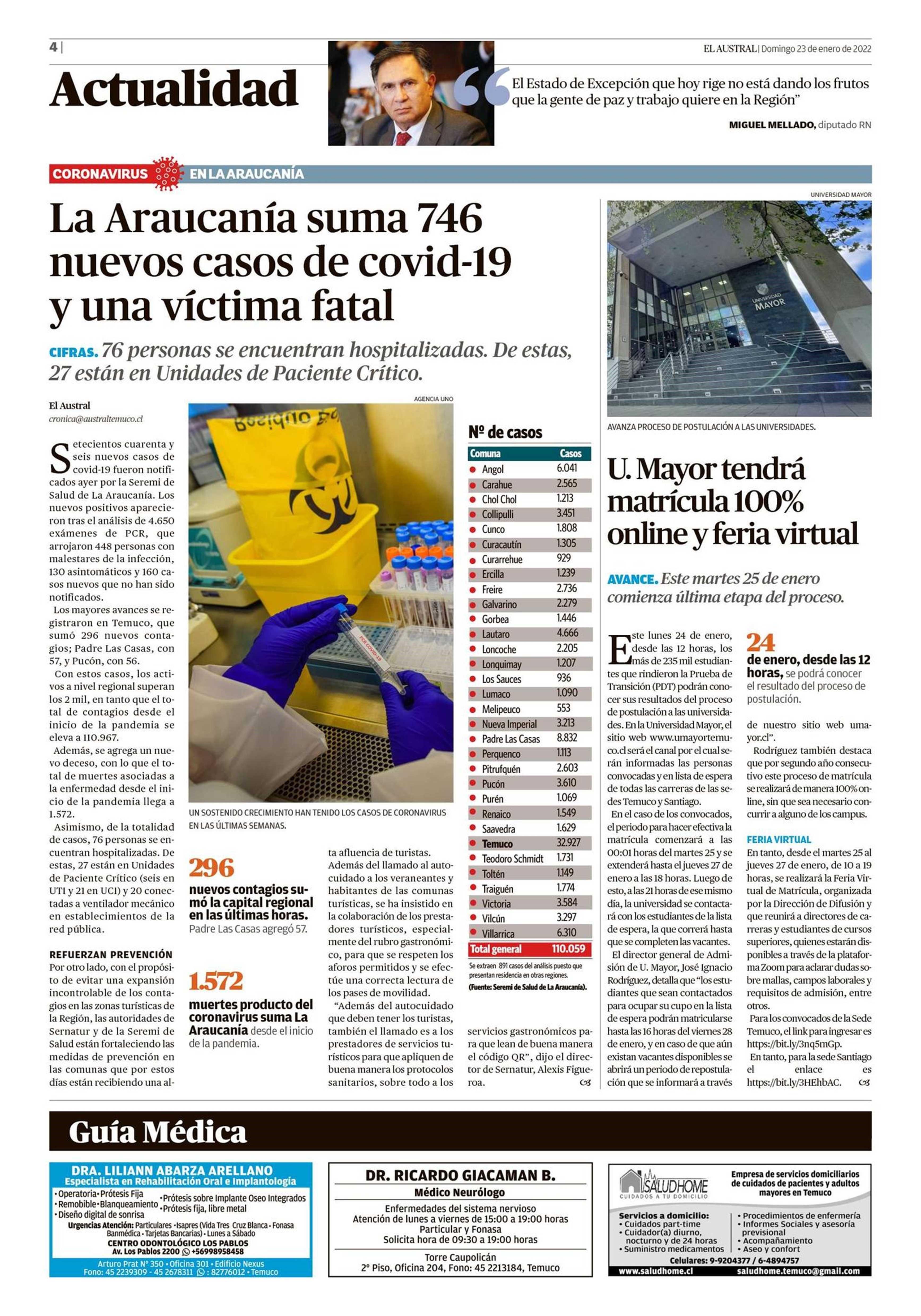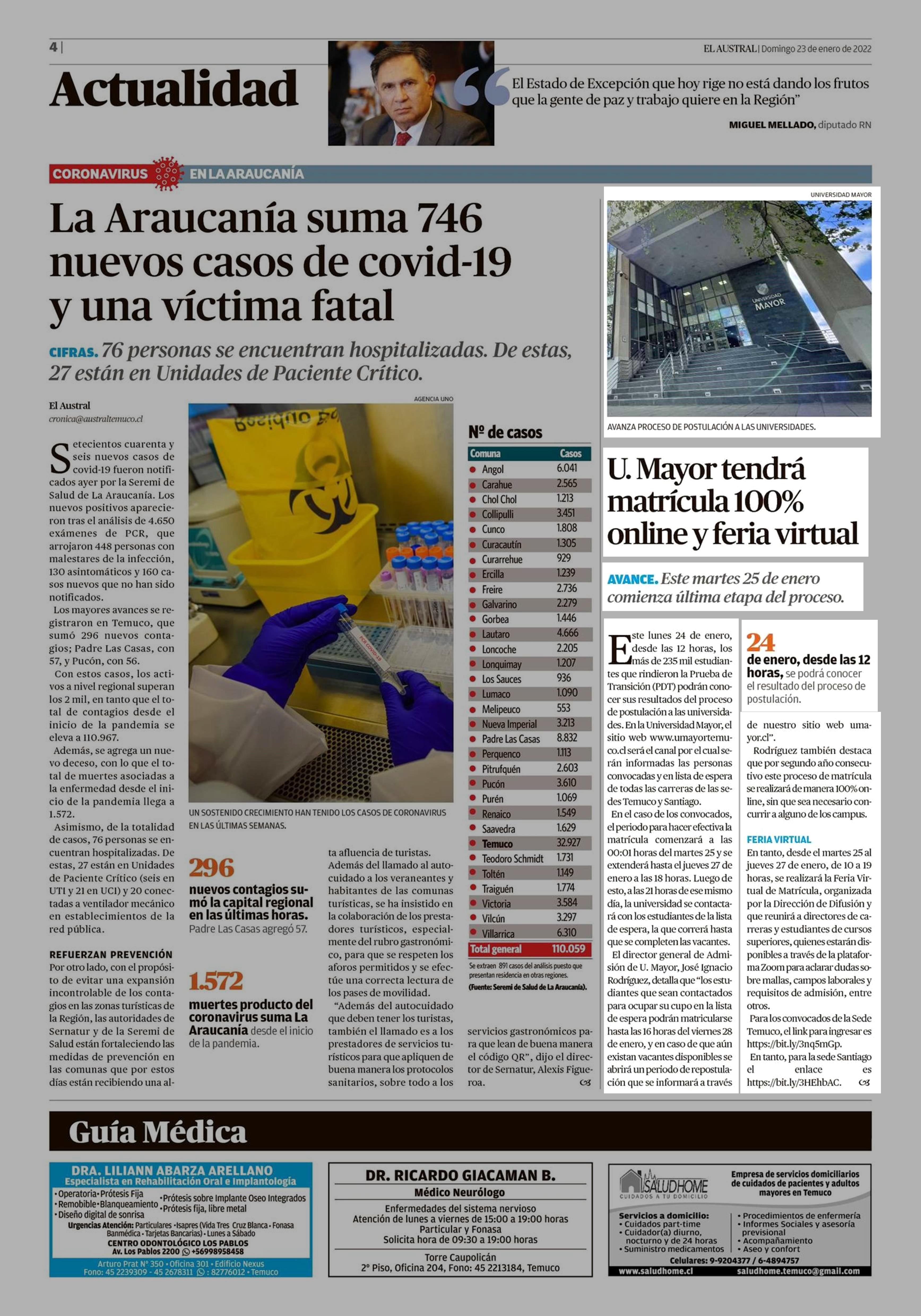 U. Mayor tendrá matrícula 100% online y feria virtual 23-01-2022 El Austral de la Araucanía |