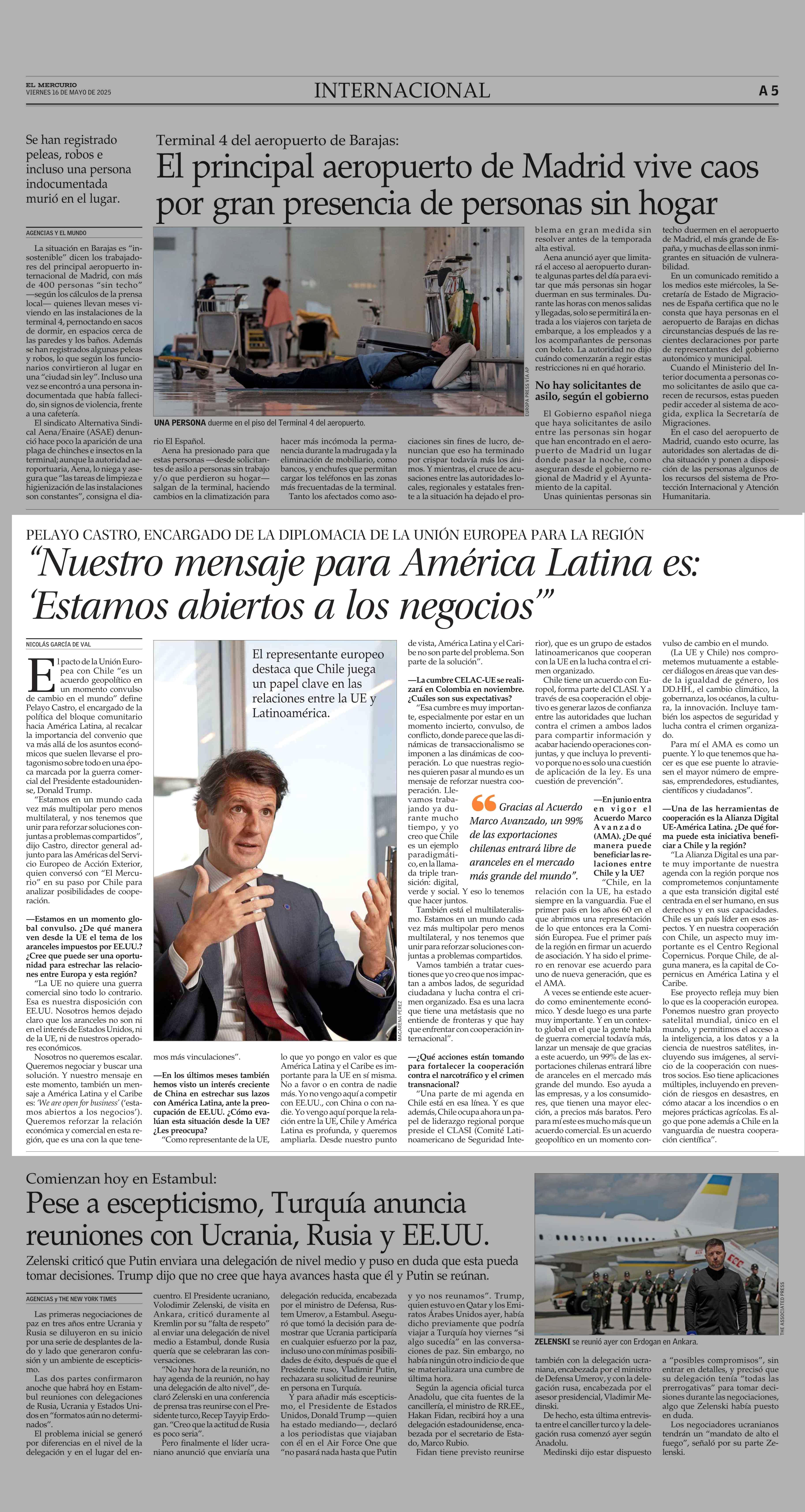 "Nuestro mensaje para América Latina es: `Estamos abiertos a los negocios'" 16-05-2025 El Mercurio |