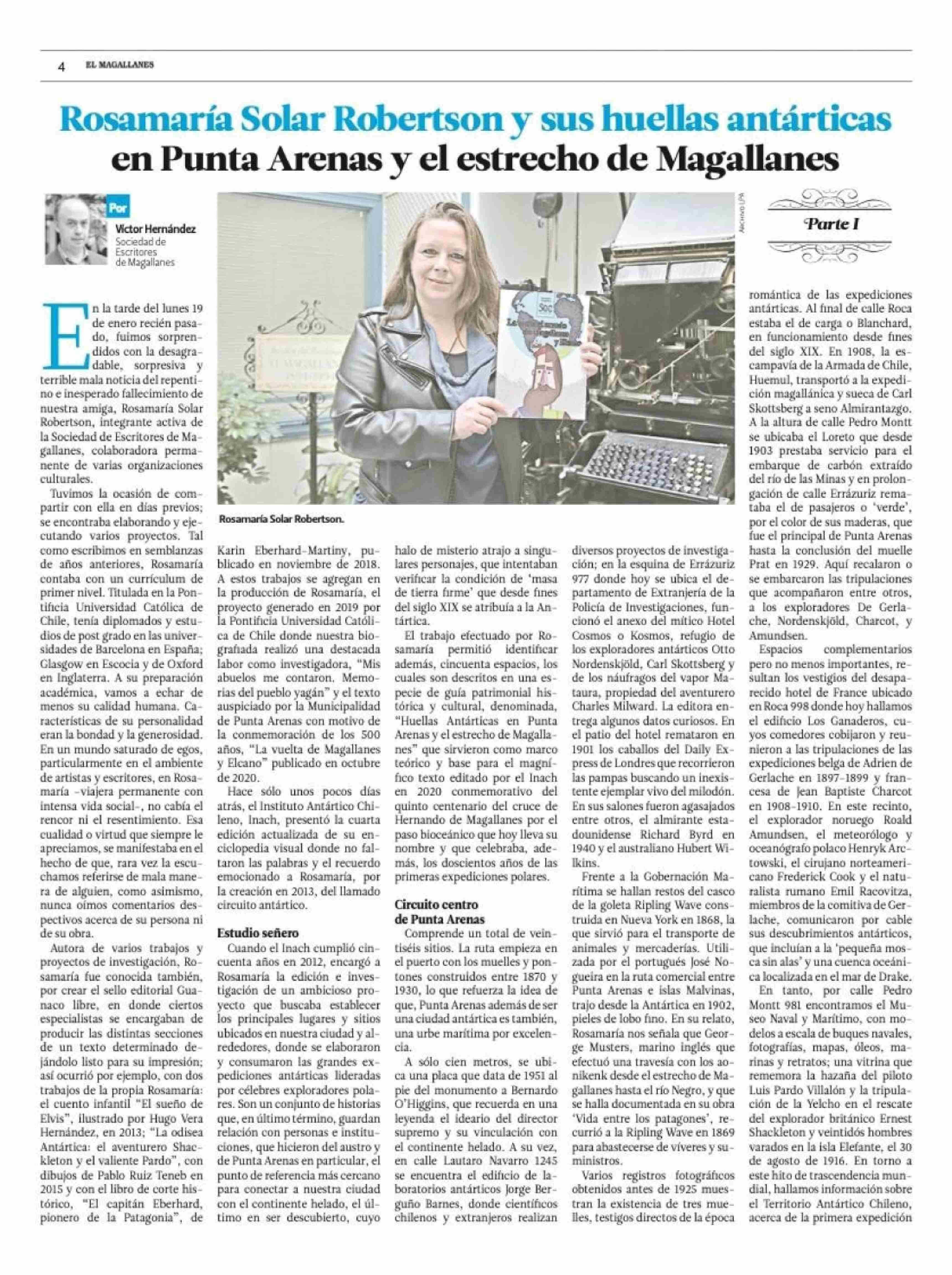 Título: Rosamaría Solar Robertson y sus huellas antárticas en Punta Arenas y el estrecho de Magallanes