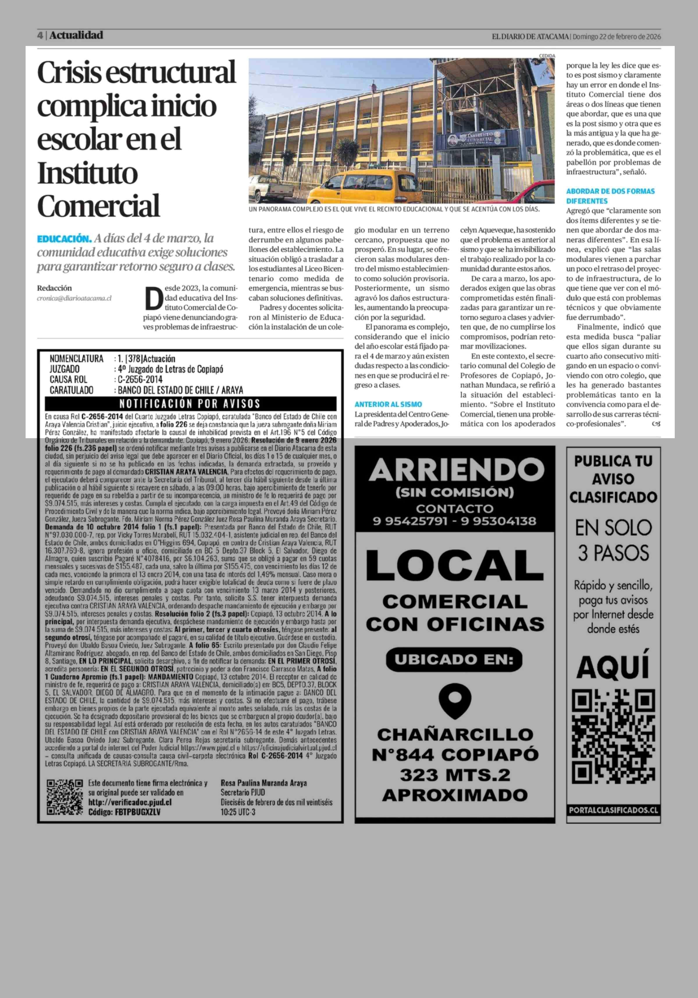 Fecha: 22-02-2026 Sector: Noticia general Región: Región de Atacama