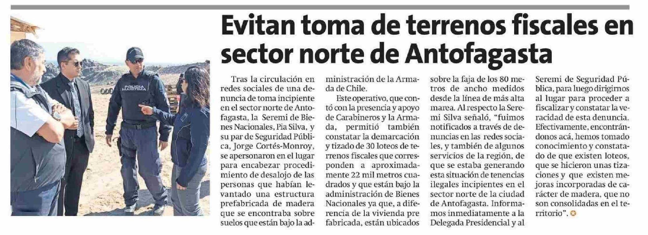 Evitan toma de terrenos fiscales en sector norte de Antofagasta 09-06-2025 La Estrella de Antofagasta |