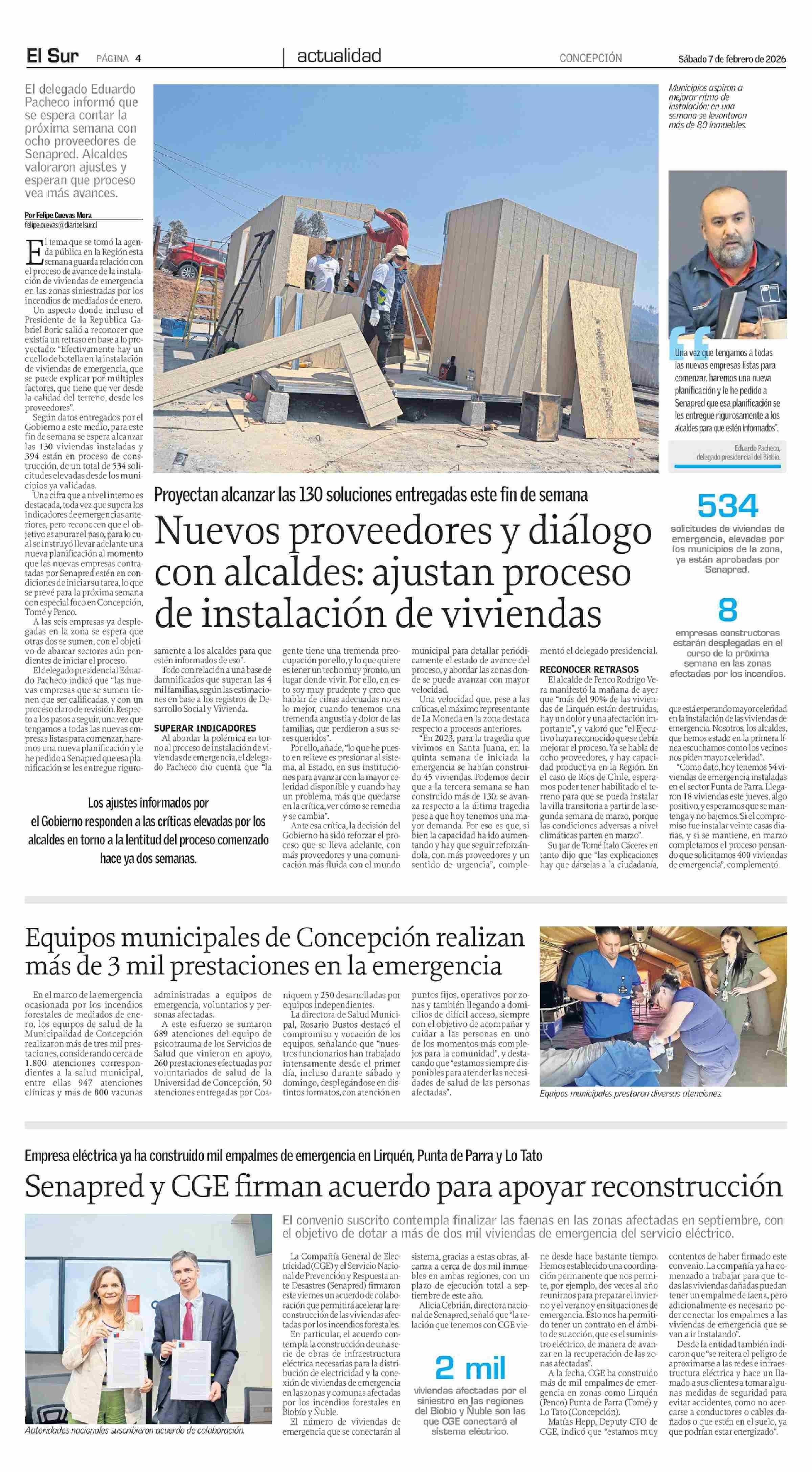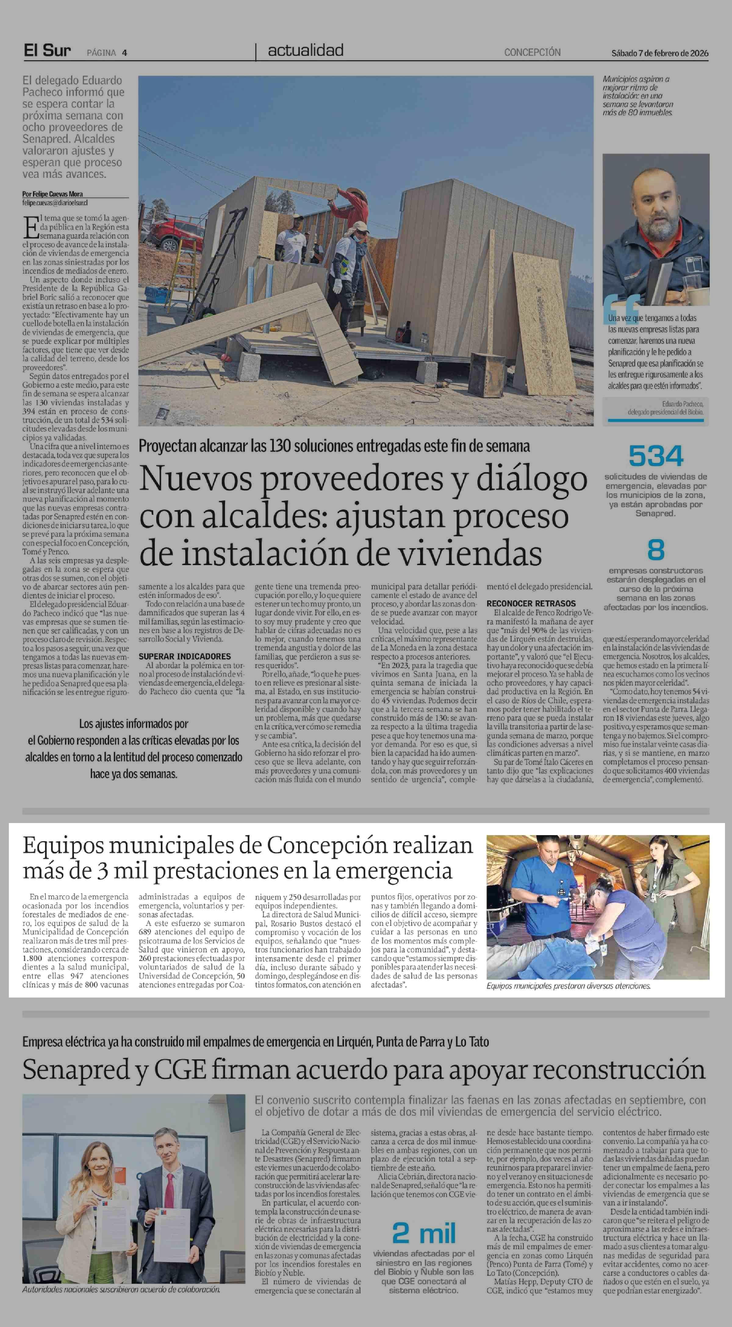 Equipos municipales de Concepción realizan más de 3 mil prestaciones en la emergencia 07-02-2026 El Sur |