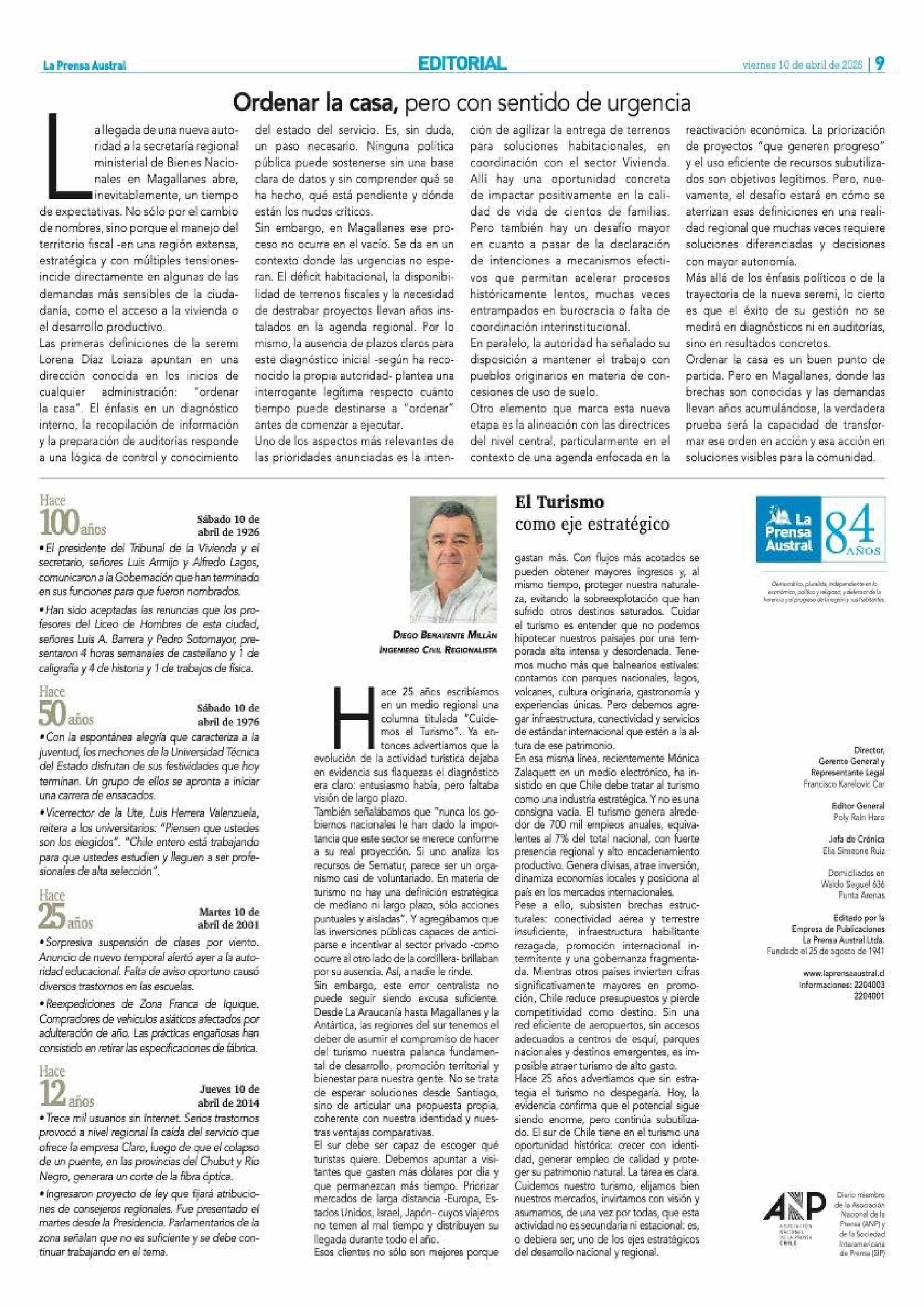 Fecha: 10-04-2026 Sector: Editorial Región: Región de Magallanes y de la Antártica Chilena