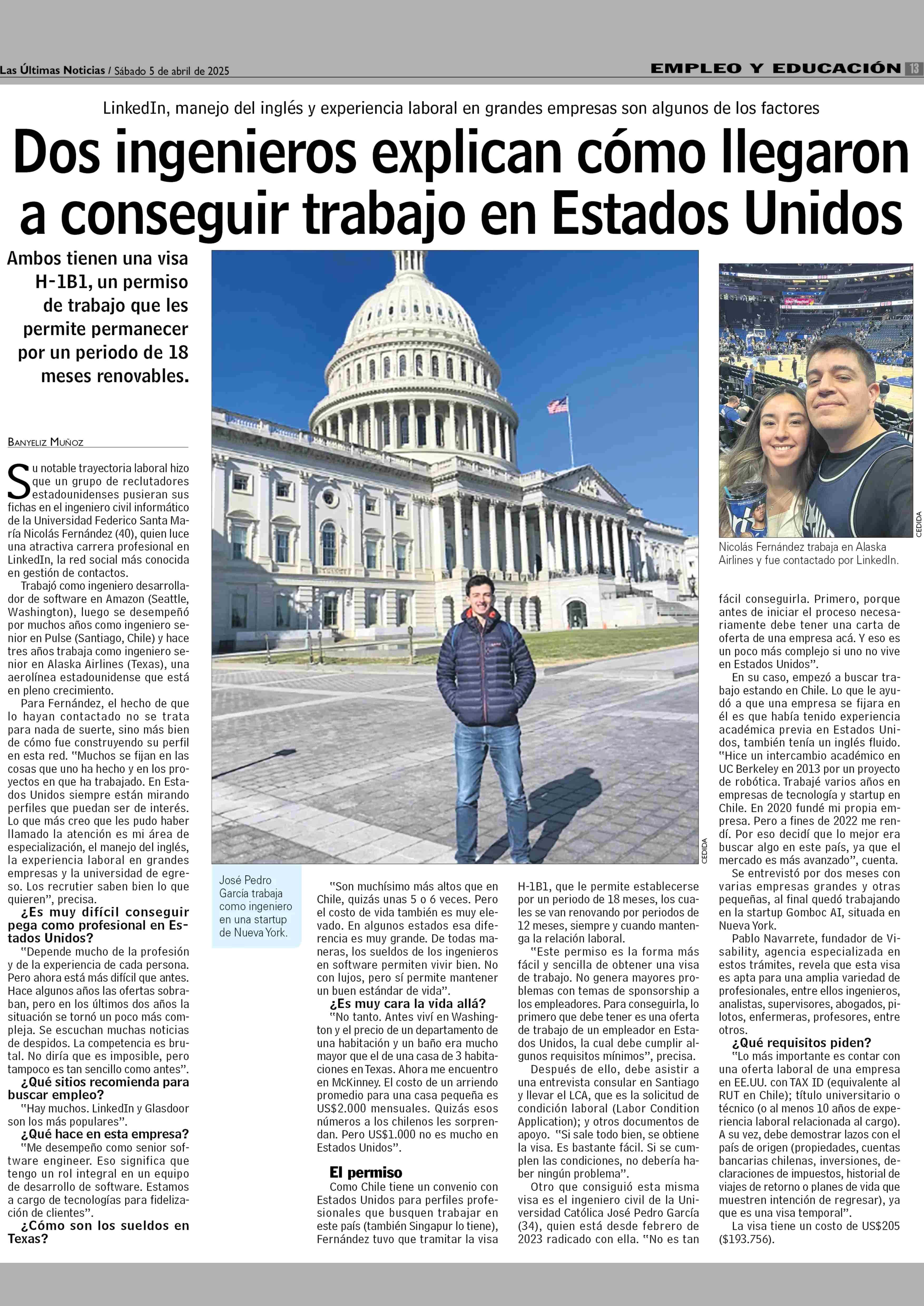 Dos ingenieros explican cómo llegaron a conseguir trabajo en Estados Unidos 05-04-2025 Las Últimas Noticias |