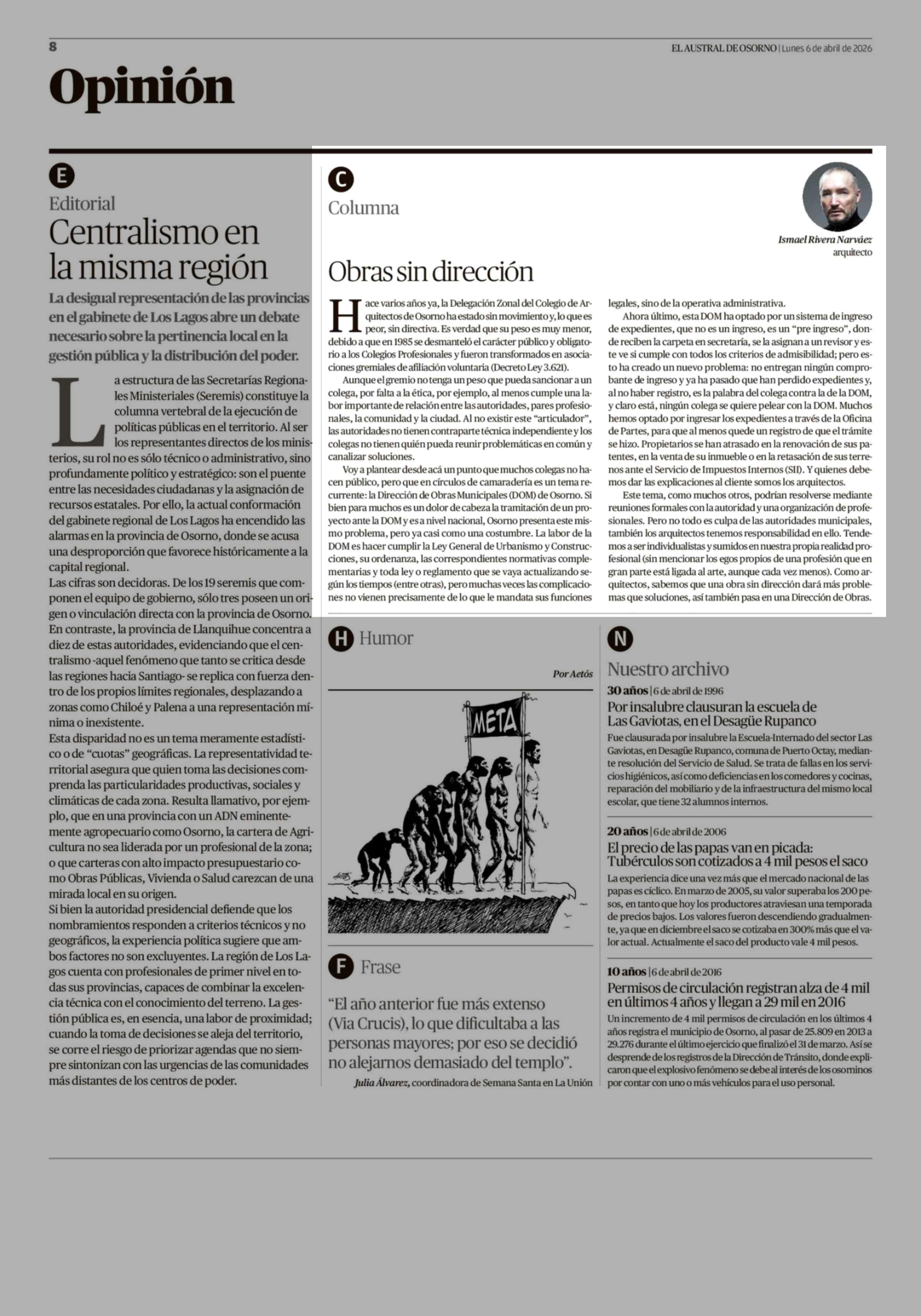 Fecha: 06-04-2026 Sector: Columnas de Opinión Región: Región de Los Lagos