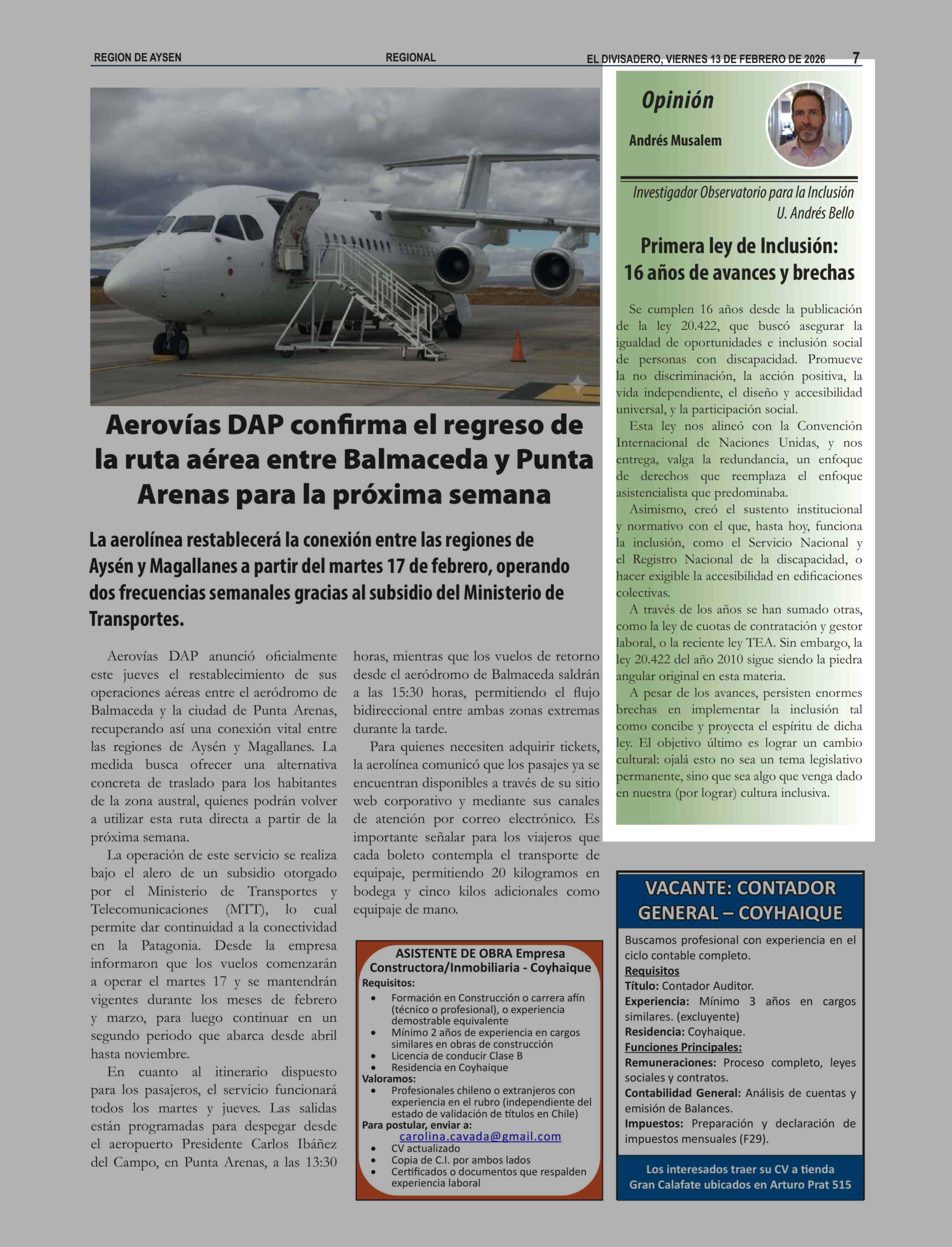 Columnas de Opinión: Primera ley de Inclusión: 16 años de avances y brechas 13-02-2026 El Divisadero |