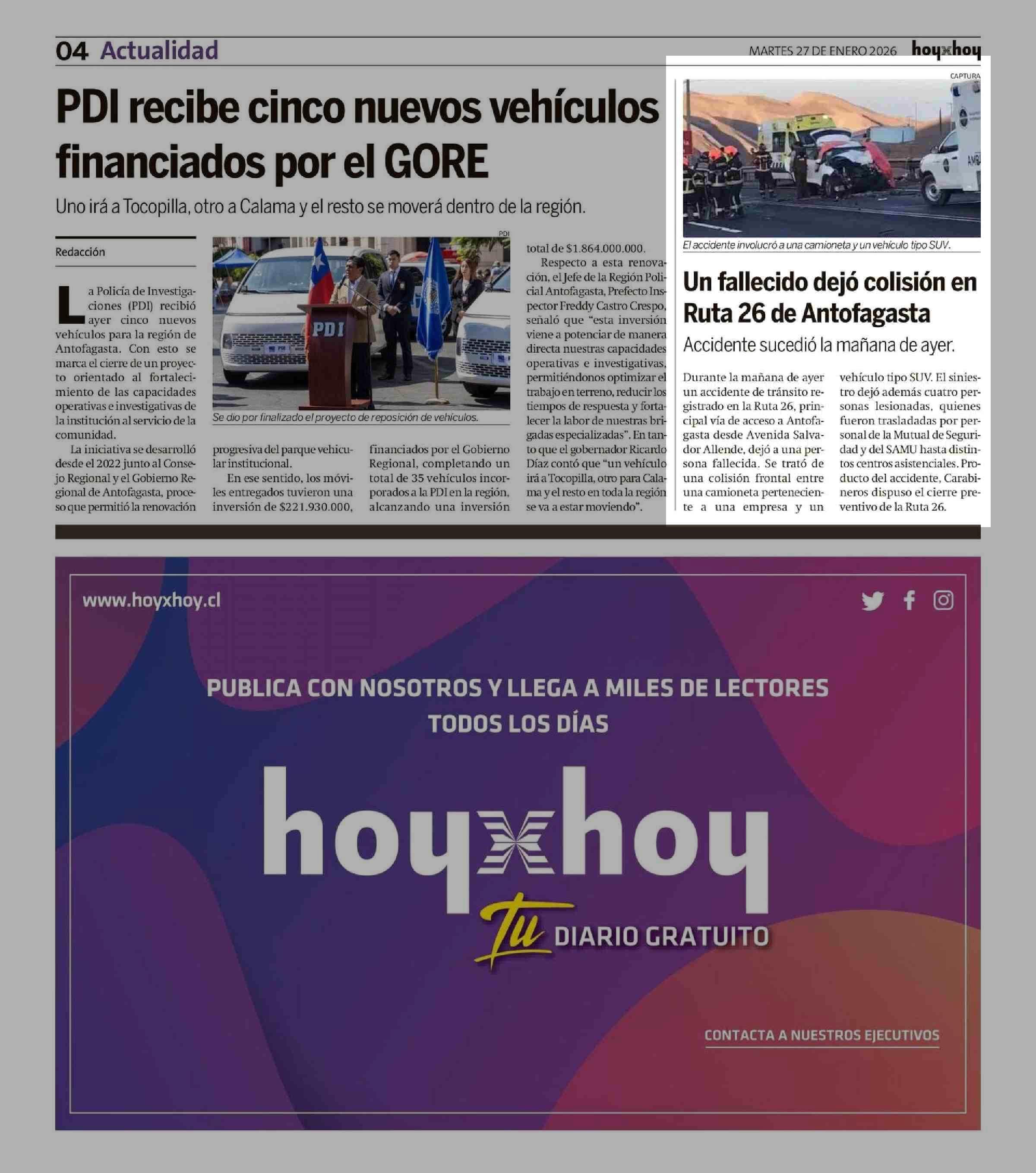 Fuente: Hoy x Hoy Antofagasta (Hoy x Hoy Antofagasta) Página(s): 4
