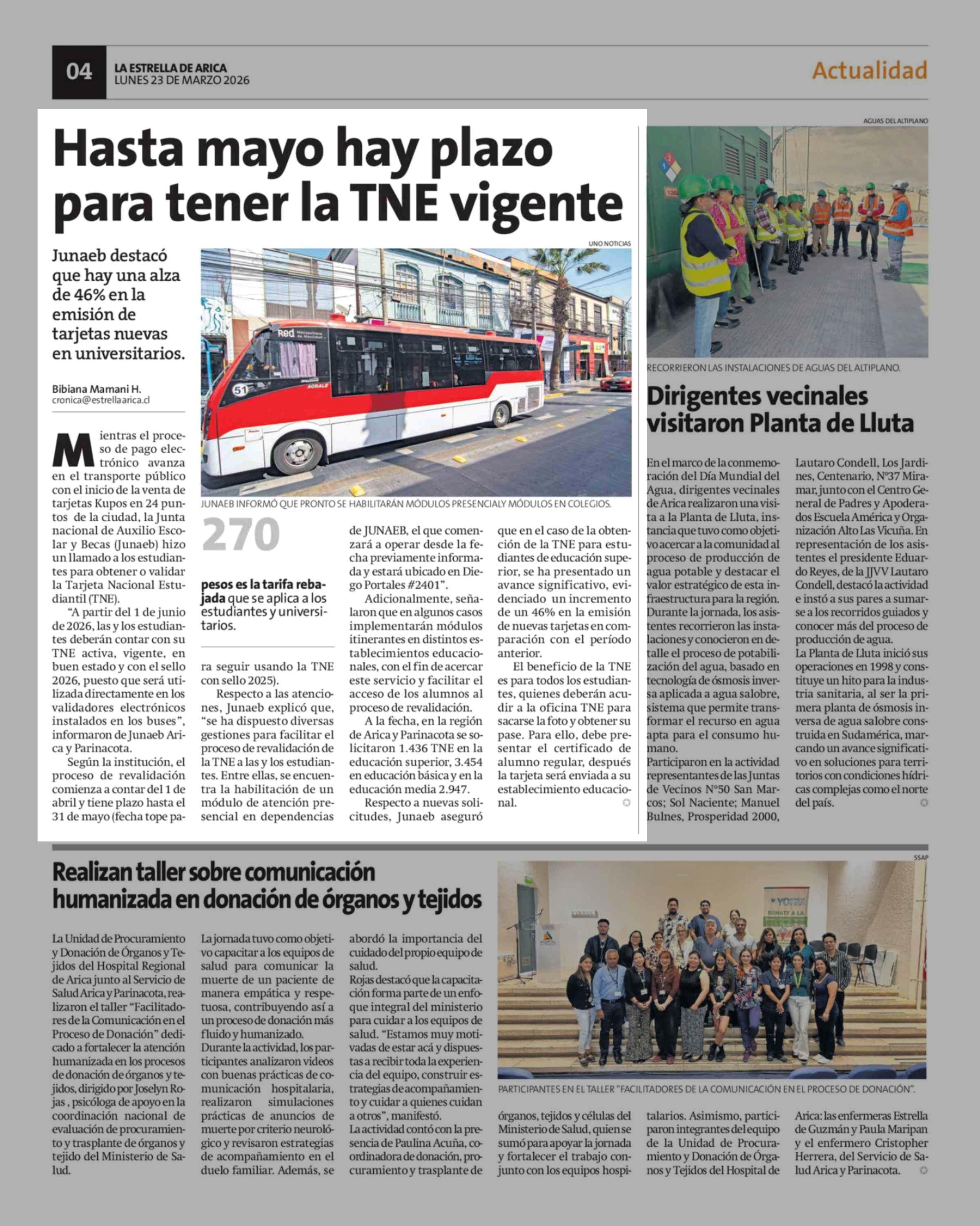 Fecha: 23-03-2026 Sector: Noticia general Región: Región de Arica y Parinacota