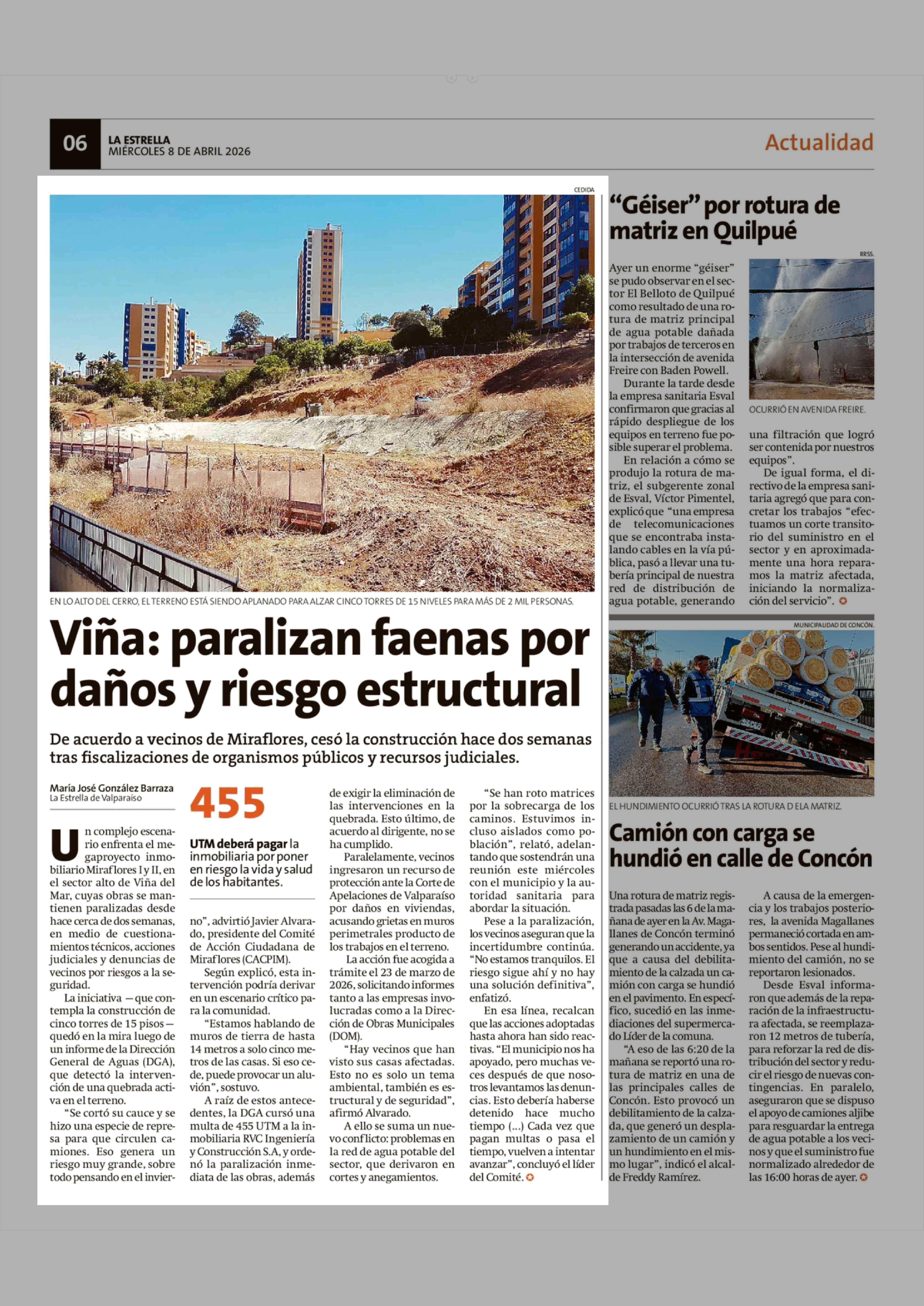 Viña: paralizan faenas por daños y riesgo estructural 08-04-2026 La Estrella de Valparaíso |