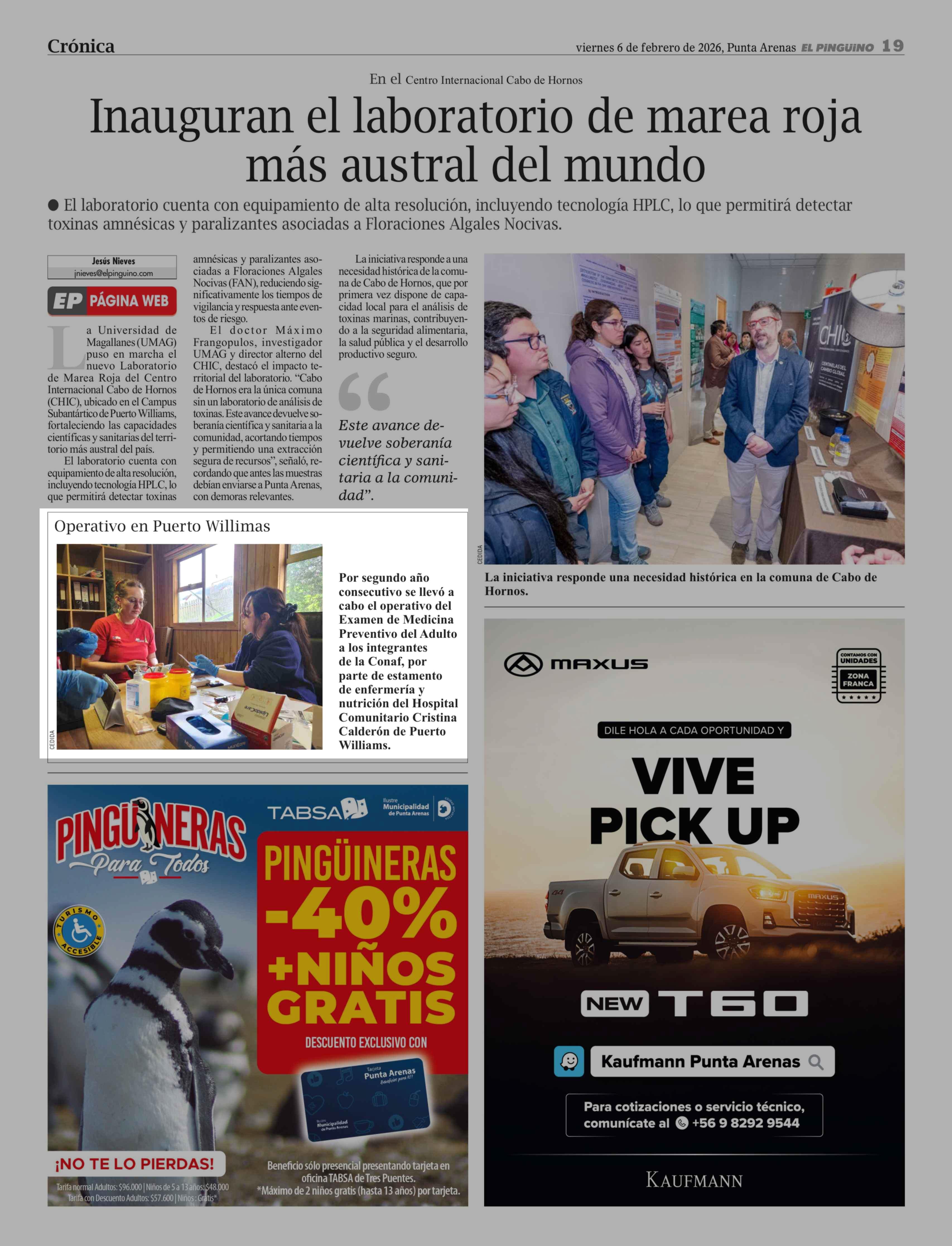 | Fecha: | 06-02-2026 | Sector: | Noticia general | Región: | Región de Magallanes y de la Antártica Chilena |