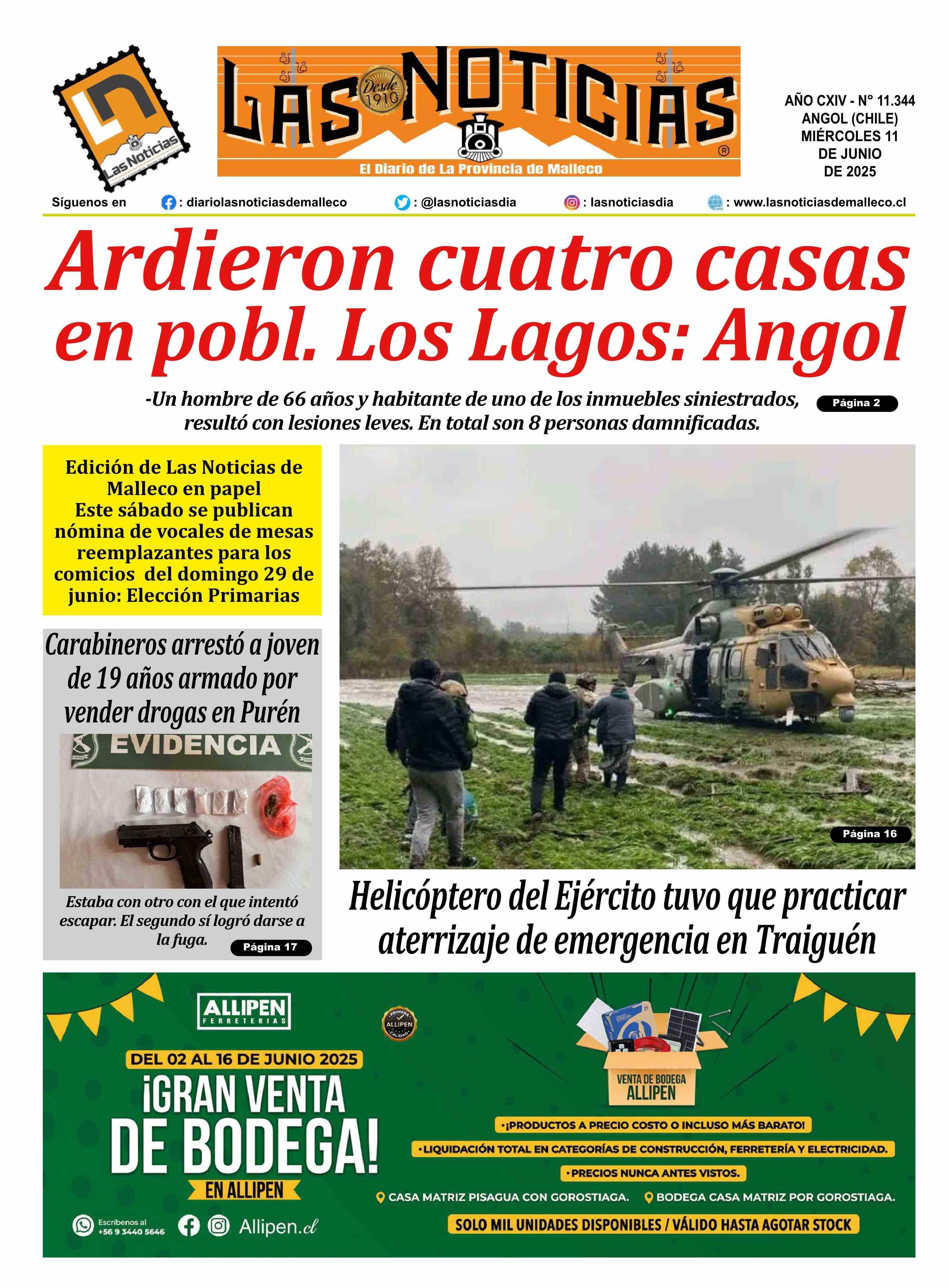 PORTADA LAS NOTICIAS DE MALLECO - CHILE 11-06-2025 Las Noticias |