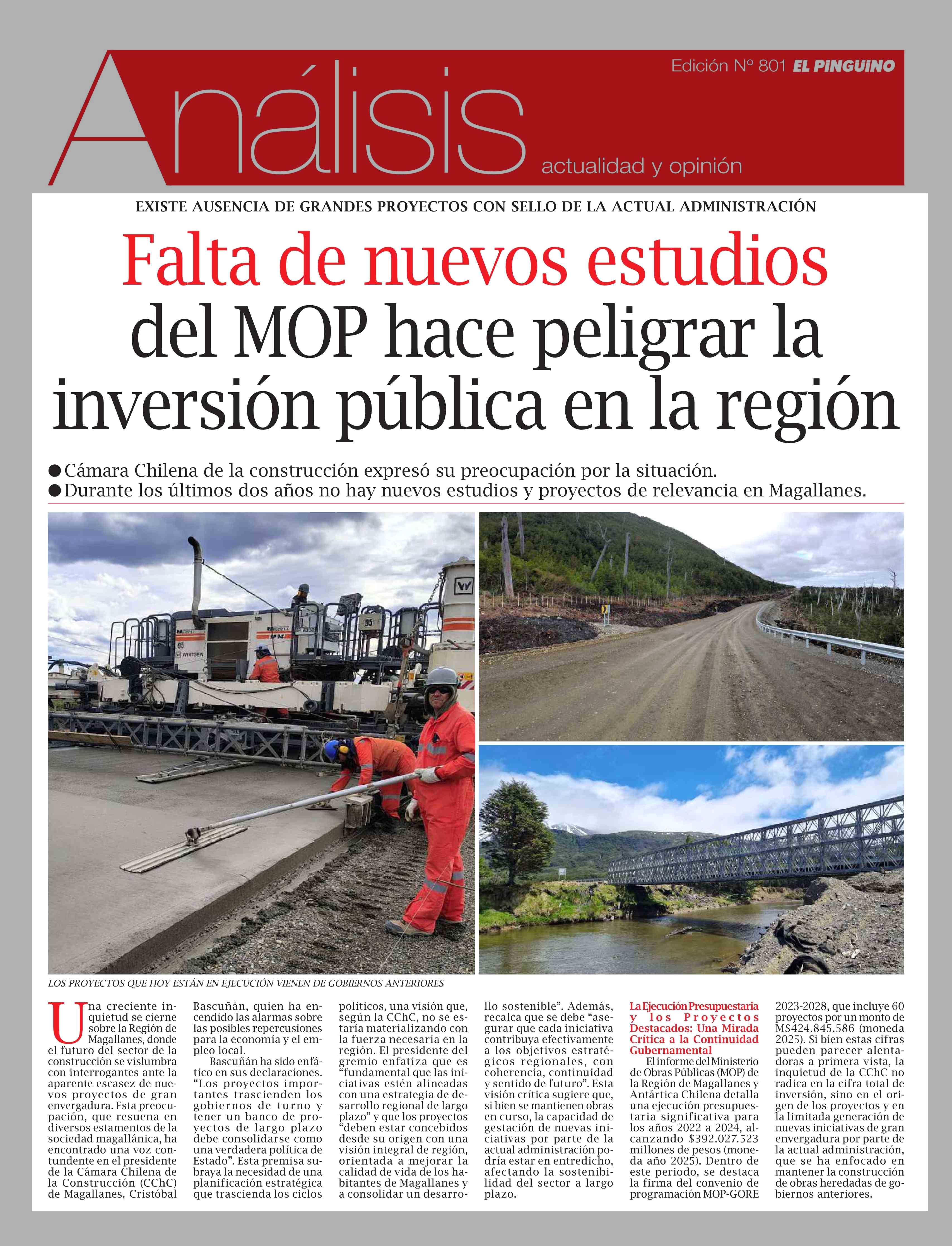 Falta de nuevos estudios del MOP hace peligrar la inversión pública en la región 08-06-2025 El Pingüino |