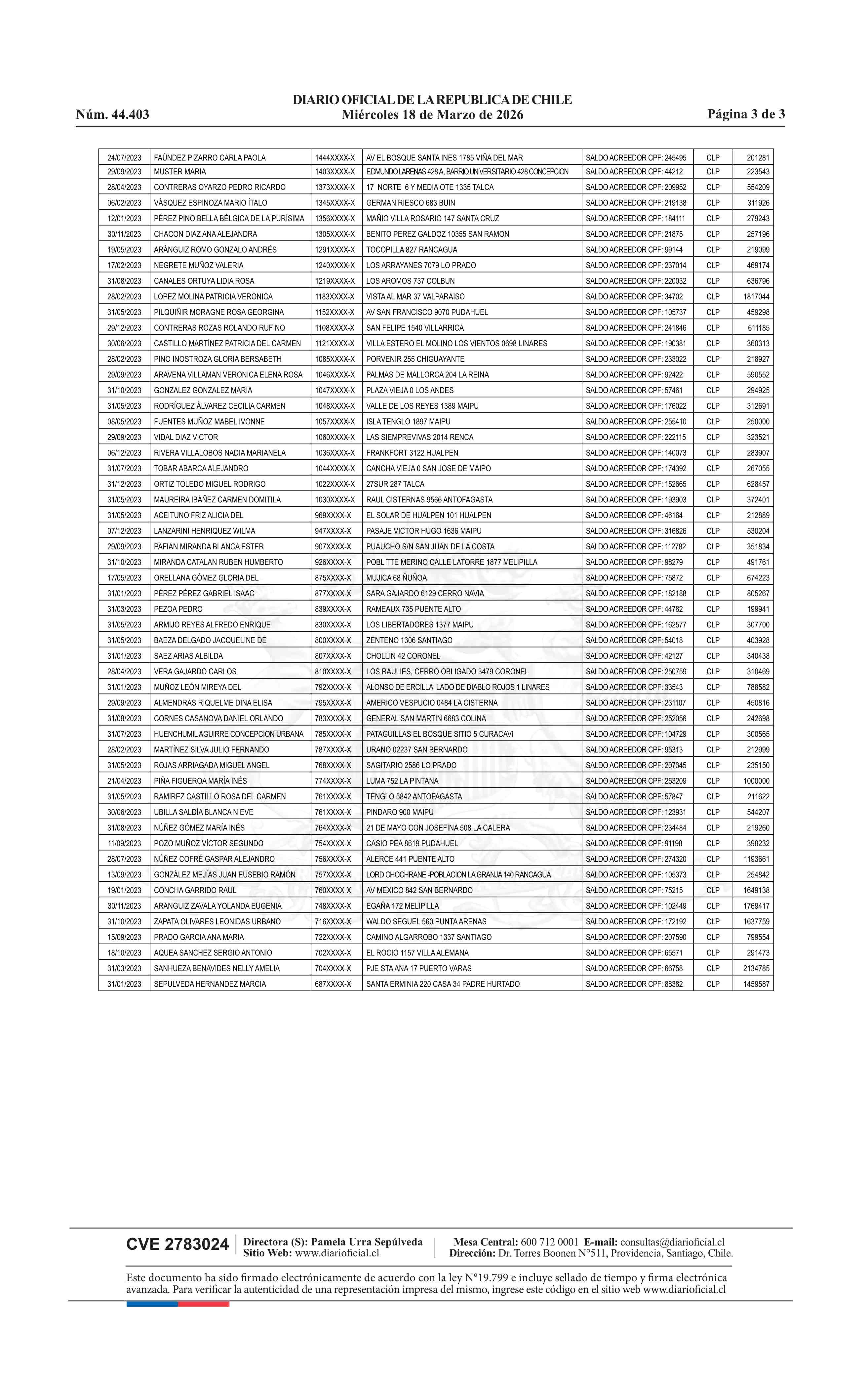 | Fuente: | Diario Oficial Edición Electrónica (Diario Oficial de Chile - 4 Avisos Destacados) | Página(s): | 76-78 |
