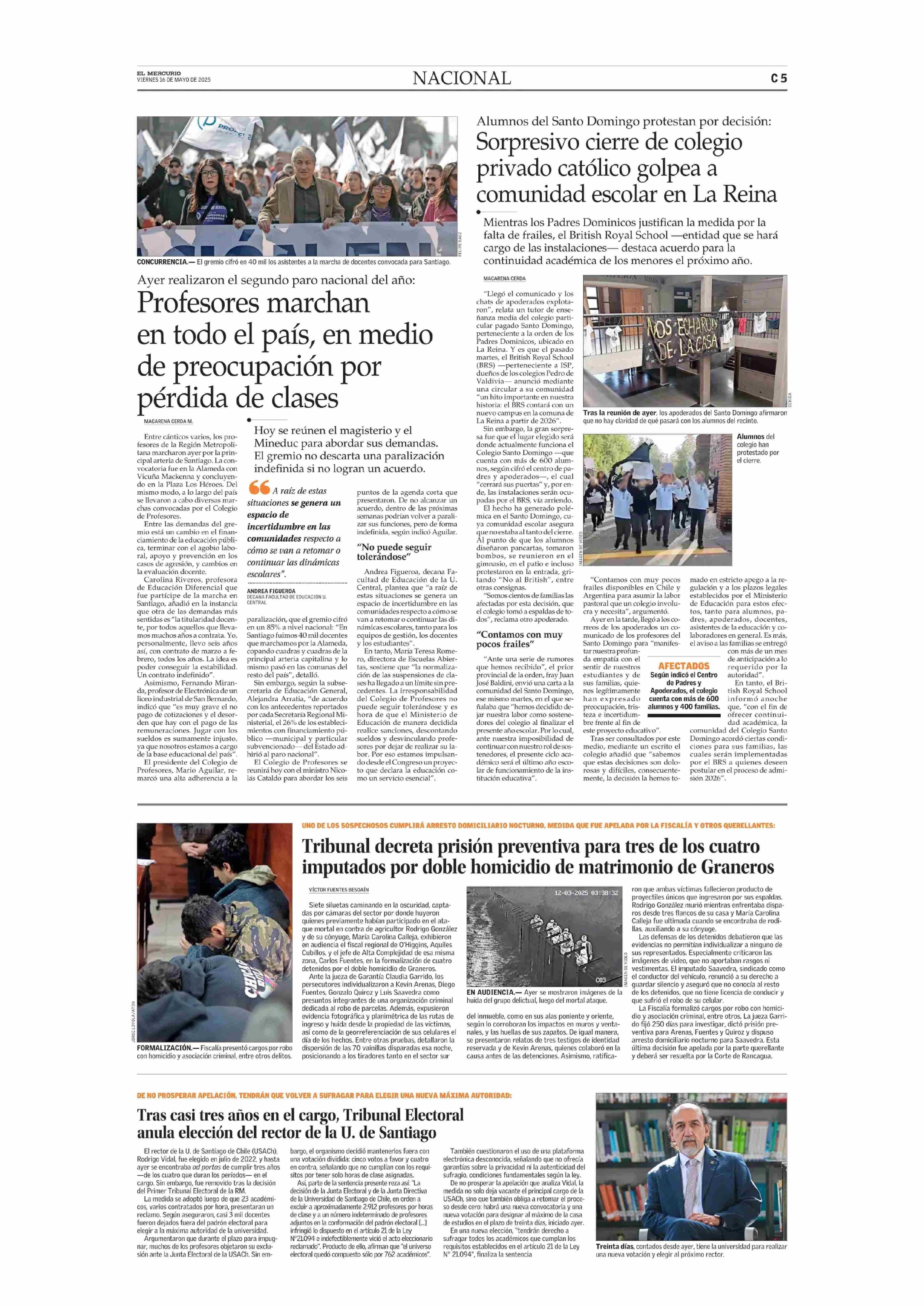 Sorpresivo cierre de colegio privado católico golpea a comunidad escolar en La Reina 16-05-2025 El Mercurio |